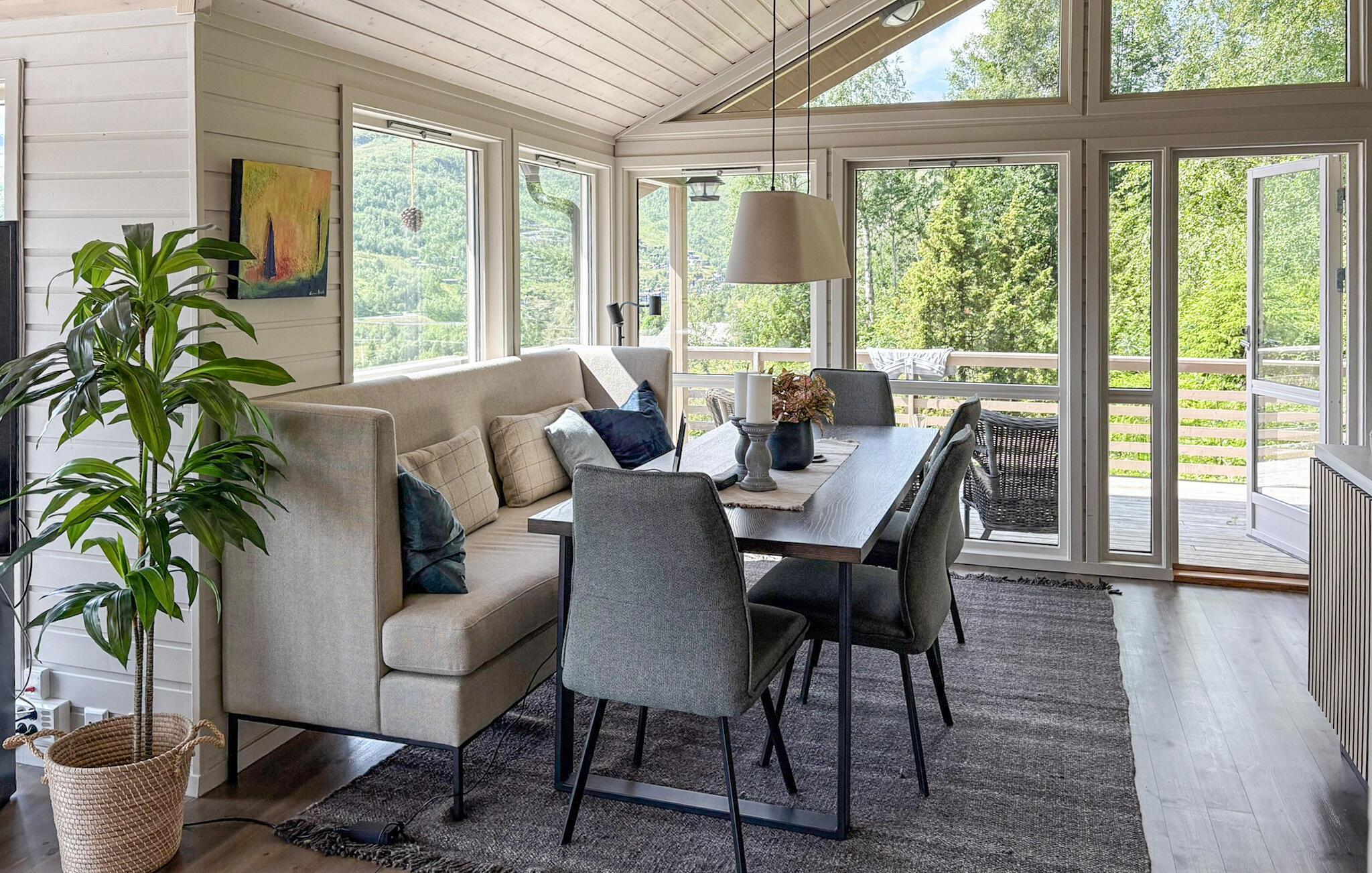 Gut ausgestattetes und delikat eingerichtetes Ferienhaus bei Strandafjellet. Riesenterrasse auf 3 Seiten des Hauses. Das umligende Gebirge der mächtigen und idyllischen Sunnmørsalpen bietet tolles Terrain zum Skifahren winters und Wandern sommers. Die alte Kirche Stordal (25km) demonstriert sehenswüdige Architektur und Dekoration. Nicht weit entfernt liegen der Hornindalsvatnet, der tiefste Binnensee Europas; Ålesund, die Stadt des Jugendstils; sowie der Geirangerfjord (UNESCO) und der Trollstigen. Besuchen Sie auch Valldal, "das Tal der Erdbeeren", das für seine süßschmeckenden Erdbeeren und leckeren Erdbeerkuchen bekannt ist. Tagestouren zur Vogelinsel Runde und zur Festivalstadt Molde. Nachbar: 30 m.