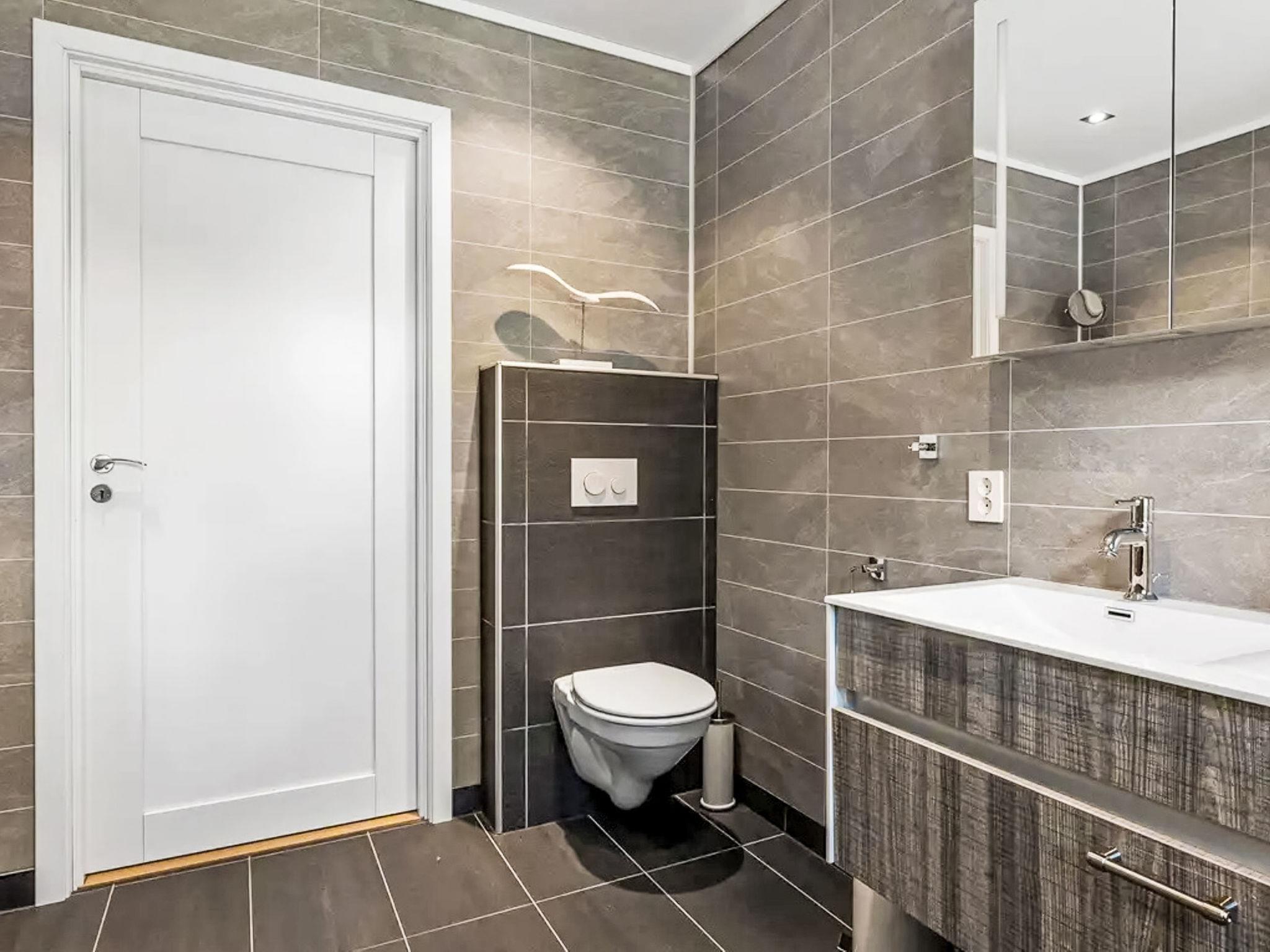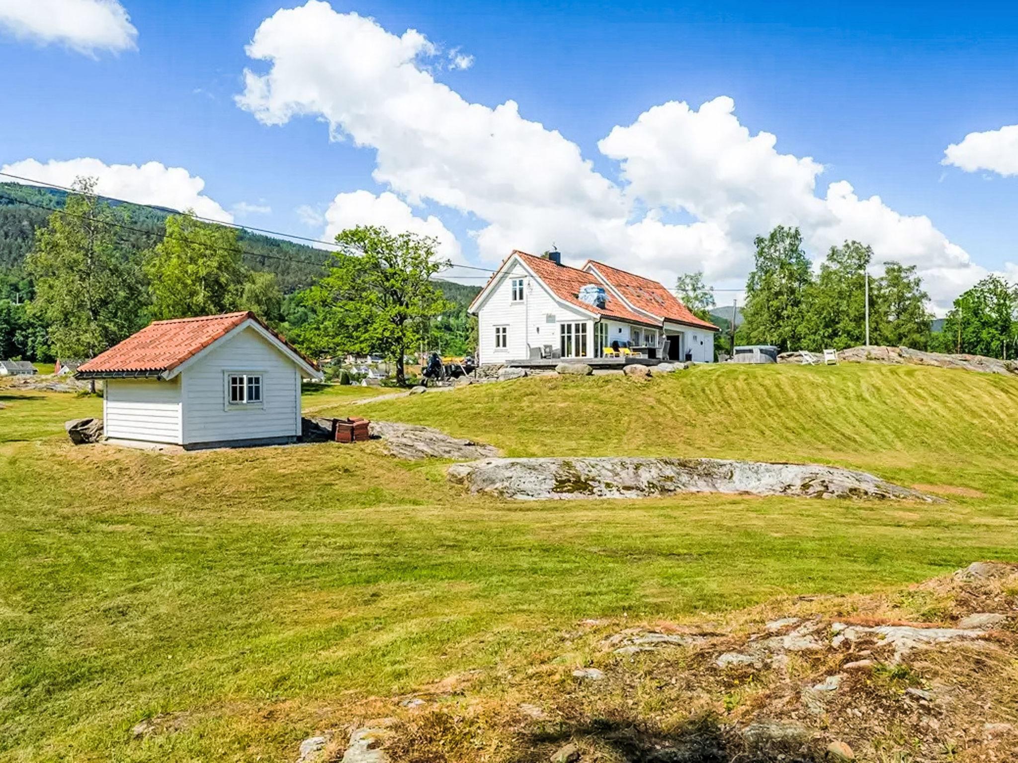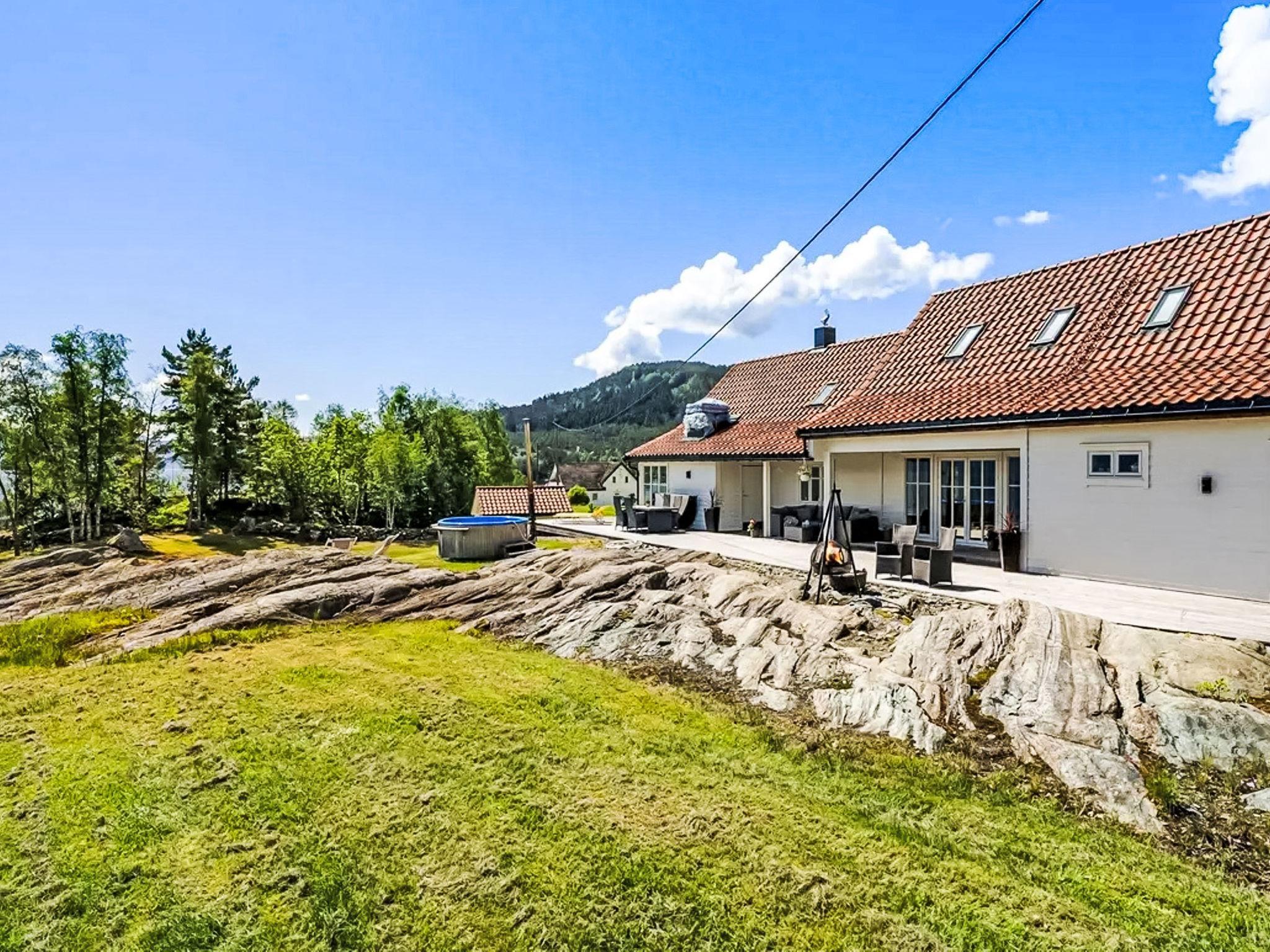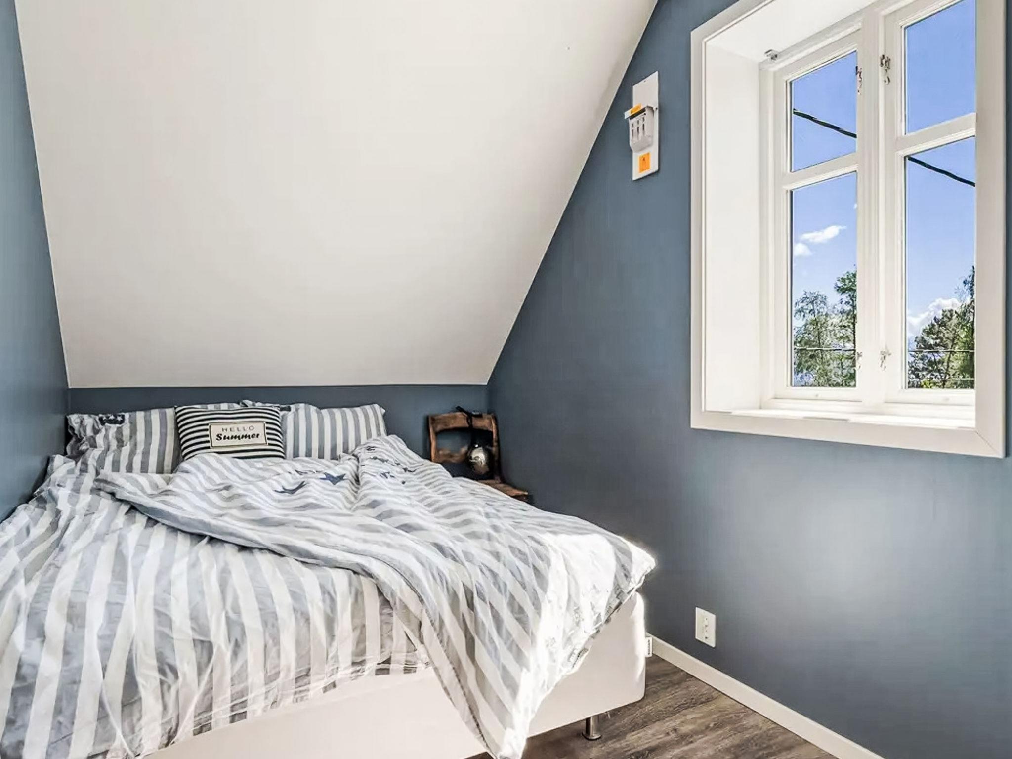 "Holmen", 7-room house 176 m2 on 2 levels. Beautiful and modern furnishings: large living/dining room with panoramic window with dining table, TV connection and digital TV. Exit to the garden, to the terrace. Large kitchen (oven, dishwasher, 4 ceramic glass hob hotplates, microwave, freezer, electric coffee machine). Shower/WC, sep. WC. Electric heating, floor heating. Upper floor: 4 rooms with sloping ceilings, each room with 1 double bed (150 cm, length 200 cm). 1 room with sloping ceilings with 1 double bed (140 cm, length 200 cm). Open gallery with sloping ceilings. Comfortable furnishings in the country house style. 2 large terraces, large, lawn. Terrace furniture, barbecue (portable), deck chairs, sitting area. Very beautiful panoramic view of the sea, the mountains, the countryside, the port and fjord. Facilities: washing machine, dryer, children's high chair. Internet (WiFi, free). Please note: non-smoking house. Smoke alarm, fire extinguisher. Freezer approx. 300 l.