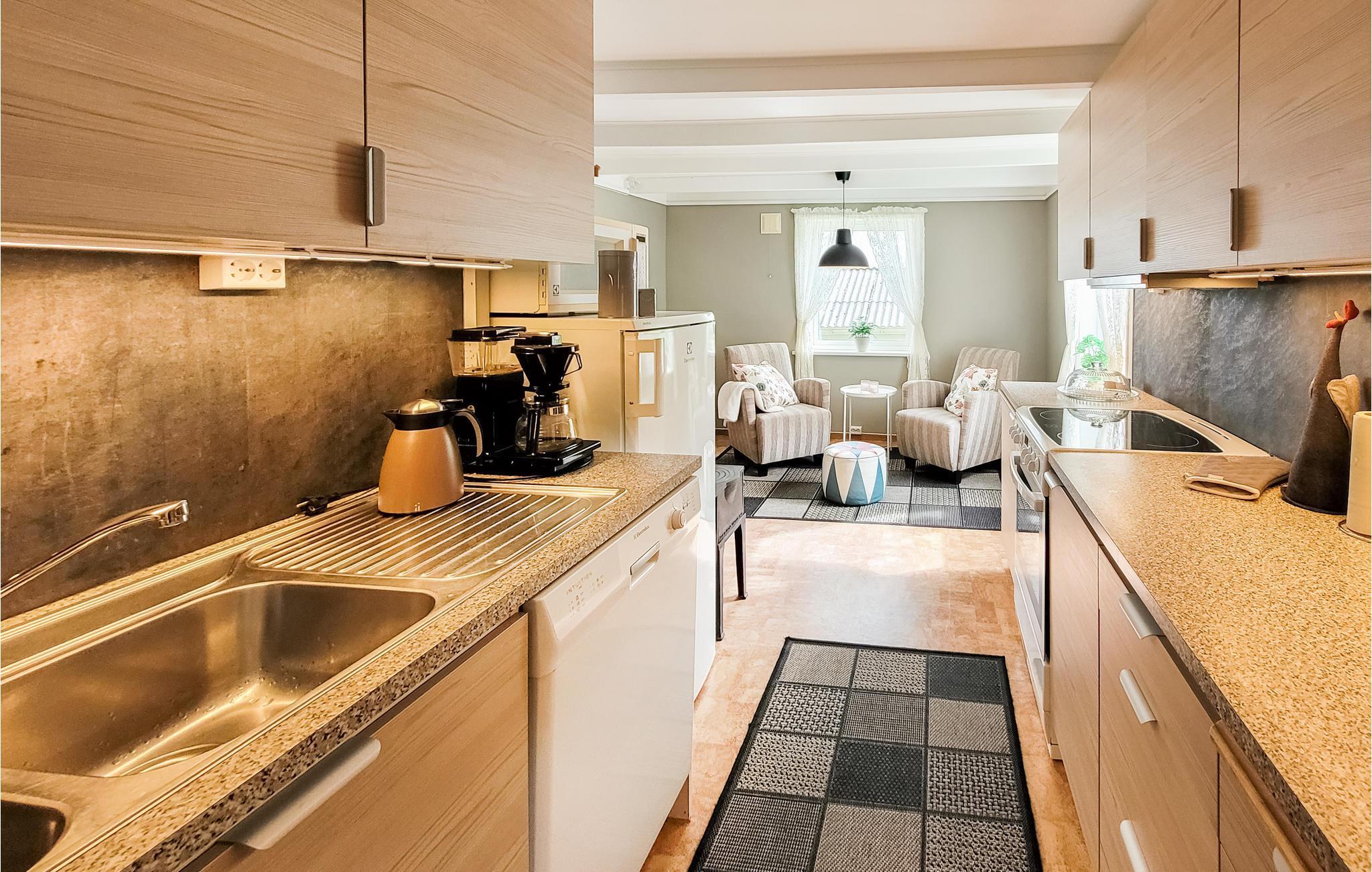 Im westlichen Teil der Halbinsel Sveio wartet dieses Ferienhaus auf Ihren Besuch. Machen Sie es sich gemeinsam mit Ihren Liebsten bequem und freuen Sie sich auf gemütliche Abende. Wenn Sie am Tisch essen, können Sie Ihren Blick über den Fjord schweifen lassen. Gehen Sie morgens auf Ihre Terrasse und atmen Sie die frische Morgenluft ein. Hier können Sie Ihre Mahlzeiten einnehmen und die Sonne ausgiebig genießen. Machen Sie den kurzen Spaziergang hinunter zum Fjord mit guten Bade- und Angelmöglichkeiten oder erkunden Sie die Umgebung zu Fuß.