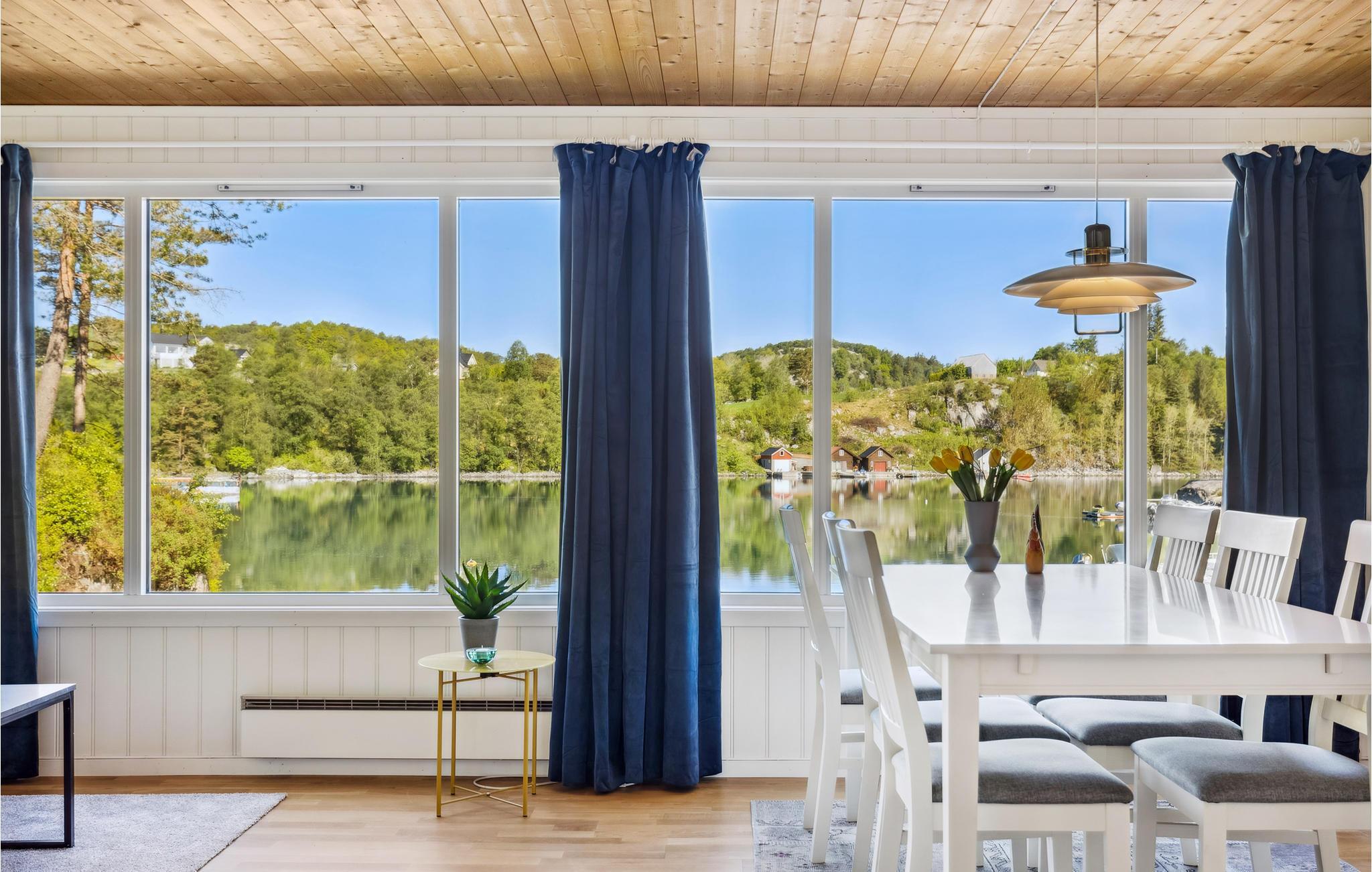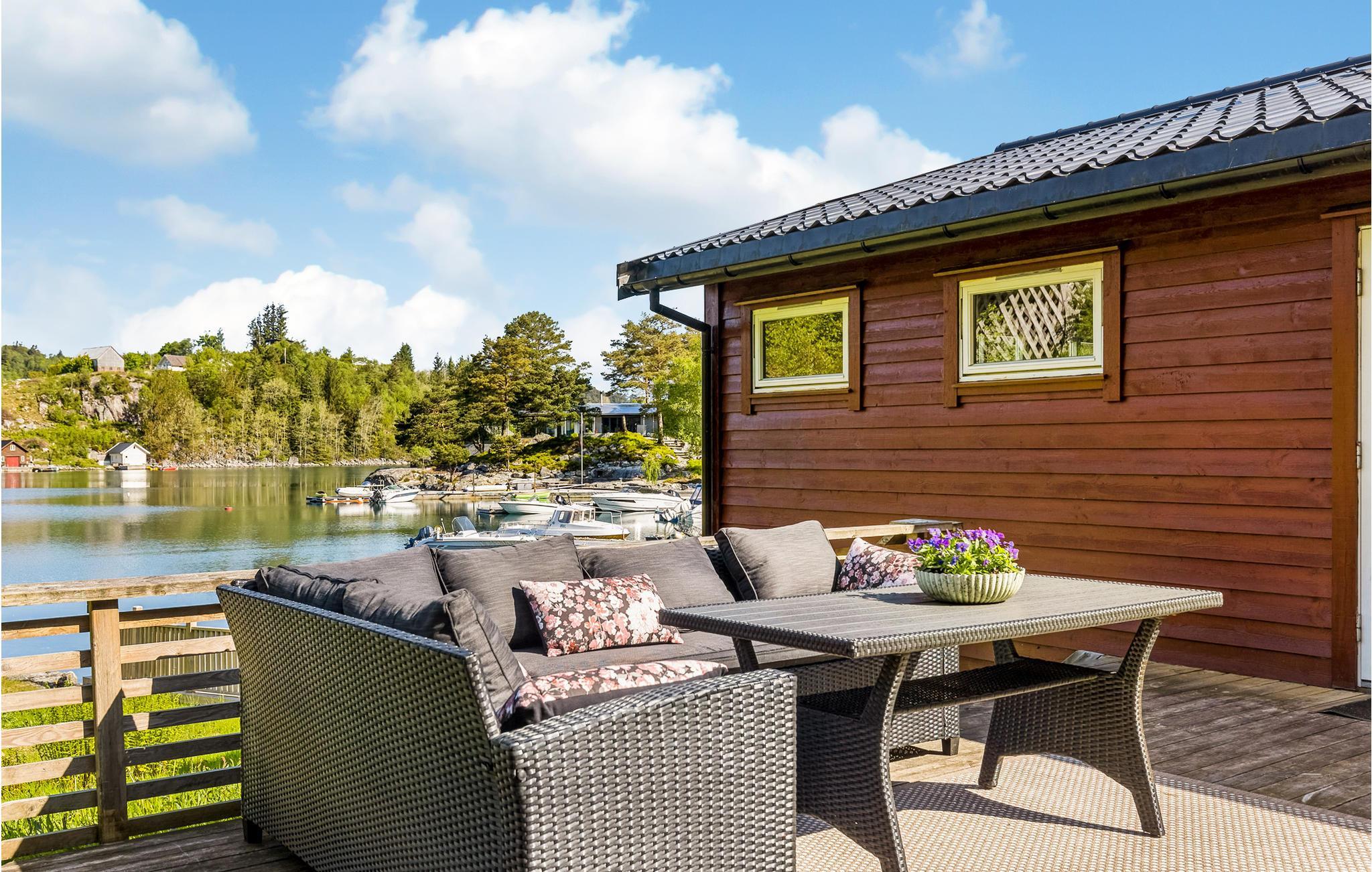 Im Innenraum dieses bescheidenen Hauses finden Sie ein authentisches Hüttendesign, mit herzlichen Details und heller Atmosphäre, die dank der großen Fensterfront entsteht. Machen Sie es sich somit auf der Sofagarnitur gemütlichen, lesen ein Buch, spielen Brettspiele oder lassen einfach Ihre Gedanken ins Nichts wandern. Genießen Sie Ihre Zeit im Freien auf der großen Terrasse, wo Sie gemeinsam grillen können, während Sie den blick auf den Fjord bewundern. Der Strand befindet sich direkt vor der Hütte, somit können Sie sich direkt im kalten Gewässer abkühlen oder angeln gehen.