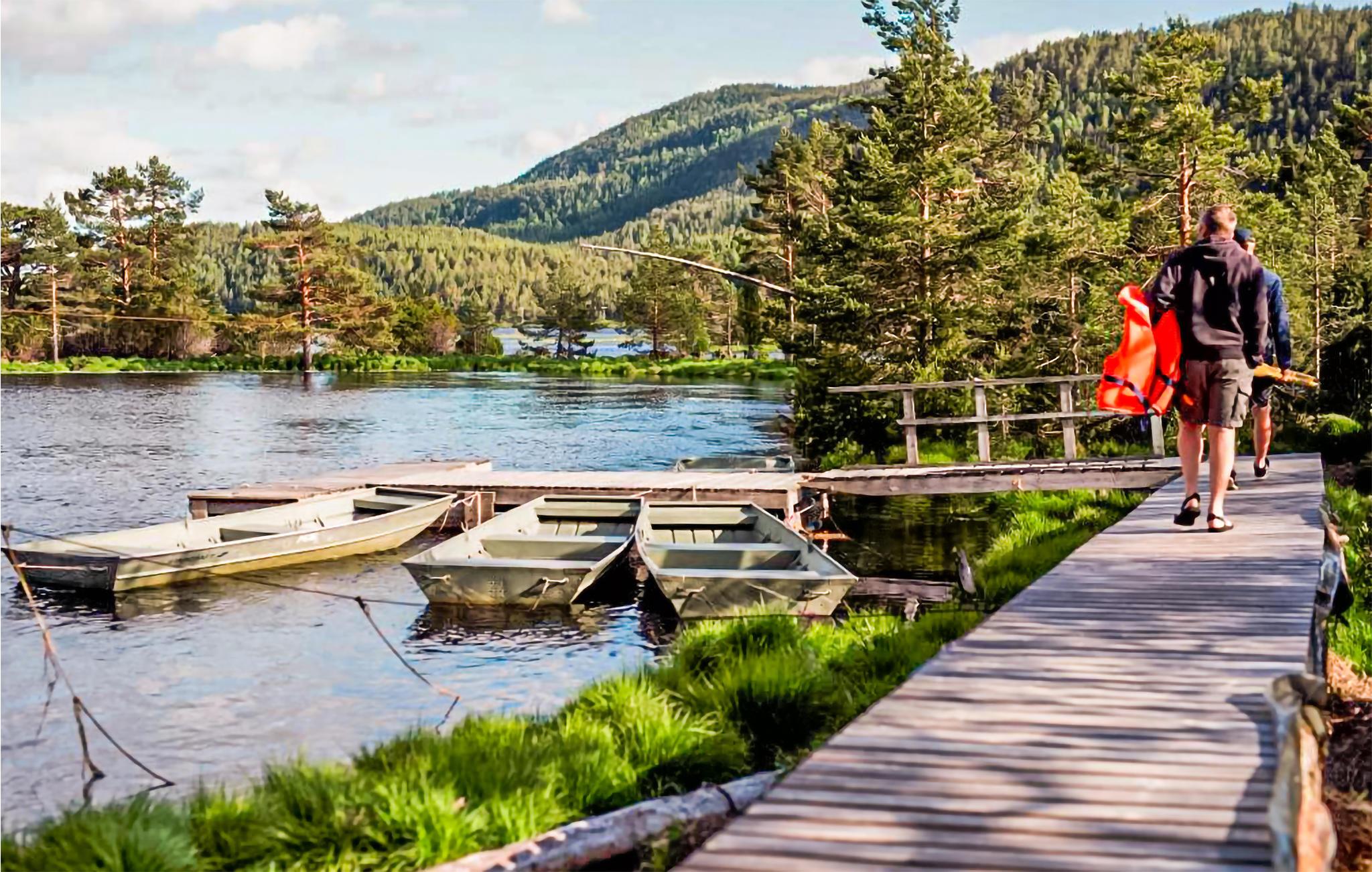 Das Ferienhaus liegt ungestört in einem Waldgebiet, nur 50 m vom Fosslaugfossen und Tveitvatnet entfernt. Hier gibt es gute, kinderfreundliche Bademöglichkeiten an einem kleinen privaten Sandstrand. Dort wartet auch das Boot des Ferienhauses auf Sie, versuchen Sie Ihr Glück beim Angeln vom Boot aus. Ansonsten bietet die Umgebung des Ferienhauses sehr schöne Wandermöglichkeiten in den Wäldern und Bergen. Im Winter können Sie in der Hillestad Gallery Langlaufski mieten.