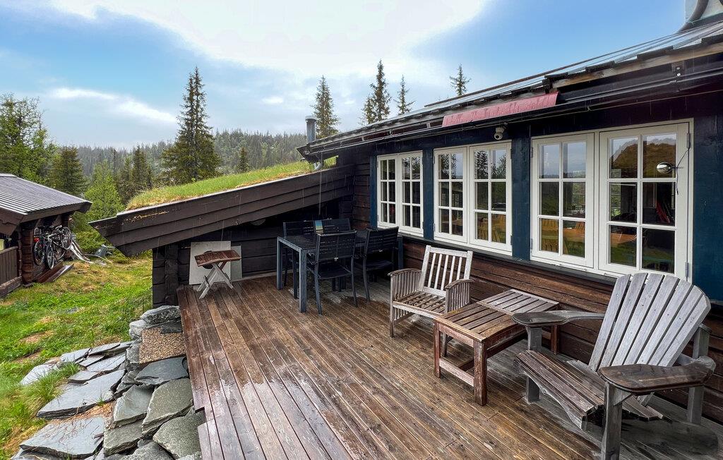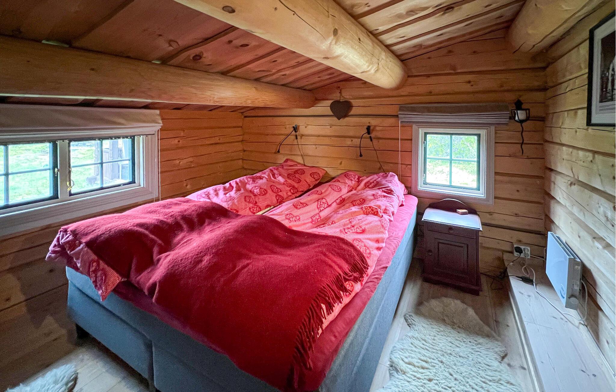 In diesem charmanten Holzhaus in Valdres erleben Sie pure Gemütlichkeit und naturnahes Wohnen. Die liebevoll eingerichteten Innenräume mit rustikalen Holzelementen und einem einladenden Holzofen schaffen für Sie eine warme und entspannte Atmosphäre. Die eigene Sauna ergänzt das Wohlfühlambiente perfekt und lässt Sie Ihre Alltagssorgen vergessen. Genießen Sie Ihre Mahlzeiten am großen Esstisch mit Blick auf die malerische Landschaft. Die sorgfältig ausgewählte Einrichtung und der offene Raum laden dazu ein, sich rundum wohlzufühlen und die Ruhe der Umgebung zu genießen.