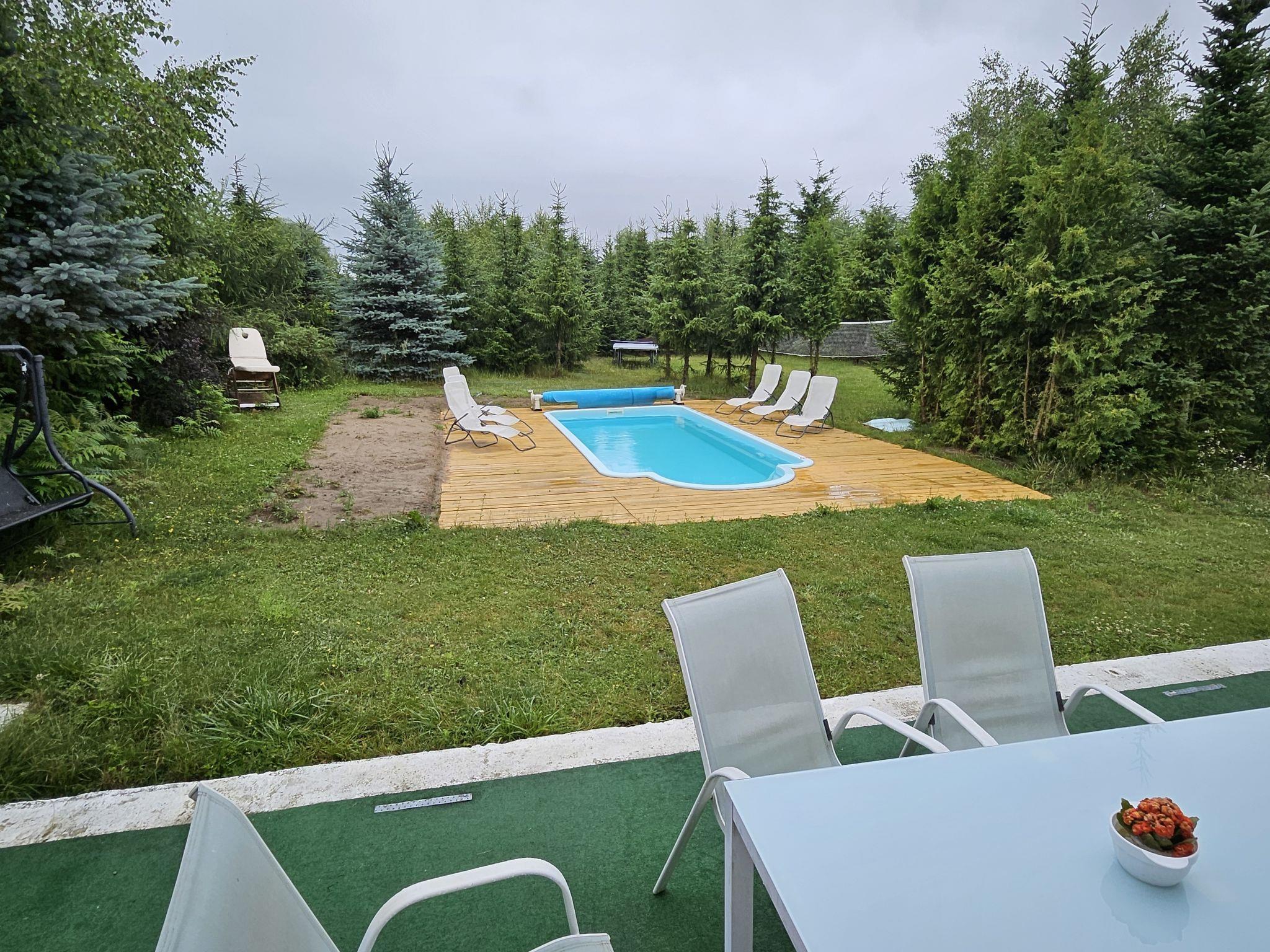 Modern, comfortable single-family house "Butterfly Lux", built in 2019. On the outskirts, in a quiet position, 10 km from the lake, in the countryside. Private: property 6'000 m2 (fenced), swimming pool (25 m2, depth 160 - 160 cm, seasonal availability: 01.May. - 30.Oct.). Table tennis, volleyball, barbecue. In the house: playroom, trampoline, washing machine. Available: bicycles (8). Parking at the house on the premises. E-charging station. Shop 1.5 km, grocery 1.5 km, supermarket 5 km, restaurant 5 km, bus stop 300 m, public bathing area 10 km. Riding stable 5 km, children's playground 200 m. Nearby attractions: Miedzyzdroje 90 km. Please note: The owner does not accept any youth groups. Fishing [permit required]. Local sale of farm products. Exclusive private forest. NOTE: Water from a deep well with a specific smell. A fishing permit can be purchased on site in Anielin. There is a children's house in the garden at guests' disposal. Electronic and arcade games room 25 m2 - equipped with ICE HOCKEY, DART, ARCADE KOMP, TABLE FOOTBAL. Our games room is available to our guests.