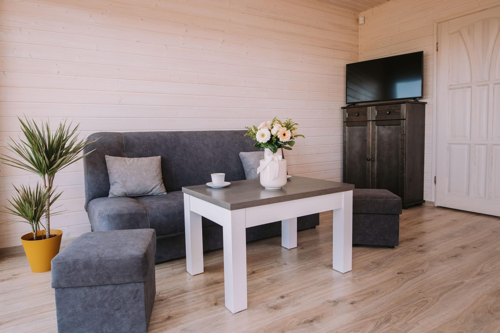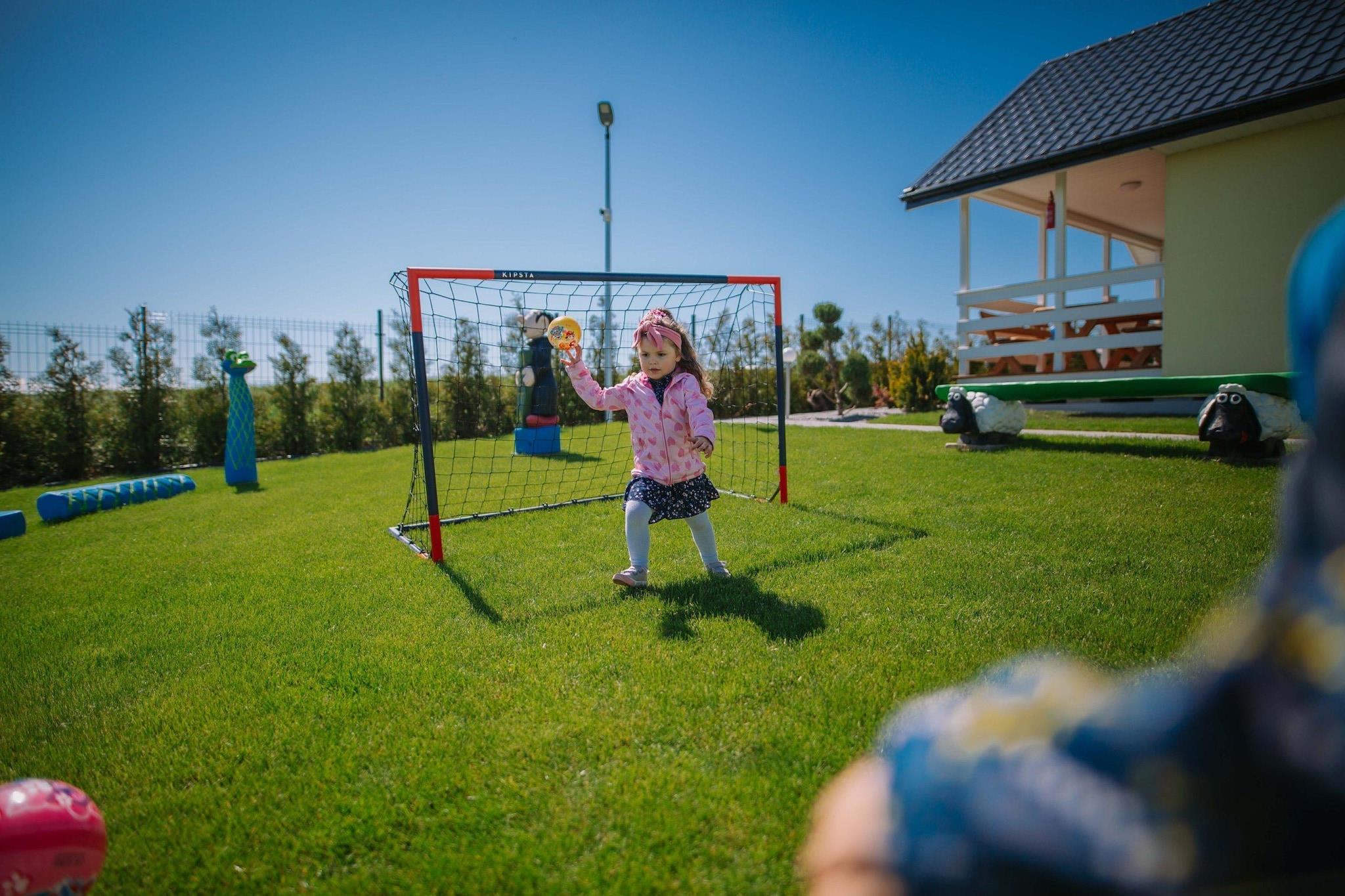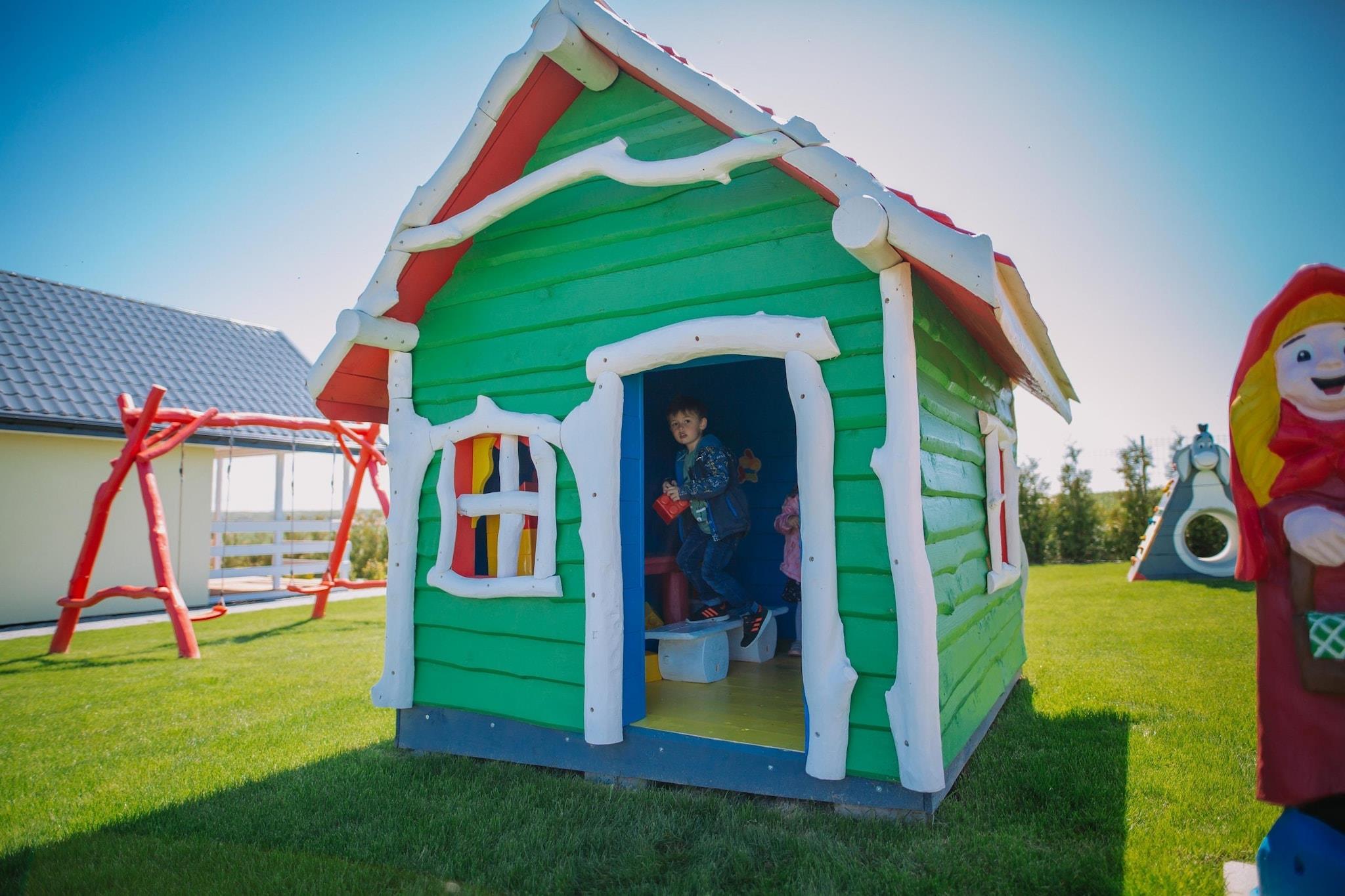 In a quiet area, on the outskirts of the summer village of Bobolin, 1.4 km from a beautiful, sandy beach, there is a family holiday center that offers comfortable accommodation and plenty of space for children's games. There is a row of 8 single-story houses on the fenced property. Each house has a covered terrace with a set of garden furniture and barbecue equipment. The house consists of a living room with a kitchen, a bathroom with a shower and 2 separate bedrooms. The living room has a fold-out 2-seater sofa, a table with chairs and a TV. The cottages can be heated on colder days. Wireless internet is available. In the vast area of the holiday resort, most of the space has been designed with the youngest in mind. There is a very large, attractive playground here. Parking on site (partially covered). There is also a table tennis table and table football. The price of the stay includes: bed linen, towels, electricity and water consumption, internet, parking, final cleaning. A baby cot and a high chair are available upon prior request. Attractions nearby: The biggest attraction of the area are the clean, wide and unpopulated beaches stretching from Dabkowice in the west, through the health resort of Dabki, Bobolin, Darlówko, to the summer village of Wicie in the east. They encourage healthy walks and carefree sunbathing. A bicycle path runs along this entire coast, thanks to which you can conveniently commute and visit neighboring seaside towns. There is also Lake Bukowo nearby - a real paradise for sailors and windsurfing enthusiasts. There is a water equipment rental shop and even a small beach by the lake. There is also a stud farm in the vicinity of the center, which invites horse riding enthusiasts for rides in the paddock and off-road riding.