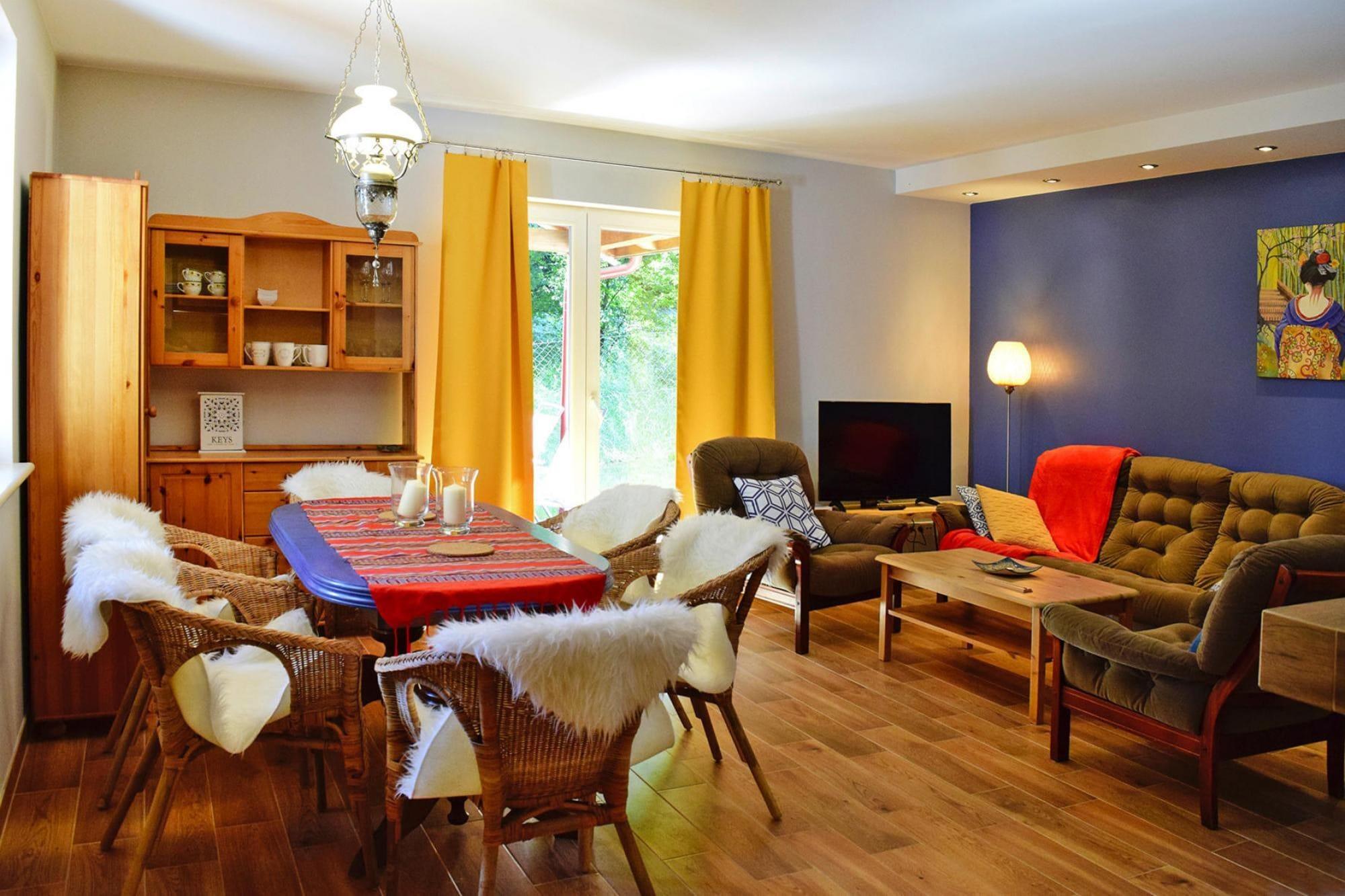 The location is ideal for escaping the everyday hustle and bustle. Choczewo is a small, summer resort town on the Kashubian Coast. The nearest lake is 2 km away and the seaside beach is 10 km away. The holiday home is situated on a private, wooded property, offering guests peace, quiet, and a connection with nature. This comfortable, two-story holiday home features a covered terrace with garden furniture, loungers, and barbecue facilities. On the ground floor, there's a spacious living room (satellite TV, fireplace, large table), a well-equipped kitchen (including an oven, dishwasher, coffee maker, and washing machine), and a bathroom with a shower. Upstairs, there are three separate bedrooms. Fireplace heating is provided. Wireless internet is available. The fenced, private property offers plenty of space for carefree, blissful relaxation and a variety of family games and activities. Secure parking is available, and for the little ones, there's a wooden playhouse and swings. The owner has her own house on the other side of the property, offering assistance and tourist information, but guests are assured of a comfortable level of privacy. The price includes bed linen, towels, water, internet, and parking. The immediate surroundings offer undisturbed relaxation in contact with nature. Nearby Lake Choczewskie is worth cycling (or even walking), visiting several charming, sandy beaches. The lake is very clean, inviting for swimming and fishing (pike, eel, and tench). Another option is Lake Zarnowieckie, a larger body of water, where water sports equipment can be rented. The seaside beach is 10 km away. Blissful relaxation is guaranteed, as even in peak season, it's not crowded. And the views are extraordinary, especially in the area of ??the Lubiatowskie Dunes.