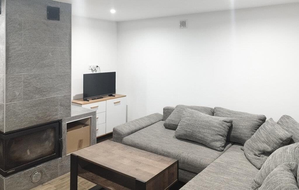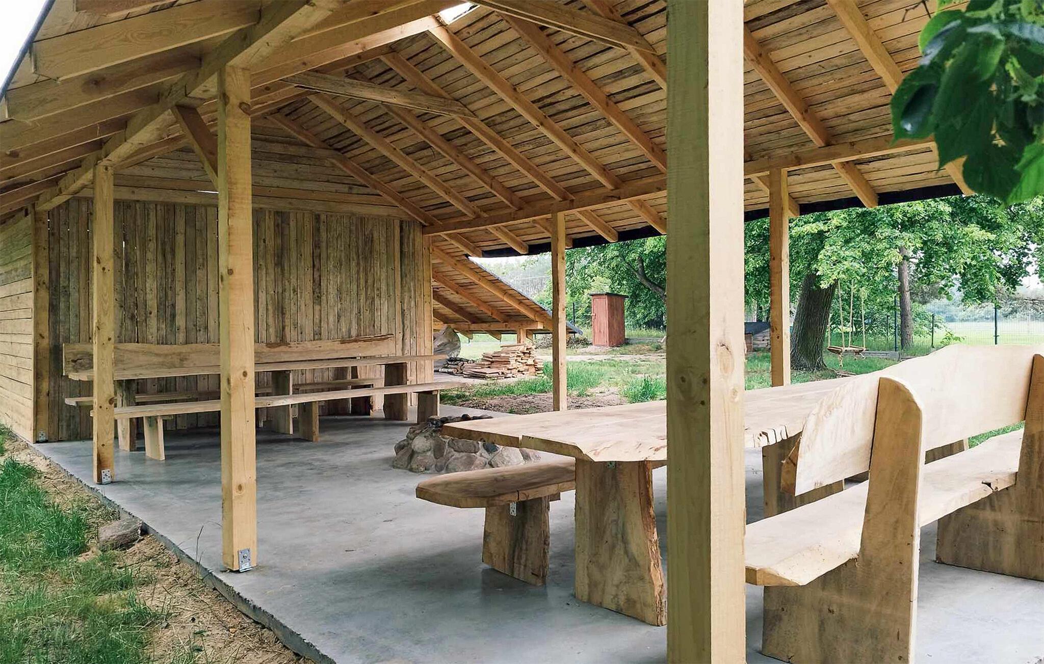 Freuen Sie sich auf Ihren Urlaub in diesem charmanten Ferienhaus, das Sie mit seiner rustikalen Gemütlichkeit empfängt. Beginnen Sie den Tag mit einem entspannten Frühstück auf der überdachten Terrasse und genießen Sie dabei die ruhige ländliche Umgebung. Die weiten Felder ringsum bieten eine idyllische Kulisse für Spaziergänge oder Radtouren in der Natur. Das Ferienhaus verfügt über ein gemütliches Wohnzimmer mit einer bequemen Couch und einem Kamin, der für gemütliche Abende sorgt.