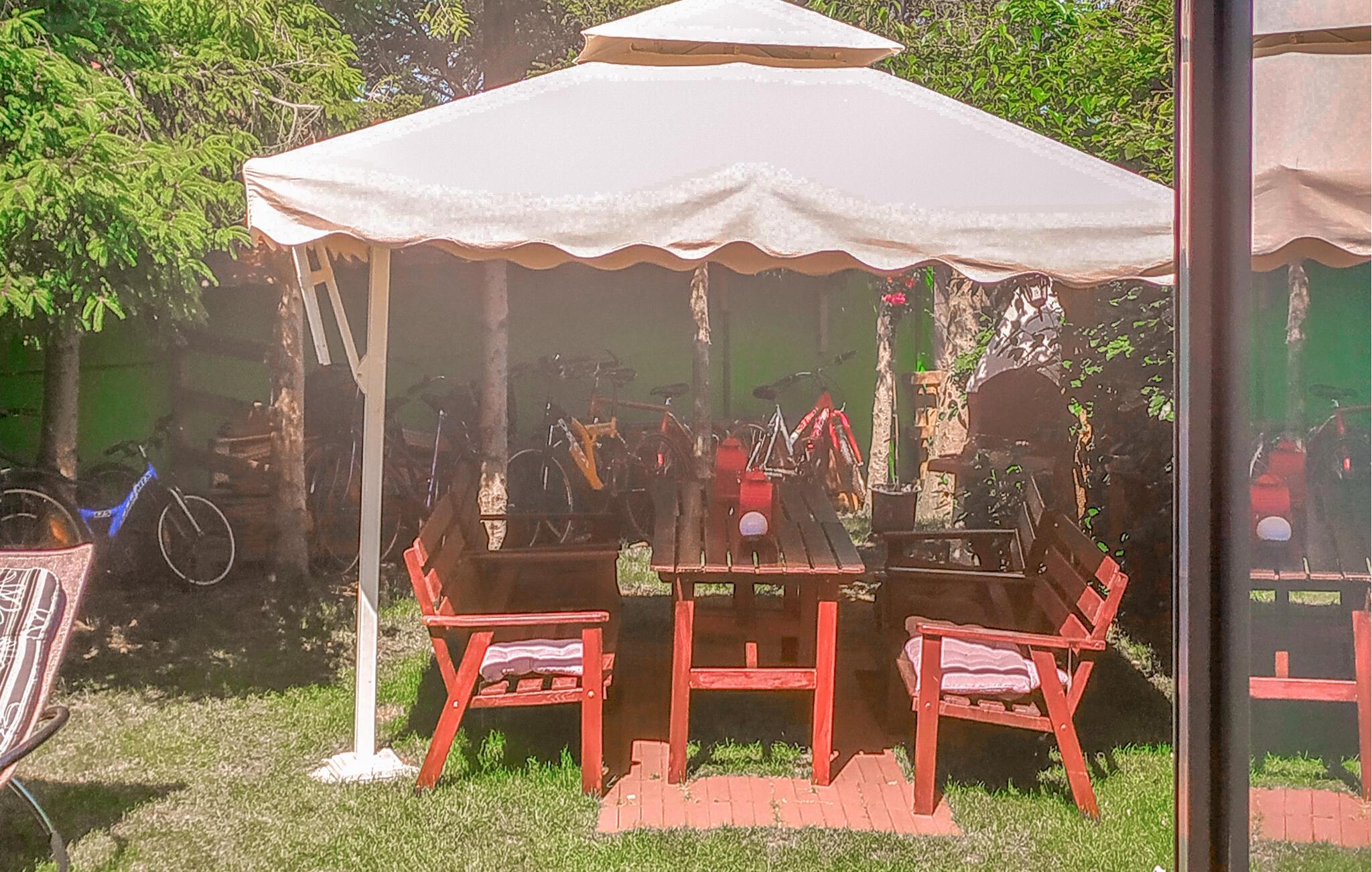 Der Garten ist ein echtes Highlight. Machen Sie es sich auf der überdachten Hollywoodschaukel bequem oder genießen Sie die Sonne auf den bereitgestellten Liegen. Nehmen Sie Platz unter dem Sonnenschirm am Gartentisch und lassen Sie sich Ihr Frühstück oder Abendessen schmecken. Der gepflegte Außenbereich bietet Ruhe und Rückzug, umgeben von viel Grün und liebevoller Bepflanzung.