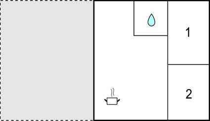 Badezimmer 3m2 (nr. 1) - WC. Warmes und kaltes Wasser. Dusche