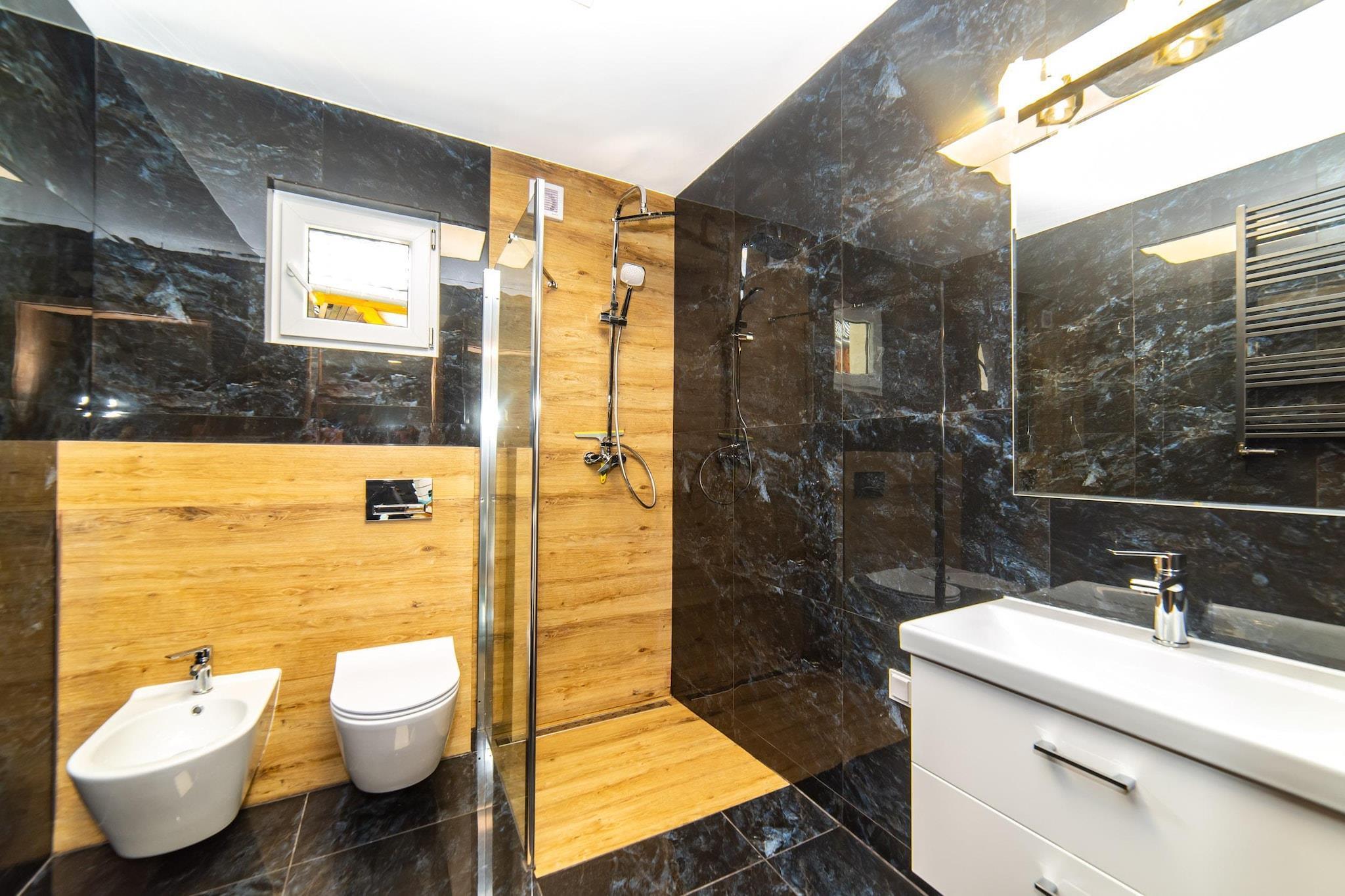 Family holiday resort with a swimming pool, in a quiet area, next to a large water park. 10 minutes walk to the seaside beach. A comfortable, two-story holiday home is suitable for comfortable relaxation for 7 people. On the ground floor there is a spacious living room with a double sofa bed, a table with chairs and a TV. The living room is connected to a well-equipped kitchen (including an oven, dishwasher, microwave). On the ground floor there is also a bathroom with a shower. On the first floor there are 2 separate bedrooms and a second bathroom (with a bathtub). The cottage has a covered terrace, where a set of garden furniture and a grill await. Guests have access to wireless internet. The biggest attraction of the resort is the new swimming pool with heated water (open from May to September). The pool has a roof. On the fenced area of ??the holiday complex there is a parking lot (1 space/cottage), a volleyball court, a playground and a bike rental. The price of your stay includes: bed linen, towels, water consumption, electricity consumption, heating, swimming pool, internet, final cleaning, parking (1 place/cottage), cot and high chair (reservation required). Jaroslawiec is a quiet summer resort located on the central coast, close to Darlowo and Ustka. Wonderful climate and landscapes, pine forests, clean water in the sea, seaside cliff - these are the advantages of Jaroslawiec, which make this town attract crowds of tourists every year. Many interesting attractions await holidaymakers who spend their holidays here, which will diversify their seaside vacation. Jaroslawiec also offers a rich gastronomic base. The beach in Jaroslawiec is ideal for tourists who like to sunbathe in uncrowded places. On the beach you can meet colorful fishing boats and find golden amber. After the last renovation, the beach is very wide and beautiful.