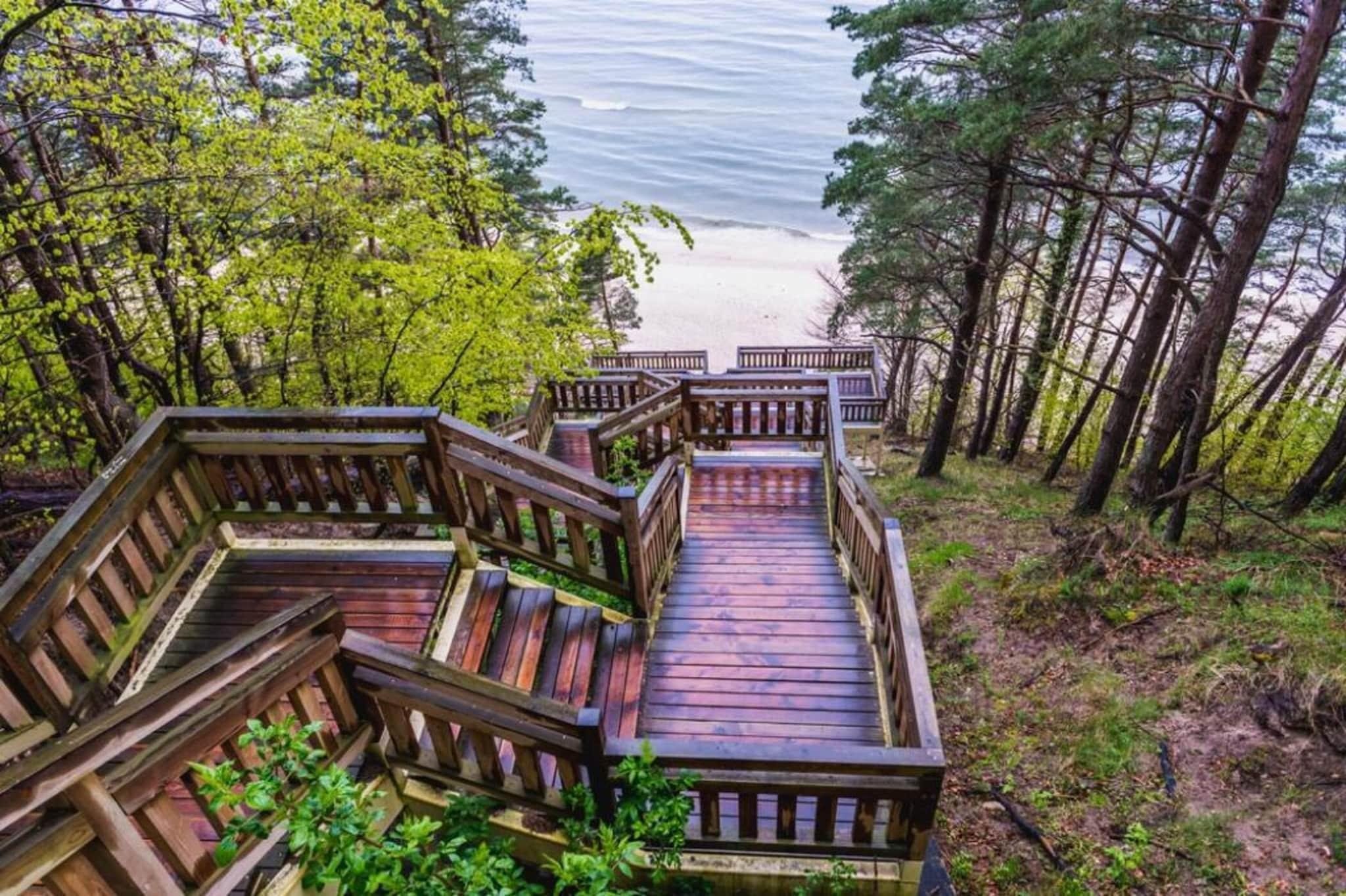 Large, comfortable, fully equipped holiday home in the popular holiday resort of Misdroy, in a quiet location right next to the forest of the Wolin National Park. 200 square meters of the 600 square meter property are available for your exclusive use. Enjoy the view from your balcony on sunny days and watch the hustle and bustle of the city! In just a few minutes you can reach the numerous shops, cafés and restaurants in the city from your accommodation. The popular seaside resort of Miedzyzdroje (Misdroy) on the island of Wolin is surrounded by green forests, near the picturesque cliff shore on the Baltic Sea and not far across the German-Polish border. The lively health resort has a long tradition - you will encounter a health-promoting microclimate, clean waters of the Pomeranian Bay and a well-developed tourist infrastructure. The highlights are definitely the beautiful beach and the Wolin National Park. There are many cafés and restaurants along the promenade where you can linger and let yourself be spoiled with culinary delights. In the center of town you will find a large shopping arcade with small shops and supermarkets or discounters are available. Activities nearby: In Mi?dzyzdroje there is a wide range of leisure activities - the coast is largely unspoiled, in the beautiful hinterland you can do as you please be active, with many cycling and hiking trails a dream for nature lovers. In summer, spa concerts and several music festivals take place regularly on the open-air stage in the spa gardens. From the pier there is a lively excursion traffic to the neighboring island of Usedom. The island in the west of the country offers scenic highlights as far as the eye can see: unspoilt nature, deep blue lakes and wide white beaches will inspire you. With a bit of luck you can see eagles, red deer and wild boar in the national park. How about a city tour as well