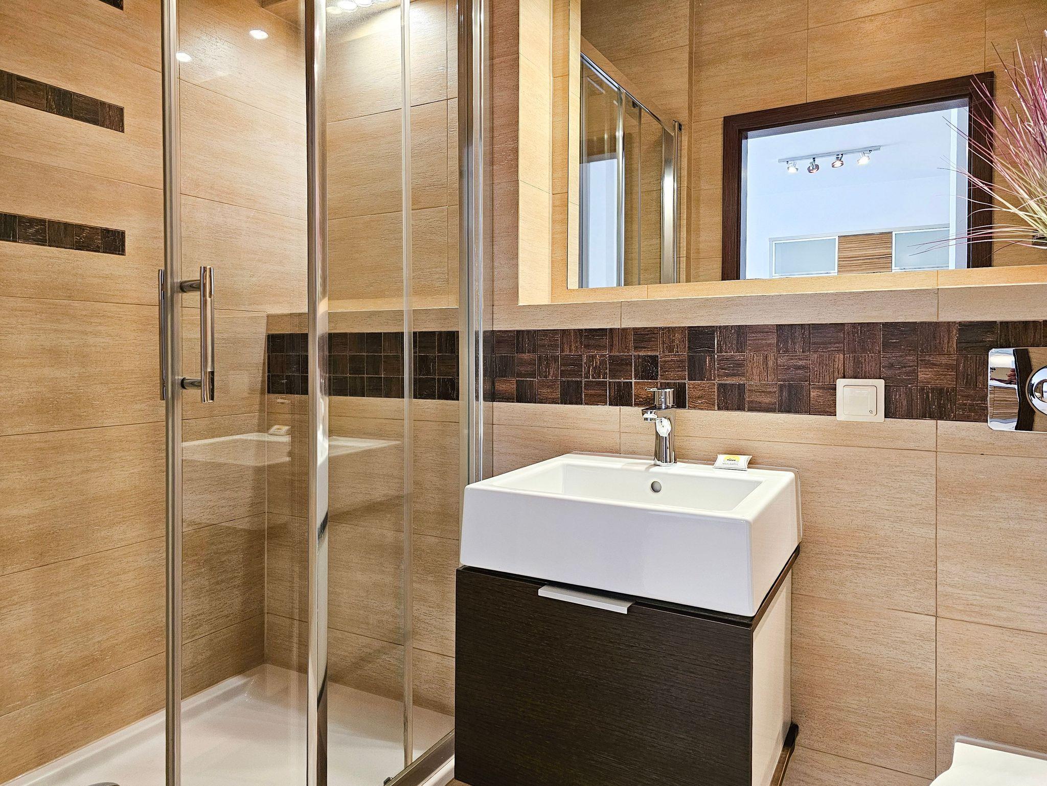 Es besteht aus einem Wohnzimmer mit Küchenzeile, Schlafzimmer, Balkon und Bad mit Dusche.