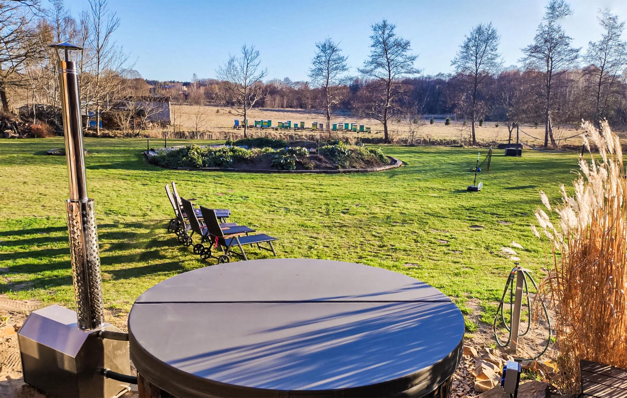 Der wunderschöne Garten lädt zum Barfußlaufen ein und ist gespickt mit Spielmöglichkeiten für junge Gäste. Gönnen Sie sich wohltuende Momente im Whirlpool, spielen Sie Badminton oder Volleyball und versammeln Sie sich an lauen Sommerabenden an der Feuerstelle oder am Grill.