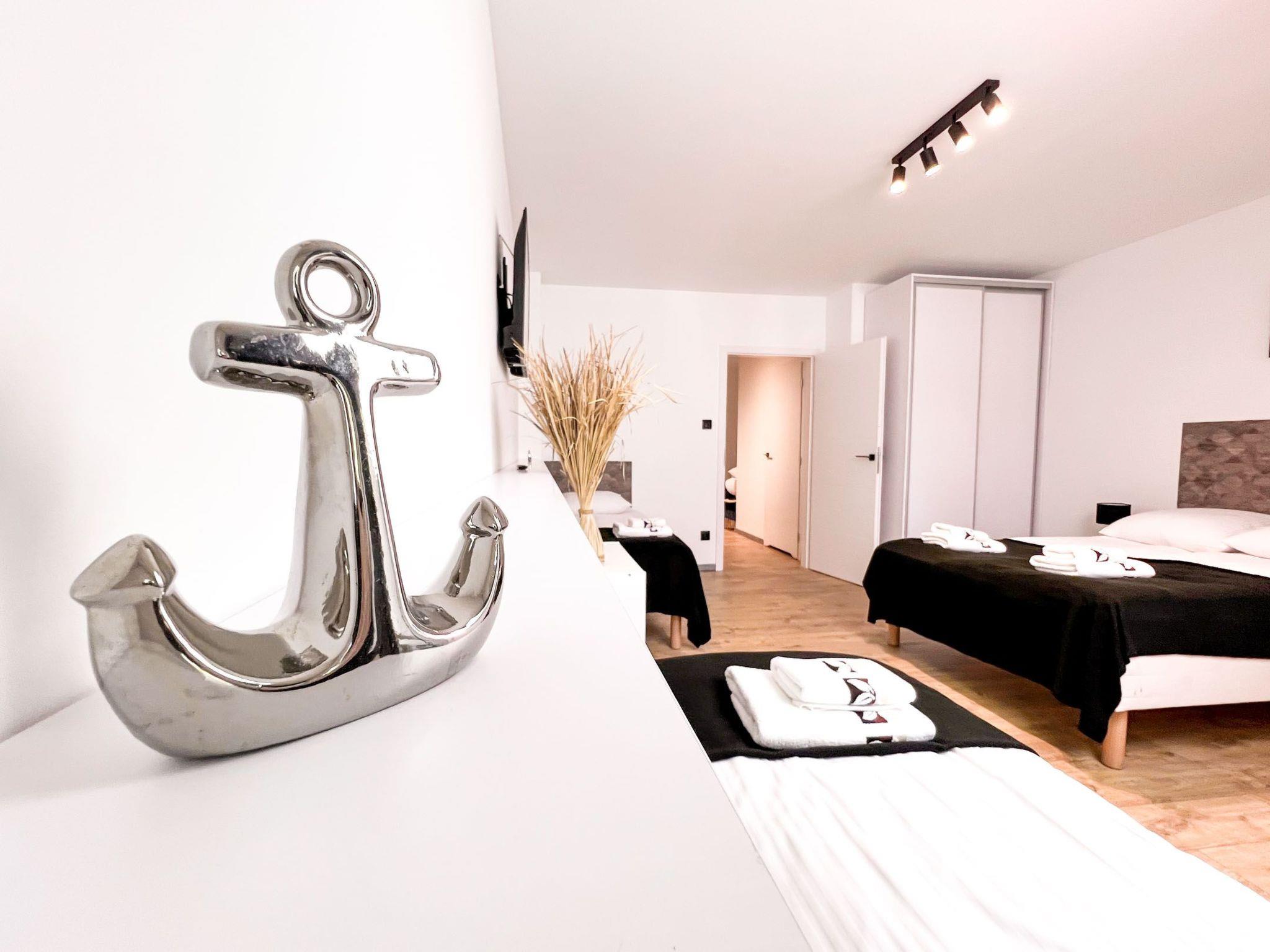 Flats Modern family flats. All flats have a balcony. The flats are equipped with a bathroom (shower) and a kitchenette (microwave,fridge, cooker and kettle). Wi-Fi is available in the complex. More flats The holiday flat consists of a living room with a dining area and a sofa bed. The bedroom has a double bed and two single beds. There are a total of 6 beds. Each flat is equipped with a TV. A high chair and a travel cot will also be available. The flat has a hairdryer , hoover, beach equipment, bed linen, towels (we do not offer beach towels) and cleaning products. (We also offer external encryption devices). Poddabek Complex offering flats is located in the centre of a picturesque village, just 300 m from the sea. Surrounded by beech forests. The flat is located near the Slovinski Natural Park. There is a public bicycle station with a fireplace, as well as a public playground and a gym. The quiet and peaceful surroundings guarantee relaxation. Poddabek is a modern complex consisting of three buildings housing more than 100 flats. There is free public parking on site. Free internet is available on the premises. There are also swimming pools within the complex. There is an outdoor swimming pool on the roof of the building and two paddling pools for children. There is an indoor swimming pool with an open terrace. Entertainment and health. A common room for children and adults, a playground, a fire pit, a volleyball and badminton court. Rehabilitation and health treatments can also be purchased at the facility. . Poddabie - A very pretty place. Poddabie is a small village. It straddles a picturesque stretch of coastline between Ustka and Rowy in the Slupsk district. The place is very attractive for those wishing to spend a peaceful holiday in the midst of nature, doing hiking and cycling. The place is located on the edge of the Slowinski Natural Park and offers something you will not experience in typical seaside resorts. The Poddabie beach is located under a cliff and is 100 metres long in summer. - Holiday flats Unique location in the protected landscape area "Pas Nadmorski na Wschód od Ustki" within the coastal protected area and surrounded by beech forests on the cliffs. Away from the hustle and bustle. The seaside resort is a guarantee of a successful holiday. A wide, sandy beach stretches along the entire coastline at the foot of the cliffs. The village area, whose buildings are located in the surrounding forest, is an attractive area for hiking and relaxation. There are numerous restaurants and shops in the village.