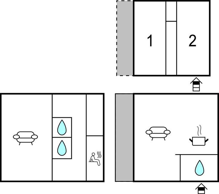 Schlafzimmer (nr. 1) - 1 Schlafmöglichkeit. (Einzelbett(en)). 2 Schlafmöglichkeiten. (Doppelbett(en)).