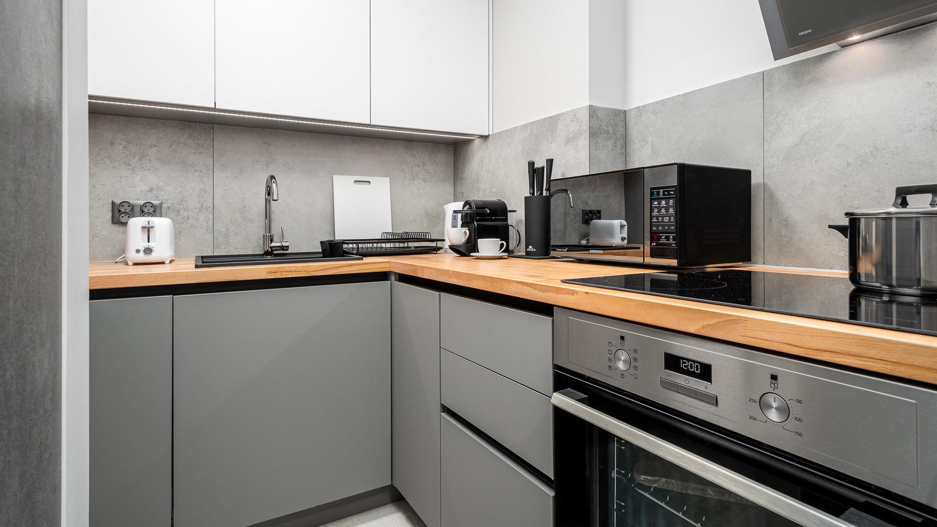 Die gut ausgestattete Küche lässt keine Wünsche offen: Neben einem Kühlschrank und einem Herd zum Kochen finden Sie hier auch eine Spülmaschine, die Ihnen den Abwasch abnimmt. Ein weiteres Highlight: Eine Waschmaschine steht ebenfalls zur Verfügung, sodass Sie sich um Ihre Wäsche keine Sorgen machen müssen.