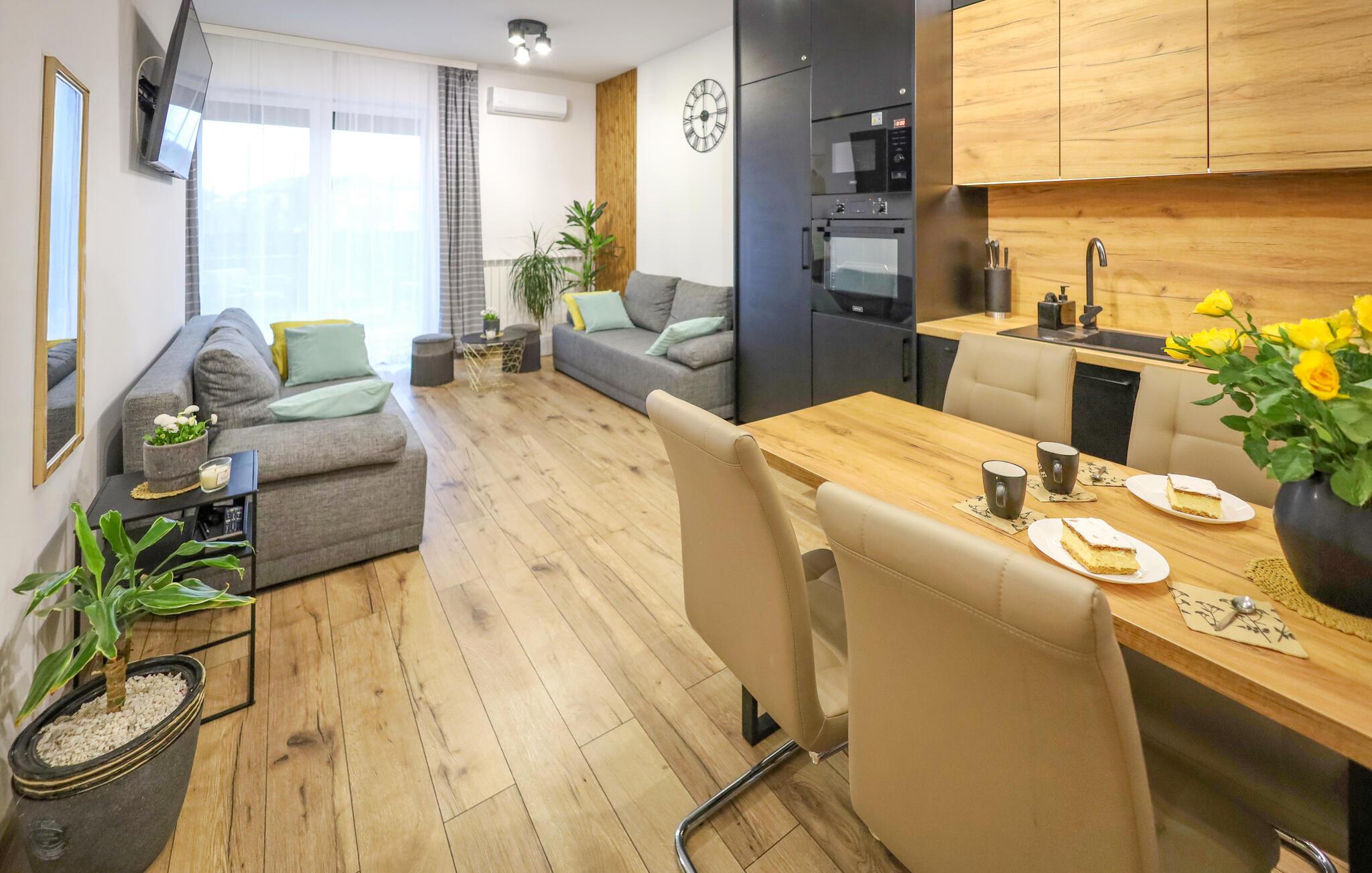 In hervorragender Lage um von hier aus Zator und Umgebung zu erkunden, empfängt Sie diese kleine Wohnung. Es verfügt über eine Terrasse mit Lounge-Möbeln und liegt nur wenige Minuten von Energylandia entfernt, dem größten Vergnügungs- und Dinosaurierpark in Zator. Die wohnliche Einrichtung schafft eine angenehme Atmosphäre, die es Ihnen leicht macht, sich hier vom ersten Tag an wohlzufühlen. Genießen Sie eine wohltuende Auszeit mit spannenden Ausflügen, gemeinsamen Mahlzeiten und gemütlichen Abenden auf dem Sofa, wenn Sie von Ihren Unternehmungen zurückkehren.
