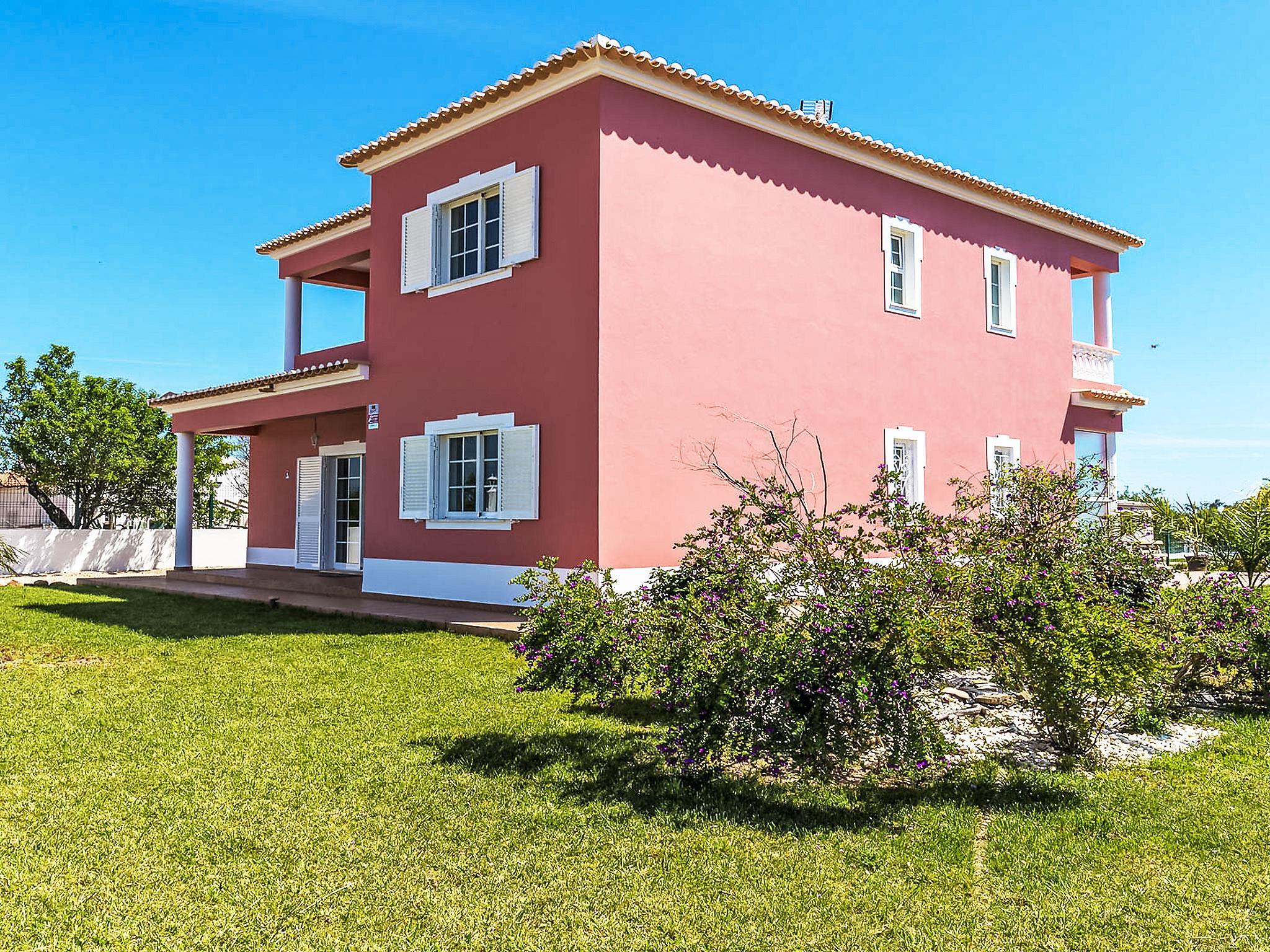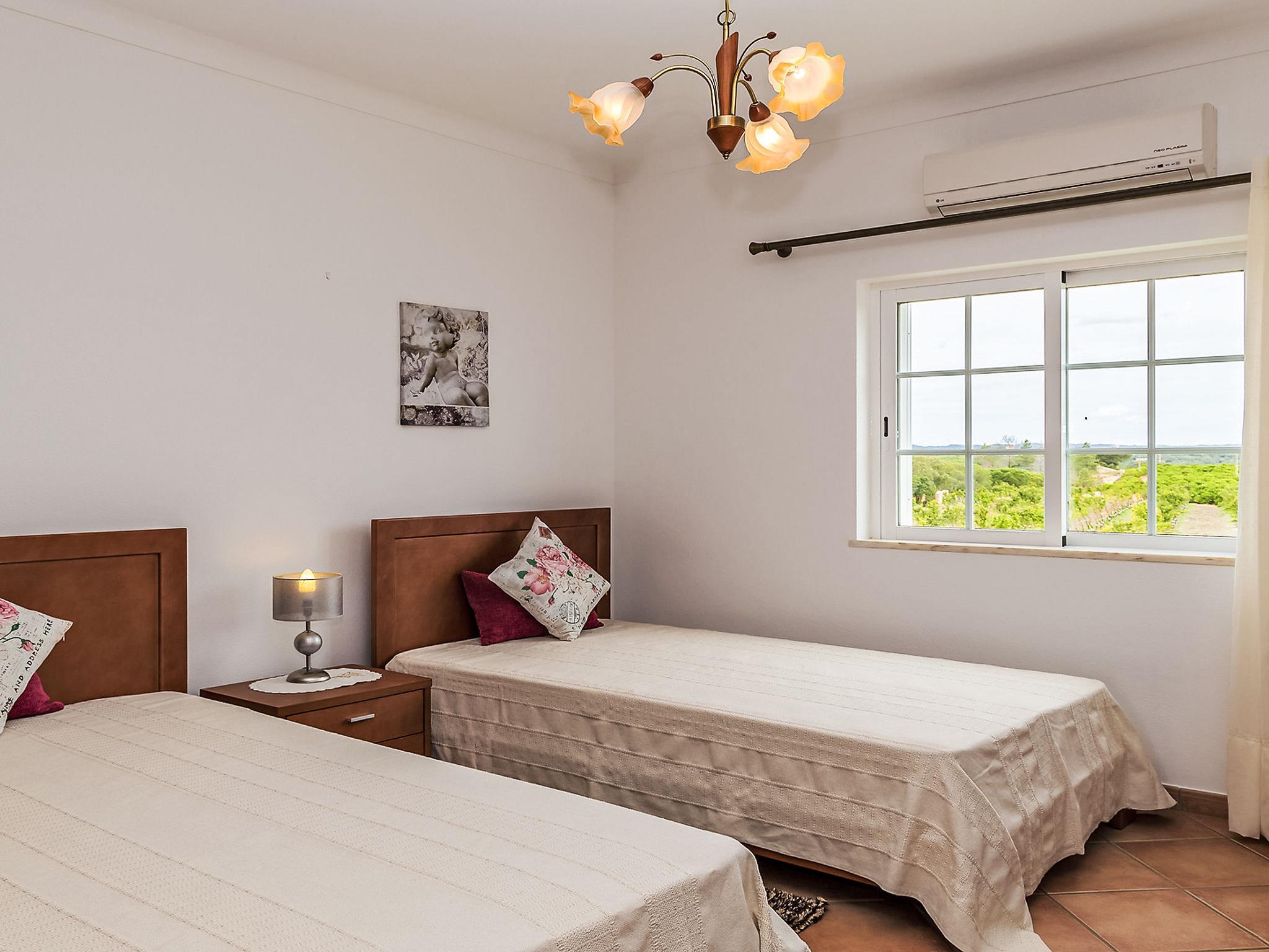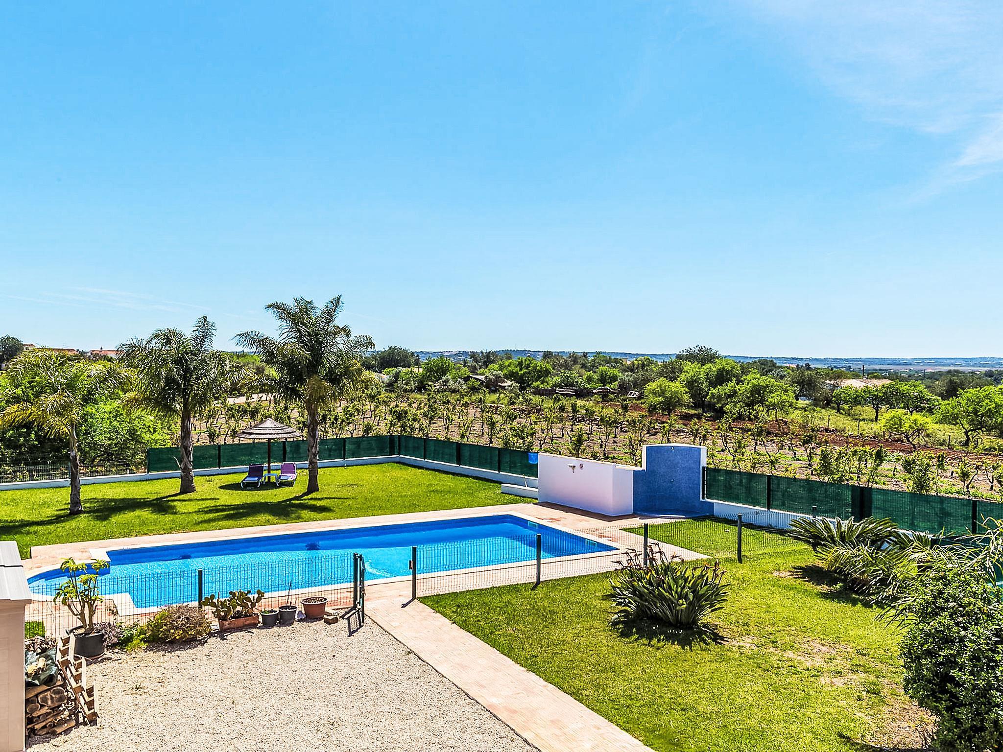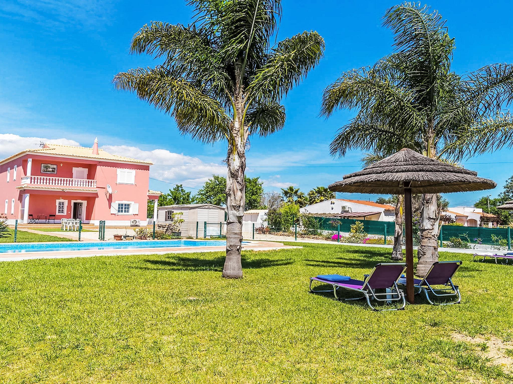 Villa "Casa das Amendoeiras", 2 storeys, detached. 9.3 km from the sea. Private: property 2'000 m2 (fenced), beautiful garden to relax, swimming pool angular, heated, fenced (depth 80 - 150 cm, seasonal availability: 01.Jan. - 31.Dec., extra) with salt-electrolysis pool-cleaning system. Outdoor shower, barbecue. In the house: WiFi, air conditioning, burglar alarm system, washing machine. Airport transfer. Parking (for 5 cars). Shop 6.2 km, grocery 5.6 km, supermarket 6.2 km, shopping centre 10.7 km, restaurant 5.6 km, bar 9.3 km, bakery 6.2 km, café 5.6 km, internet café 9.3 km, pub garden 9.3 km, bus stop 2.5 km, sandy beach "Praia de Armação de Pêra" 9.3 km. Golf course (9 hole) 4.6 km. Nearby attractions: Zoomarine 9.3 km, Slide e Splash 19.7 km, Algarve Shopping Guia 10.7 km.