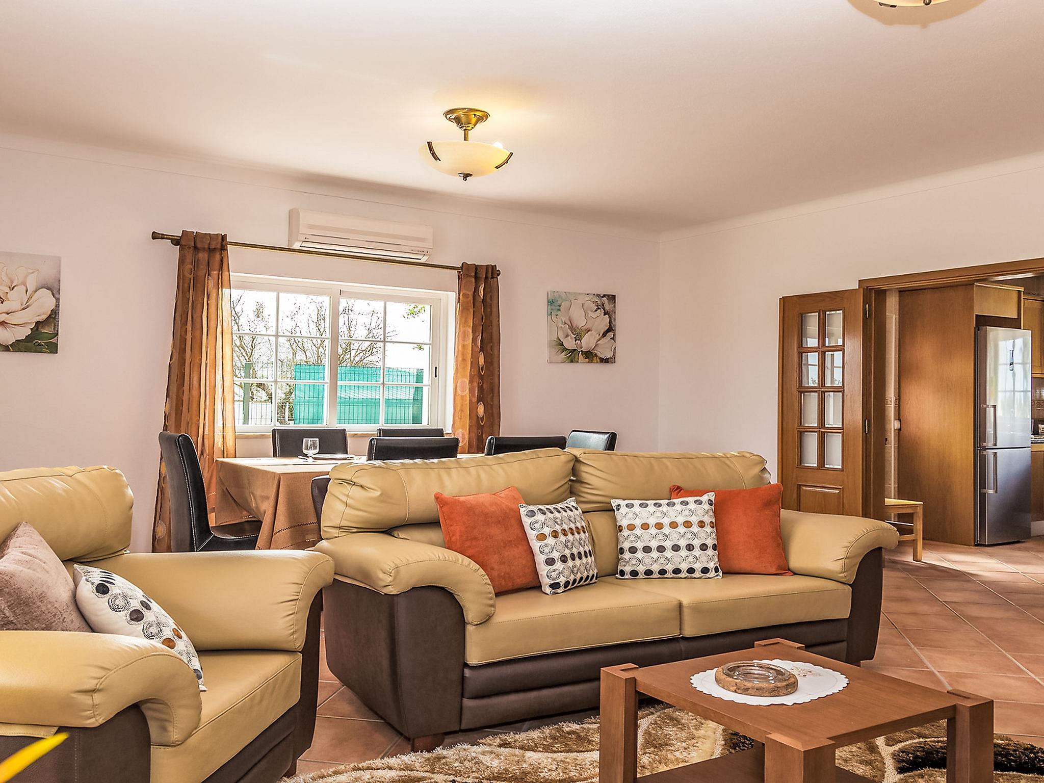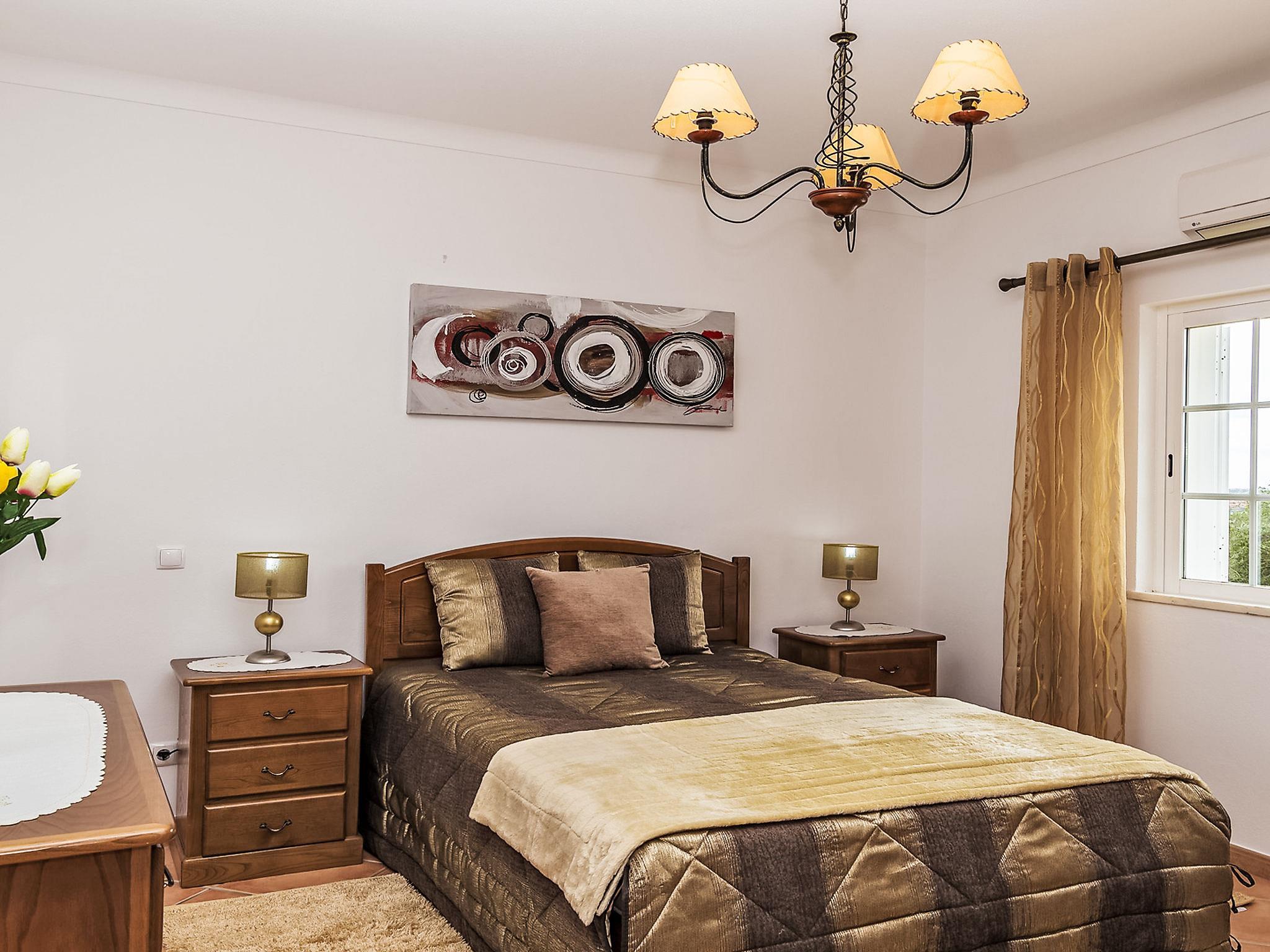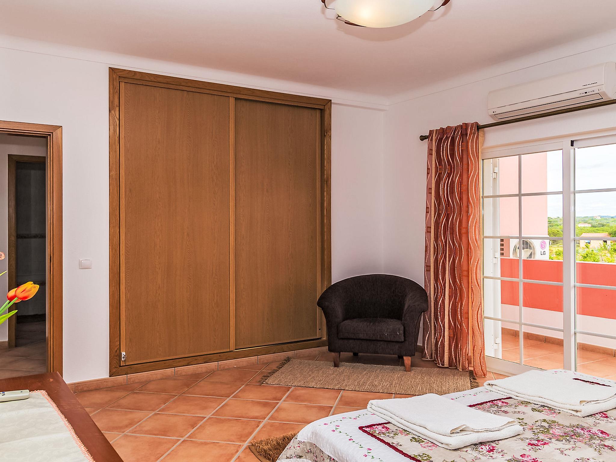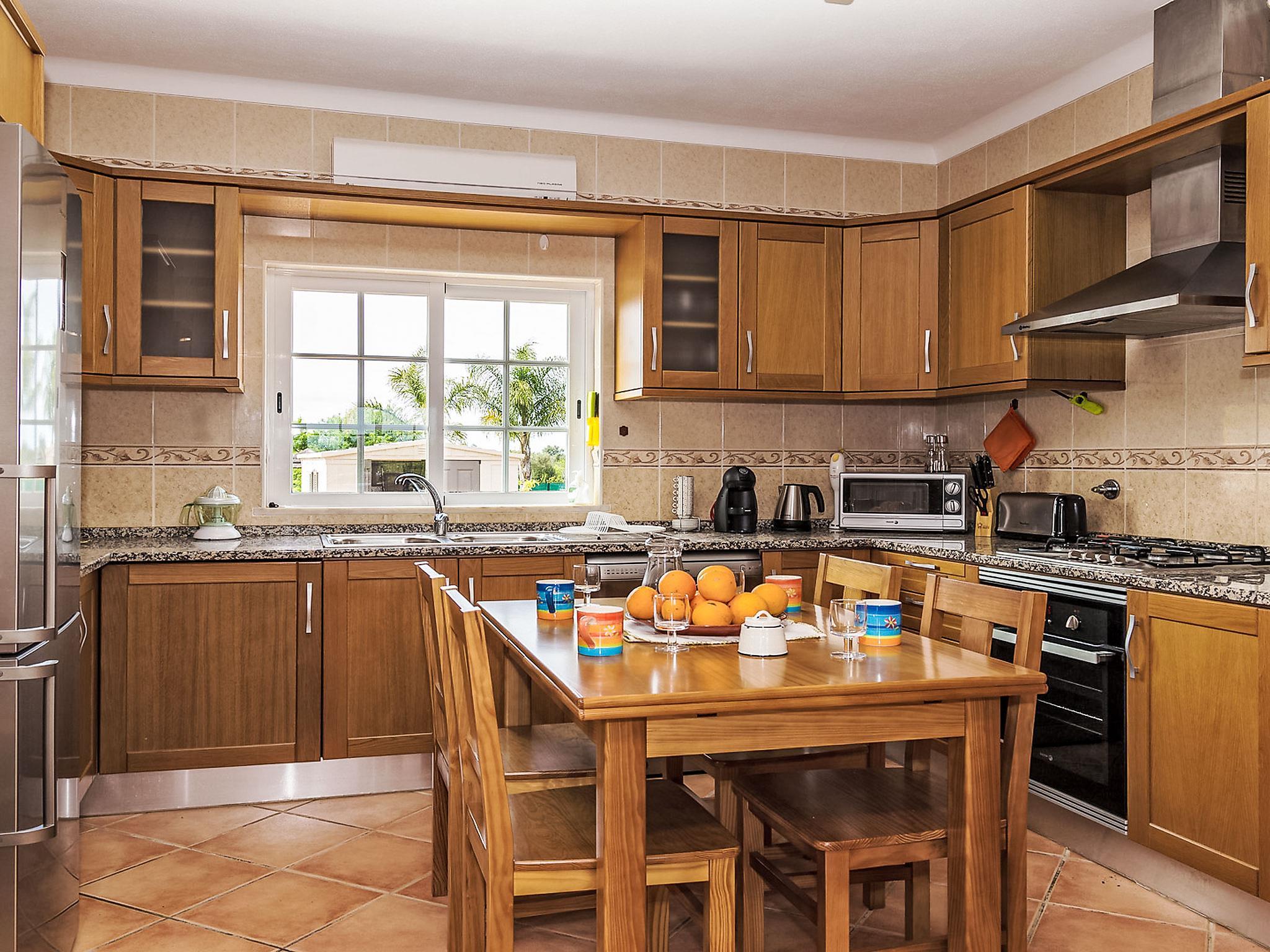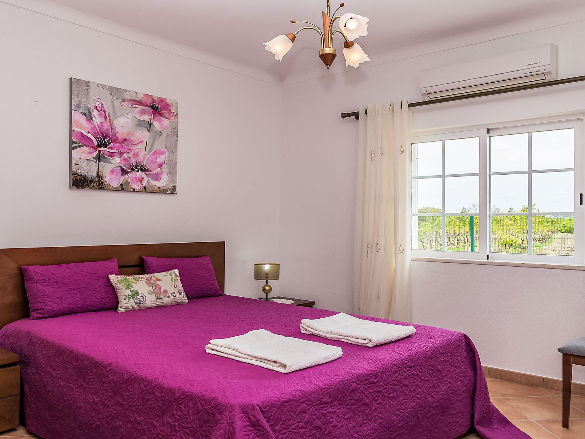 Villa "Casa das Amendoeiras", 2 storeys, detached. 9.3 km from the sea. Private: property 2'000 m2 (fenced), beautiful garden to relax, swimming pool angular, heated, fenced (depth 80 - 150 cm, seasonal availability: 01.Jan. - 31.Dec., extra) with salt-electrolysis pool-cleaning system. Outdoor shower, barbecue. In the house: WiFi, air conditioning, burglar alarm system, washing machine. Airport transfer. Parking (for 5 cars). Shop 6.2 km, grocery 5.6 km, supermarket 6.2 km, shopping centre 10.7 km, restaurant 5.6 km, bar 9.3 km, bakery 6.2 km, café 5.6 km, internet café 9.3 km, pub garden 9.3 km, bus stop 2.5 km, sandy beach "Praia de Armação de Pêra" 9.3 km. Golf course (9 hole) 4.6 km. Nearby attractions: Zoomarine 9.3 km, Slide e Splash 19.7 km, Algarve Shopping Guia 10.7 km.
