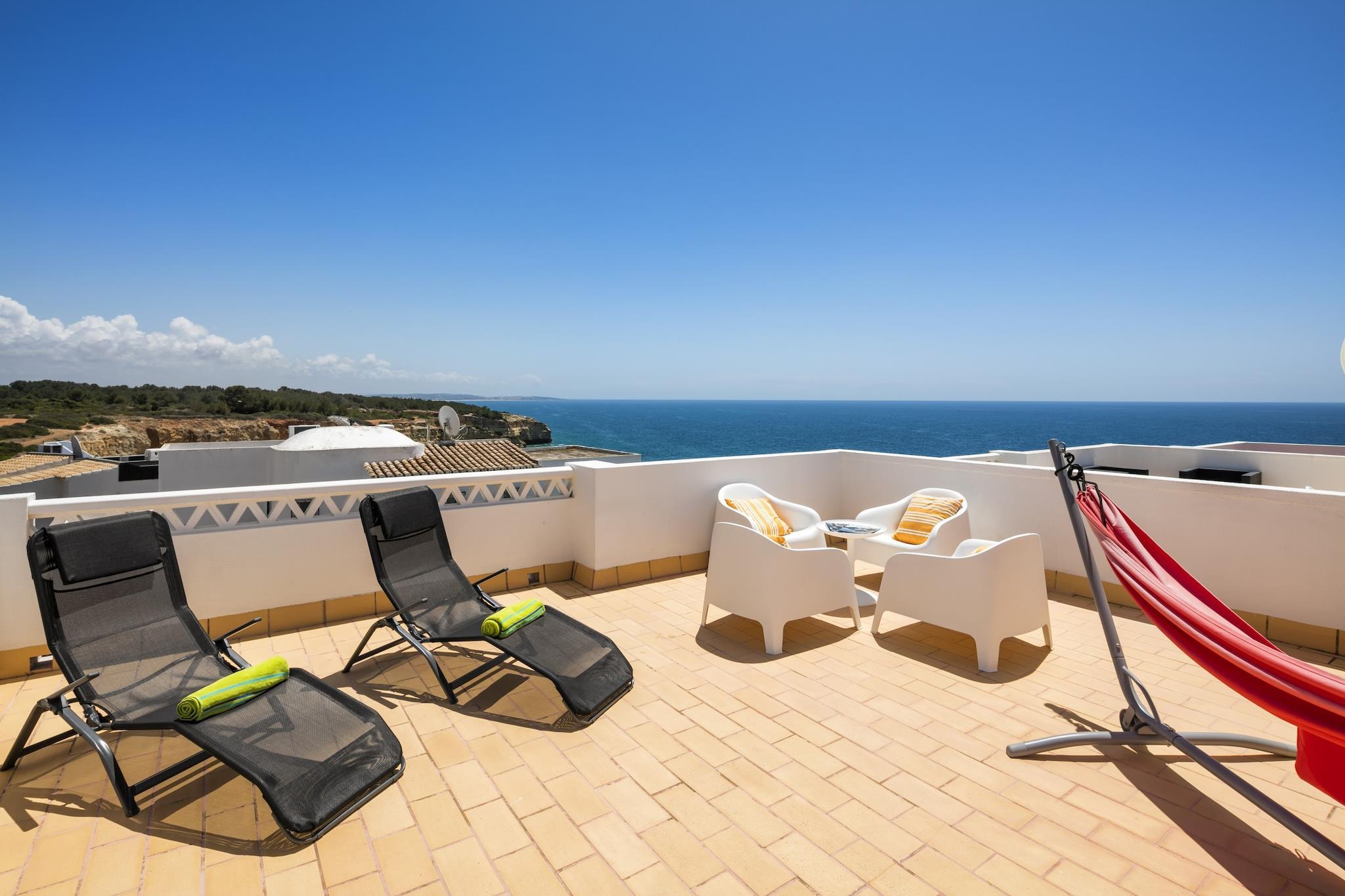 Escape to the charming coastal town of Benagil, where you can immerse yourself in the serene beauty of this stunning holiday home. Just steps away from the breathtaking Praia de Benagil beach, this modern and comfortable accommodation provides an ideal sanctuary for families, couples, and groups of friends seeking an unforgettable coastal experience. With its inviting atmosphere and prime location, your dream getaway awaits. Inside, the property features two beautifully appointed bedrooms that comfortably accommodate up to four guests. The luxurious master bedroom boasts a king-size bed, while the second bedroom is furnished with two individual beds, ensuring restful nights for all. With three bathrooms—including one with a relaxing bathtub—guests can indulge in a spa-like experience whenever they desire, adding an extra touch of convenience to your stay. The vibrant surroundings invite exploration and adventure, with an array of attractions just waiting to be discovered. Take a short drive to the charming town of Praia de Carvoeiro, where quaint shops and delightful eateries line the picturesque streets. For golf enthusiasts, several stunning courses are nearby, providing picturesque views and challenging play. Nature lovers will appreciate the expansive hiking trails along the breathtaking coastline and the captivating beauty of the Algarve’s natural parks. Don’t miss out on the opportunity to visit the iconic Benagil Caves, known for their spectacular rock formations and crystal-clear waters. Whether you're seeking a relaxing family getaway, a romantic escape, or a memorable trip with friends, this exceptional Benagil accommodation serves as the perfect base to explore the wonders of the Algarve.