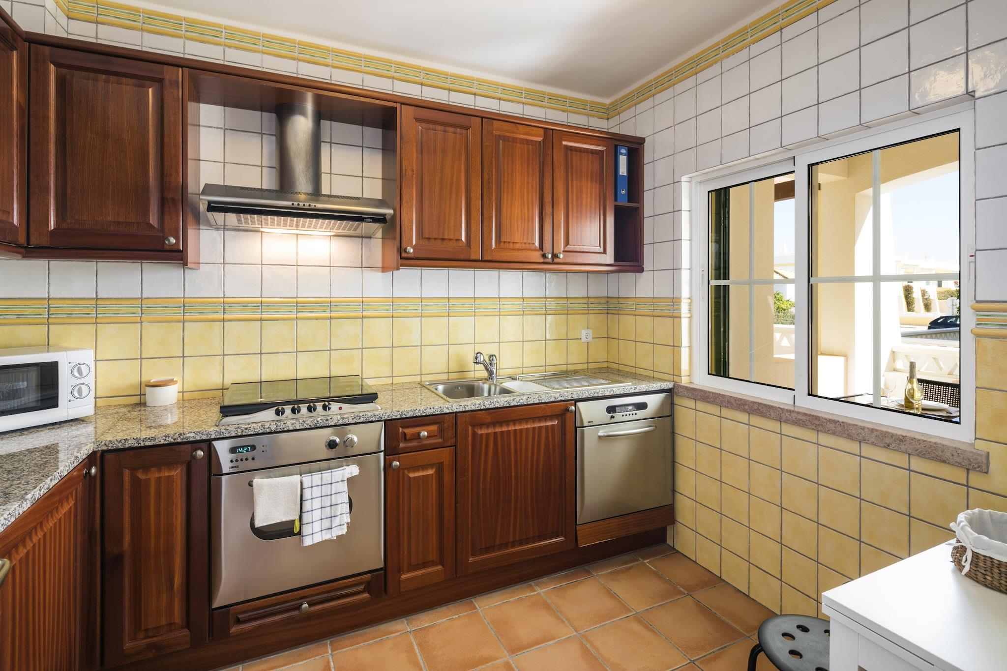 This cozy apartment is located in the charming coastal town of Benagil, just steps away from the beautiful Praia de Benagil beach, making it an ideal spot for a family vacation, romantic escape, or trip with friends. The apartment comfortably accommodates up to four guests with two well-appointed bedrooms: a master bedroom featuring a luxurious king-size bed and a second bedroom with two individual beds. With three bathrooms, including one with a relaxing bathtub, everyone’s needs are well catered for. The fully equipped kitchen is perfect for preparing delicious meals, while the open-plan living and dining area provides a welcoming space to relax and enjoy quality time together. Step outside to a spacious terrace with stunning sea views, ideal for al fresco dining or soaking up the sun. Guests can also enjoy the shared outdoor pool, surrounded by lush greenery, for a refreshing dip on warm days. Conveniently situated near local attractions, this apartment allows you to explore the quaint shops and restaurants of Benagil and nearby beautiful beaches like Praia do Carvalho and Praia da Marinha. Golf enthusiasts will find excellent courses such as Vale do Milho Golf and Gramacho Golf nearby. With amenities like air conditioning, Wi-Fi, and a private entrance, this well-equipped apartment serves as the perfect base to experience the stunning beauty of the Algarve region.
