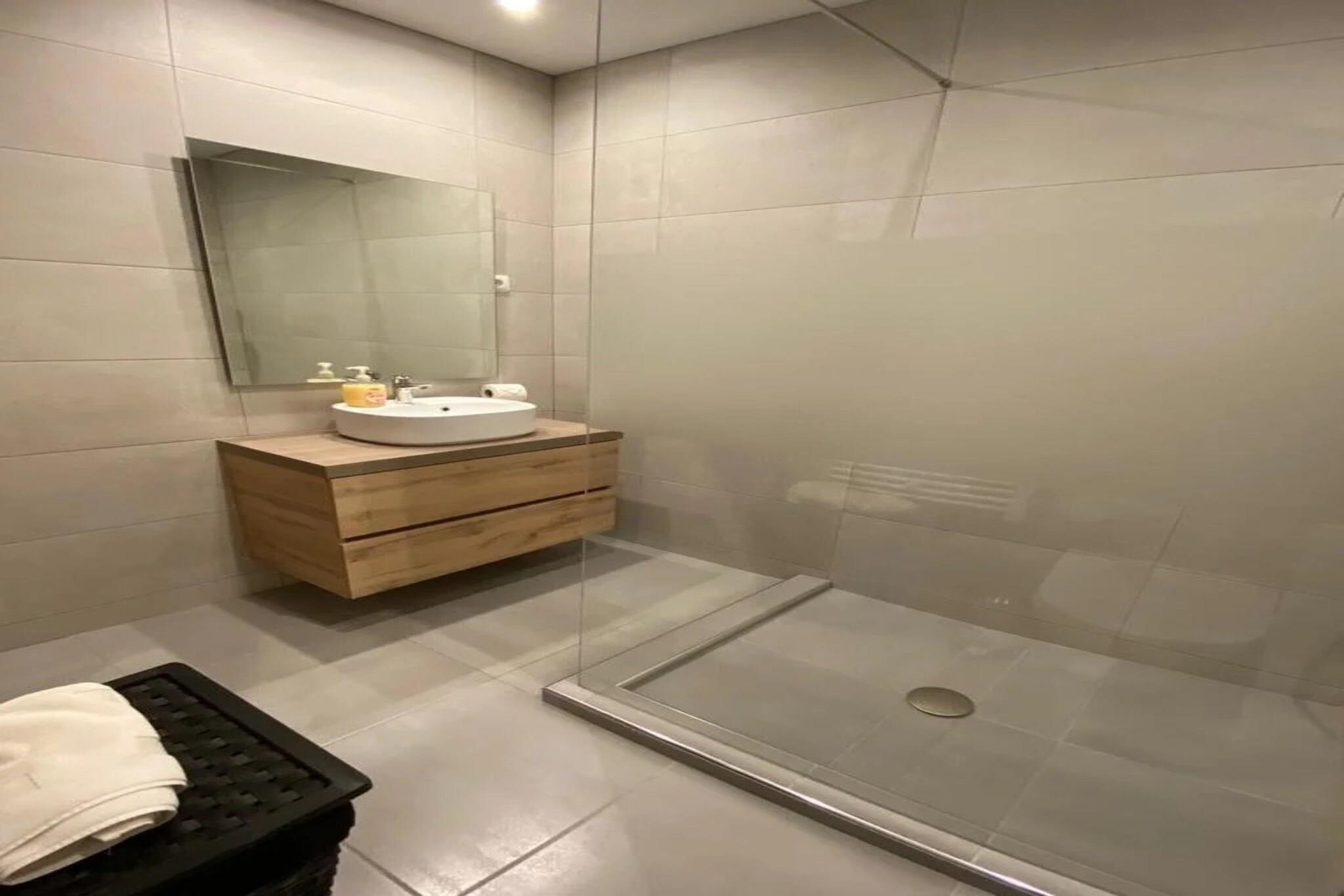 Living room(TV(flatscreen, satellite, smart TV), dining table, seating area, radio), open kitchen(electric kettle, toaster, coffee machine, oven, microwave, dishwasher, fridge-freezer, Juicer, dishes and cutlery, Wine glasses), bedroom(double king size bed), bedroom(single bed, single bed), bathroom(shower, hairdryer, shampoo), bathroom(shower, washbasin, toilet), bathroom(bath tub, washbasin, toilet), Internet access, Garden Furniture , grill, washing machine, balcony, patio, heating(electric), air conditioning, terrace, garden(fenced), parking, swimming pool(shared with other guests, outside), ironing board, iron, Essentials