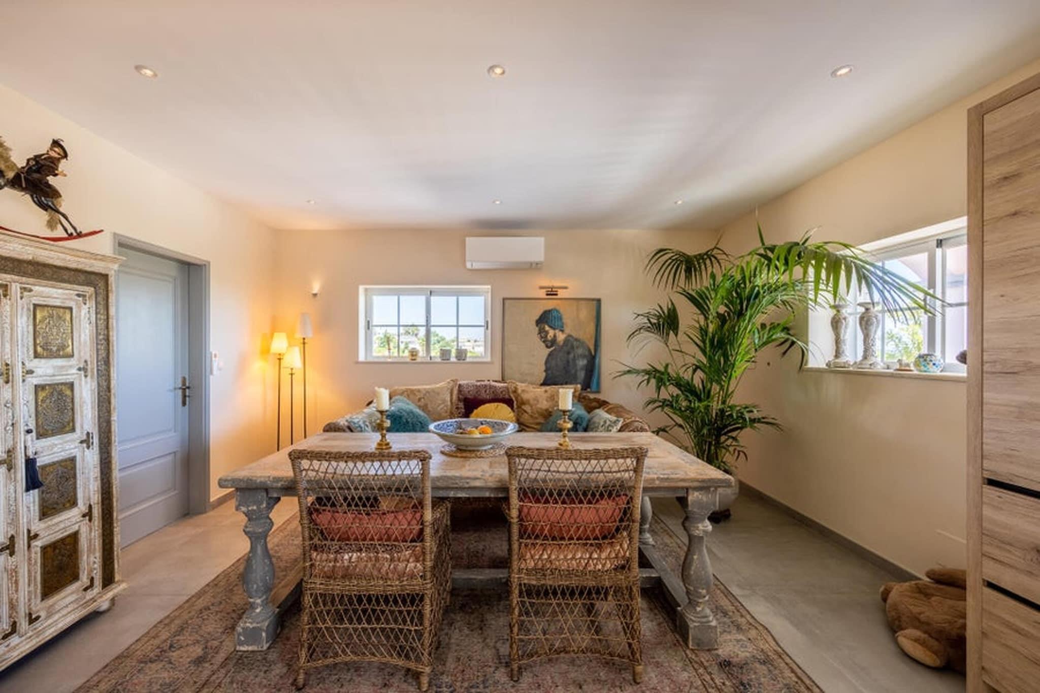 This elegant retreat in Budens offers a refined and peaceful Algarve escape, specifically designed for those who value privacy and the beauty of outdoor living. This accommodation consists of a single, independent private double bedroom with its own ensuite bathroom. Please note that this is a private room rental; no indoor kitchen or living room facilities are included within the guest suite. While the interior is dedicated to rest, the sprawling exterior areas are yours to enjoy. Guests have full access to the swimming pool, the sun-drenched pool terrace, and the lush gardens. For your culinary needs, you are invited to use the outdoor BBQ and exterior kitchen area, which features a comfortable seating space perfect for alfresco dining under the stars. Please be aware that a microwave is not available on-site. Located within the tranquil Santo António Golf Resort, you are perfectly positioned to explore the best of the region. A supermarket is conveniently located in Budens for your supplies, and the golden sands of Salema Beach are just 4.6 km away. Whether you are spending your days on the golf course or taking the short 19 km drive to the historic streets of Lagos, this sophisticated suite provides a quiet, high-quality base for a serene getaway.