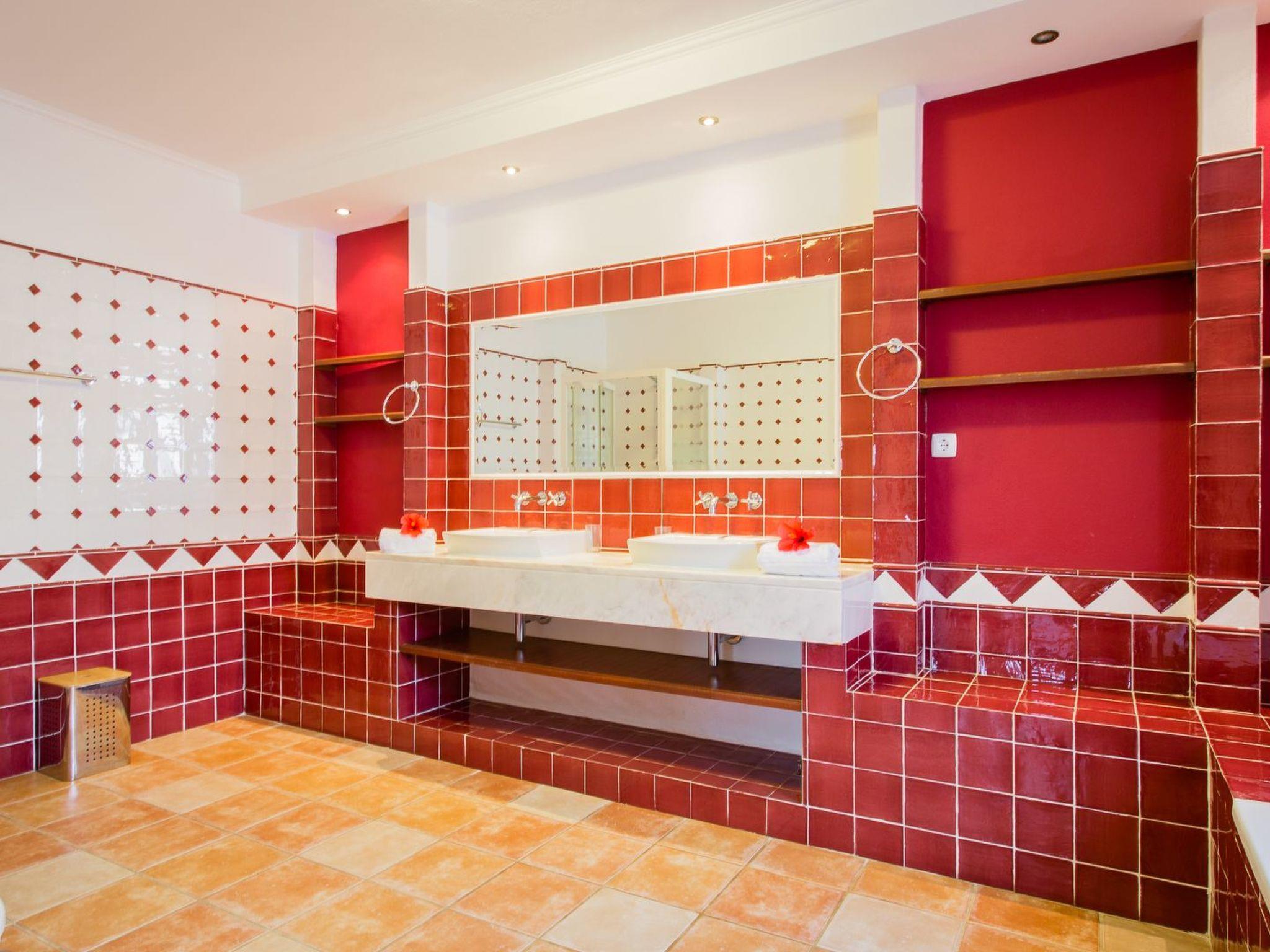 The villa has seven (double) bedrooms with en-suite bathrooms. Four bedrooms are on the ground floor and three bedrooms on the first floor. All bedrooms have air conditioning and ceiling fans. The master bedroom downstairs (upstairs is a second one) has French doors to the terrace and swimming pool In the studio (approx. 25 m2) is the eighth (double) bedroom with bathroom (incl. shower and toilet), kitchen and sitting/bedroom.