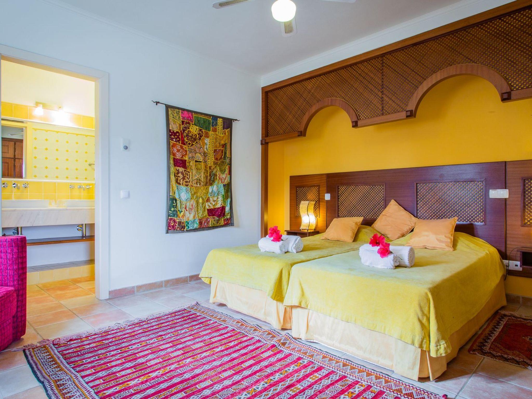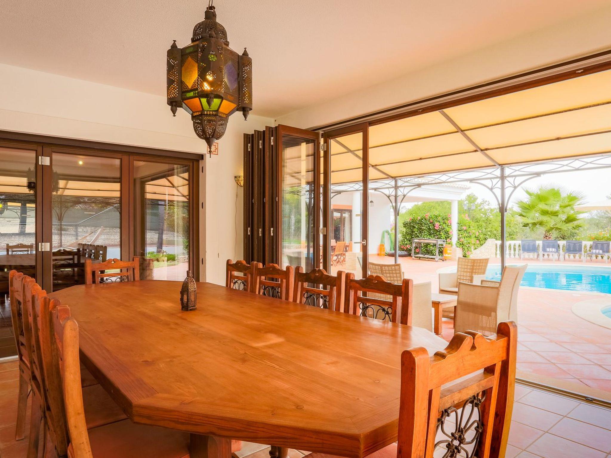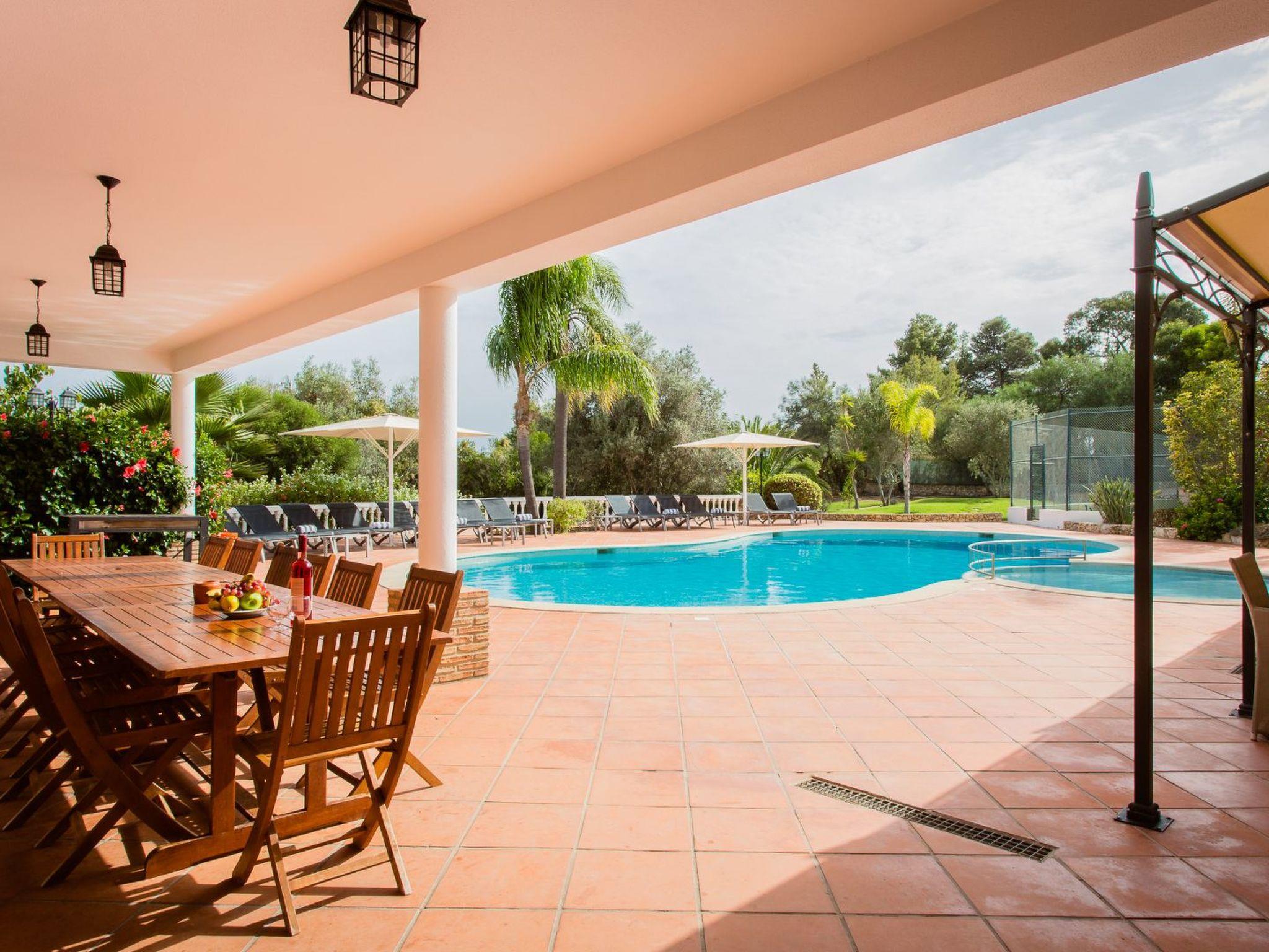 Impressive Moorish-style villa near the beach, with pool and tennis court The Moroccan-style villa is located in a residential area on a large private plot (with two other villas). The villa can accommodate 16 people (including the studio), and the nearest shops and restaurants can be reached within 5 car minutes. The nearest beach is Praia Centianes is 500 m. Three golf courses within 10 car minutes. Faro Airport approx 45 car minutes.