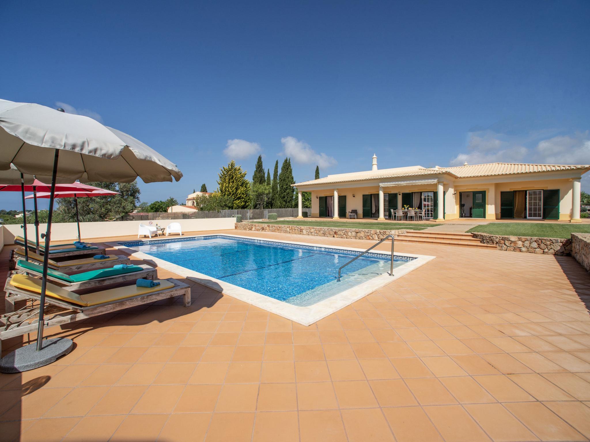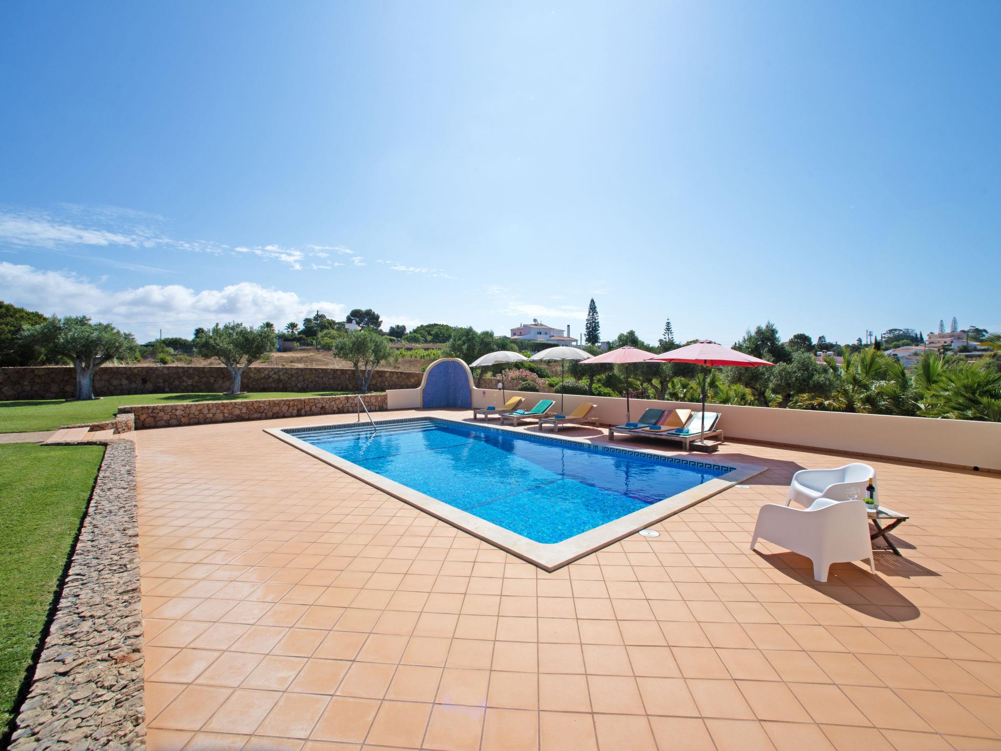 House "Alto da Rafoia", detached, surrounded by meadows and fields. 4 km from the centre of Carvoeiro, 2 km from the sea, in the countryside. Private: property 4'000 m2 (fenced) with lawn and trees, courtyard, swimming pool (11 x 5 m, depth 120 - 220 cm, seasonal availability: 01.Jan. - 31.Dec.). Outdoor shower. In the house: roof terrace, burglar alarm system. 100 m long bumpy, narrow motor access. Parking on the premises. Shop 3 km, restaurant 1 km, bus stop 1.1 km, sandy beach "Praia da Marinha" 2 km. Golf course (9 hole) 3 km.