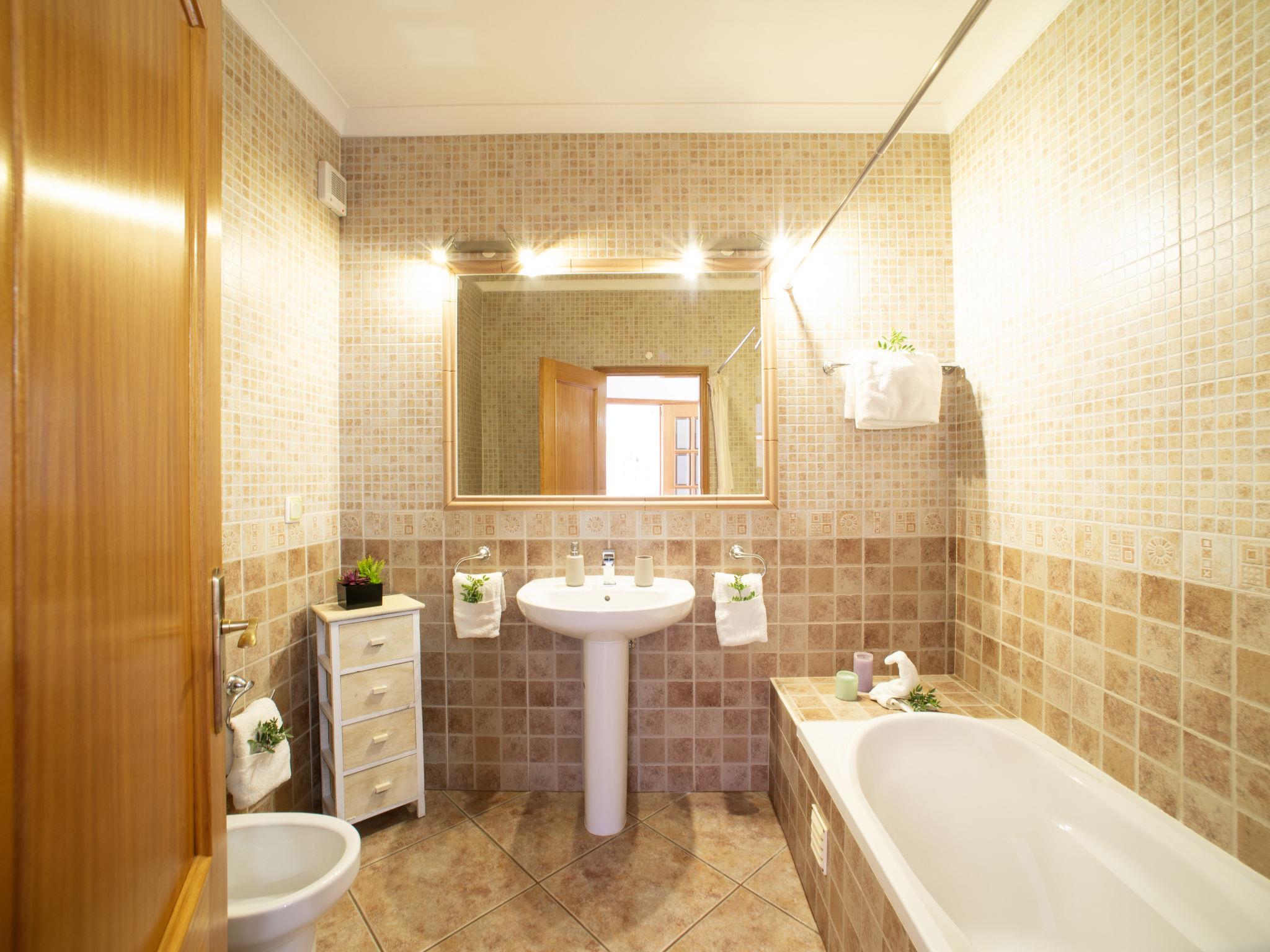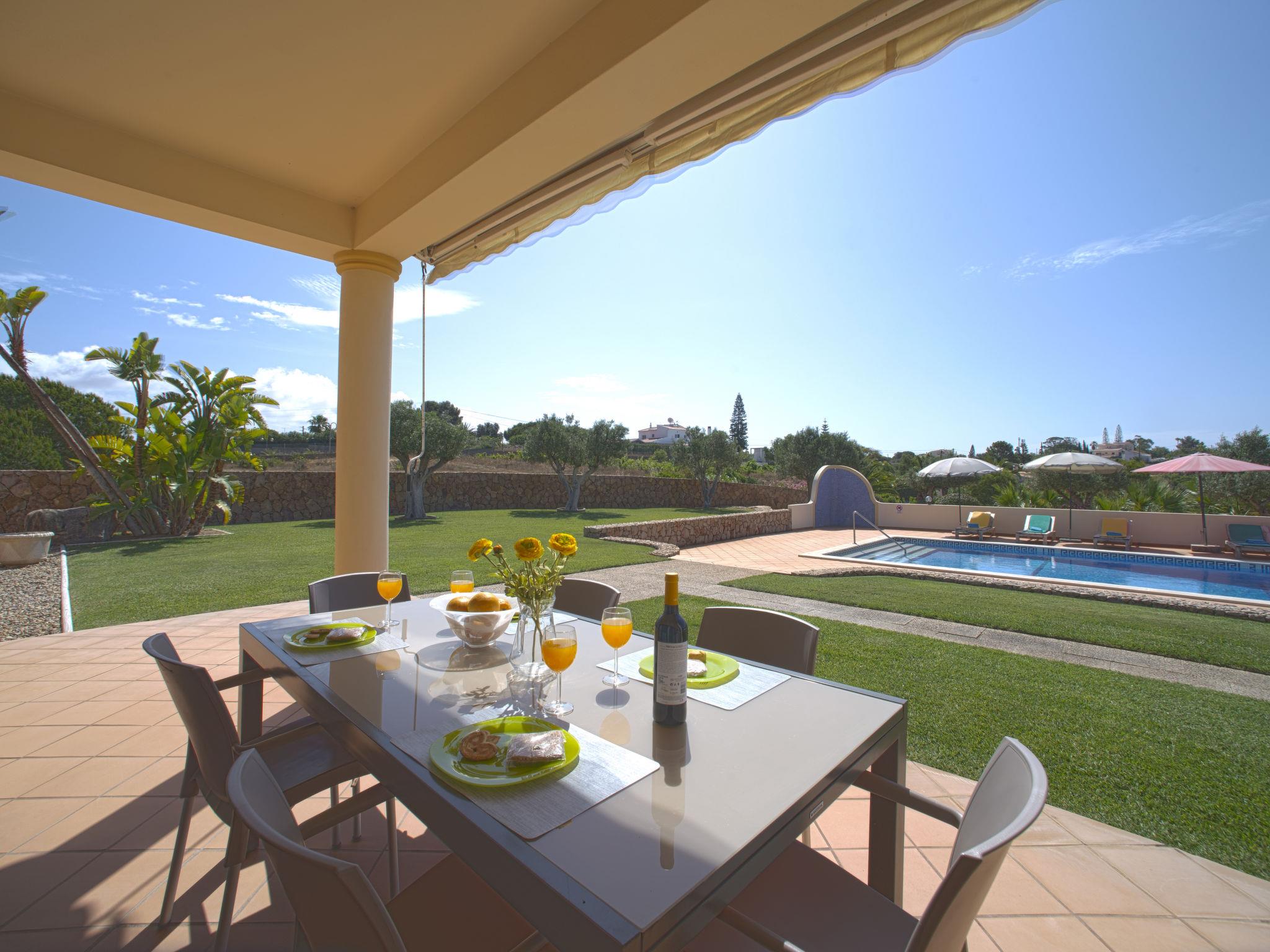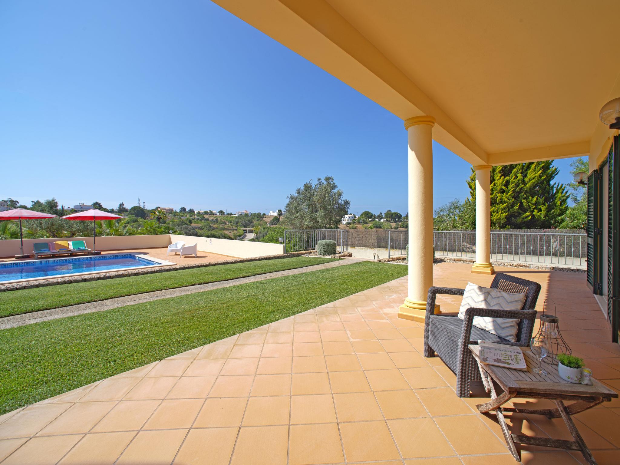 "Alto da Rafoia", 4-room house 140 m2. Bright, beautiful and tasteful furnishings: living/dining room with open-hearth fireplace, dining table, satellite TV, hi-fi system and DVD. Exit to the terrace. 1 room with 1 french bed (160 cm, length 200 cm), shower/WC and double hand-basin. Exit to the terrace. 1 room with 1 french bed (140 cm, length 200 cm), shower/WC. Exit to the terrace. 1 room with 2 beds (90 cm, length 200 cm). Exit to the terrace. Kitchen (oven, dishwasher, 4 ceramic glass hob hotplates, toaster, kettle, microwave, freezer, electric coffee machine) with dining table. Exit to the terrace. Bath/WC. Electric heating (extra), air-conditioning (extra). Terrace roofed. Terrace furniture, barbecue, deck chairs (6). Facilities: washing machine, safe, iron, children's high chair, baby cot, hair dryer. Please note: non-smokers only. Smoke alarm, fire extinguisher. 13874/AL