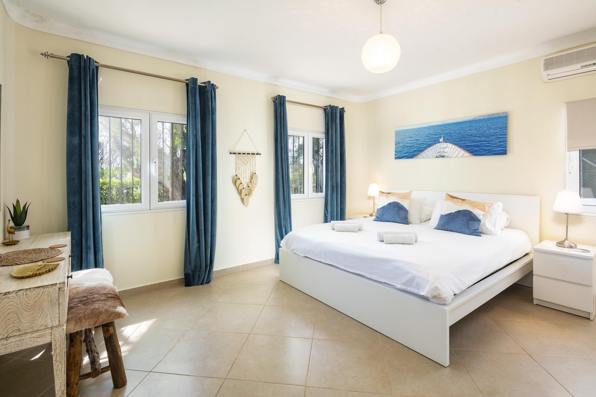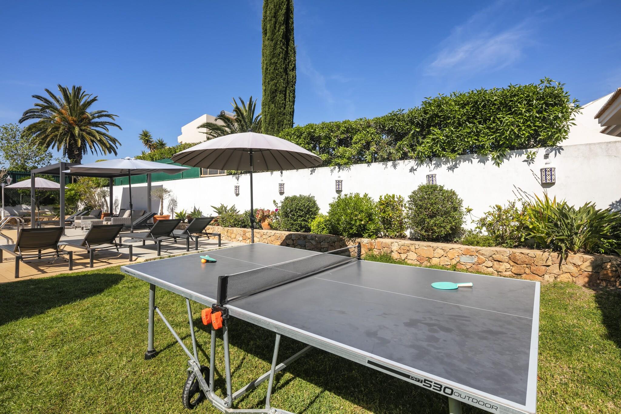 Discover an ideal family retreat in this stunning 5-bedroom villa located in the beautiful coastal town of Carvoeiro, Algarve. Spacious and thoughtfully designed, this accommodation is perfect for families, couples, and friends seeking a memorable holiday experience in Portugal. With an impressive 240 square meters of living space on a generous 1,100 square meter plot, this villa comfortably accommodates up to 10 guests. Step outside to enjoy spectacular outdoor spaces, including a private heated salt-water swimming pool (8m x 4m), a sun terrace, and multiple lounging areas, ideal for soaking up the sun. Families will love the BBQ area, garden furniture, and fenced plot, providing a safe environment for children. Indoors, comfort is key with central heating, air conditioning, and floor heating for year-round enjoyment. Entertainment options include a smart TV with multiple channels, a stereo system, and a ping-pong table for family fun. Just 1.3 km from the stunning Praia do Carvoeiro and Praia do Paraíso beaches, the villa offers easy access to coastal attractions. Nearby amenities, including supermarkets, restaurants, and golf courses, enhance your experience. Additional features include free WiFi, beach essentials, outdoor shower, and a fireplace for cozy evenings. With private parking for 3 vehicles and an excellent location, this villa promises an unforgettable Algarve holiday. Please note: No pets are allowed, and the property is not suitable for youth groups. Smoking inside is prohibited.