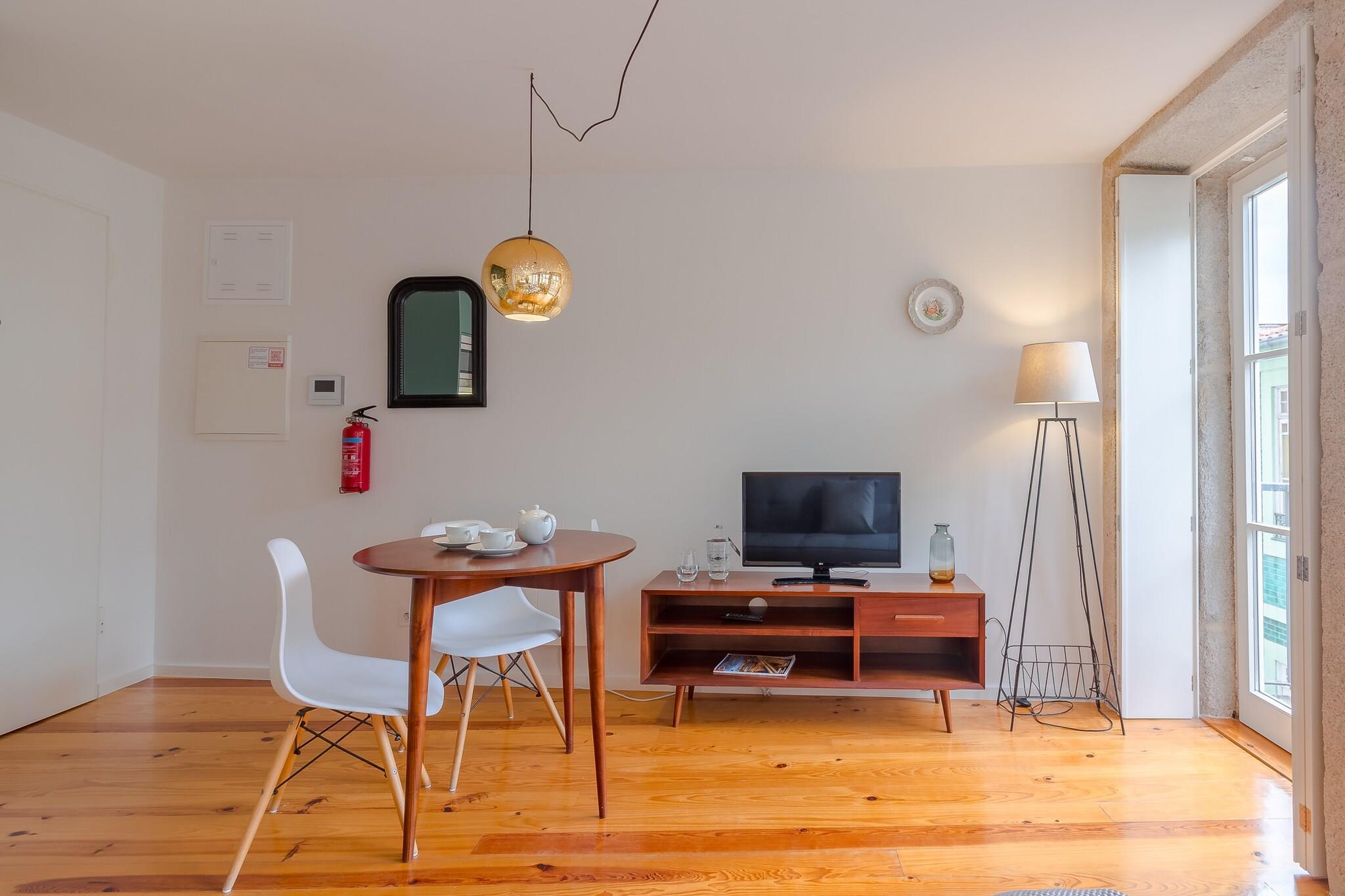 This cozy 28 m² studio is located in the heart of Porto, offering a perfect base for couples or solo travelers. With a modern and welcoming decor, the apartment features a comfortable double bed and a fully equipped kitchen, including a ceramic hob, refrigerator, freezer, coffee machine, oven, and microwave, ideal for preparing simple meals. The bathroom includes a shower, and the apartment is equipped with air conditioning, electric heating, and free Wi-Fi for year-round comfort. A private balcony offers a lovely city view, and the cable TV provides a variety of channels in Spanish, English, French, and Portuguese. Situated in the vibrant center of Porto, the studio provides easy access to the city’s iconic landmarks, picturesque streets, and historic monuments. Guests can explore the charming Ribeira district, enjoy the scenic views along the Douro River, and discover the city’s lively cafes, restaurants, and markets. The area also boasts a vibrant nightlife, making it perfect for those seeking to immerse themselves in Porto's rich culture. Public transportation options are nearby, making it easy to explore further. The apartment is designed for maximum convenience, featuring essential amenities like a fully equipped kitchen and a comfortable living space. Whether enjoying the city view from the balcony or relaxing indoors with cable TV, this cozy studio is an excellent choice for those seeking a hassle-free stay in Porto. Although parking is not available on-site, options are located close by, adding extra convenience for guests traveling by car.