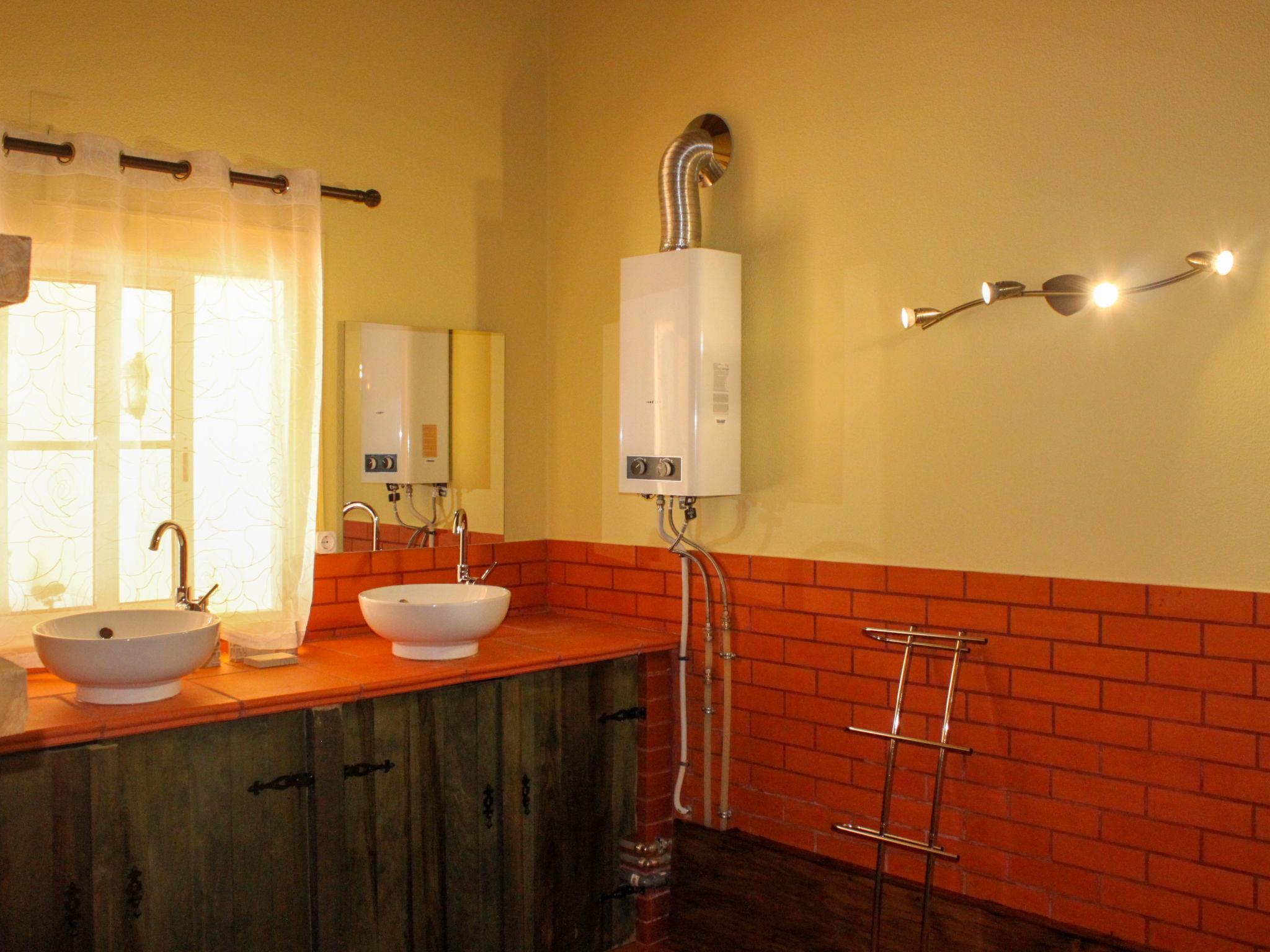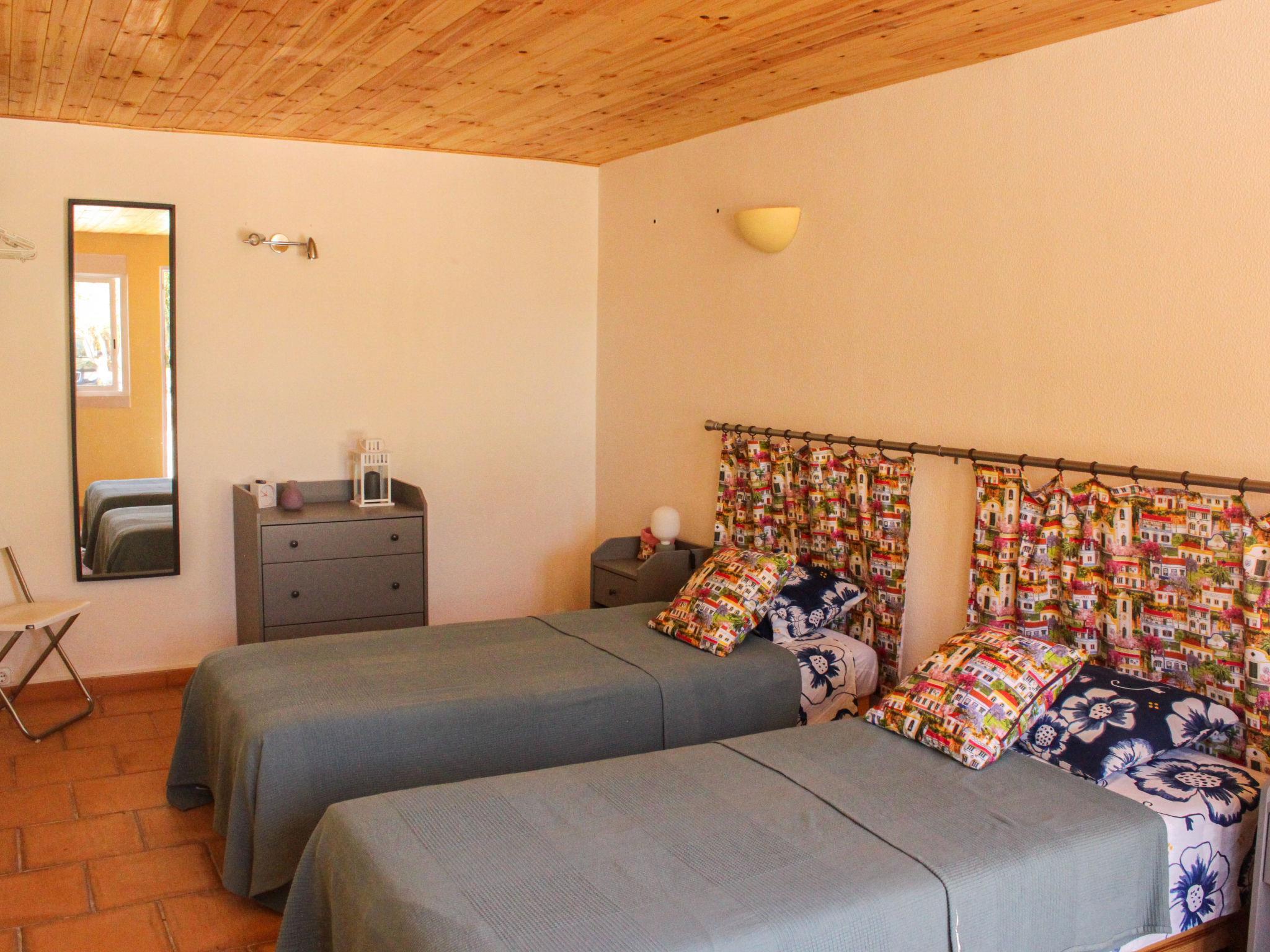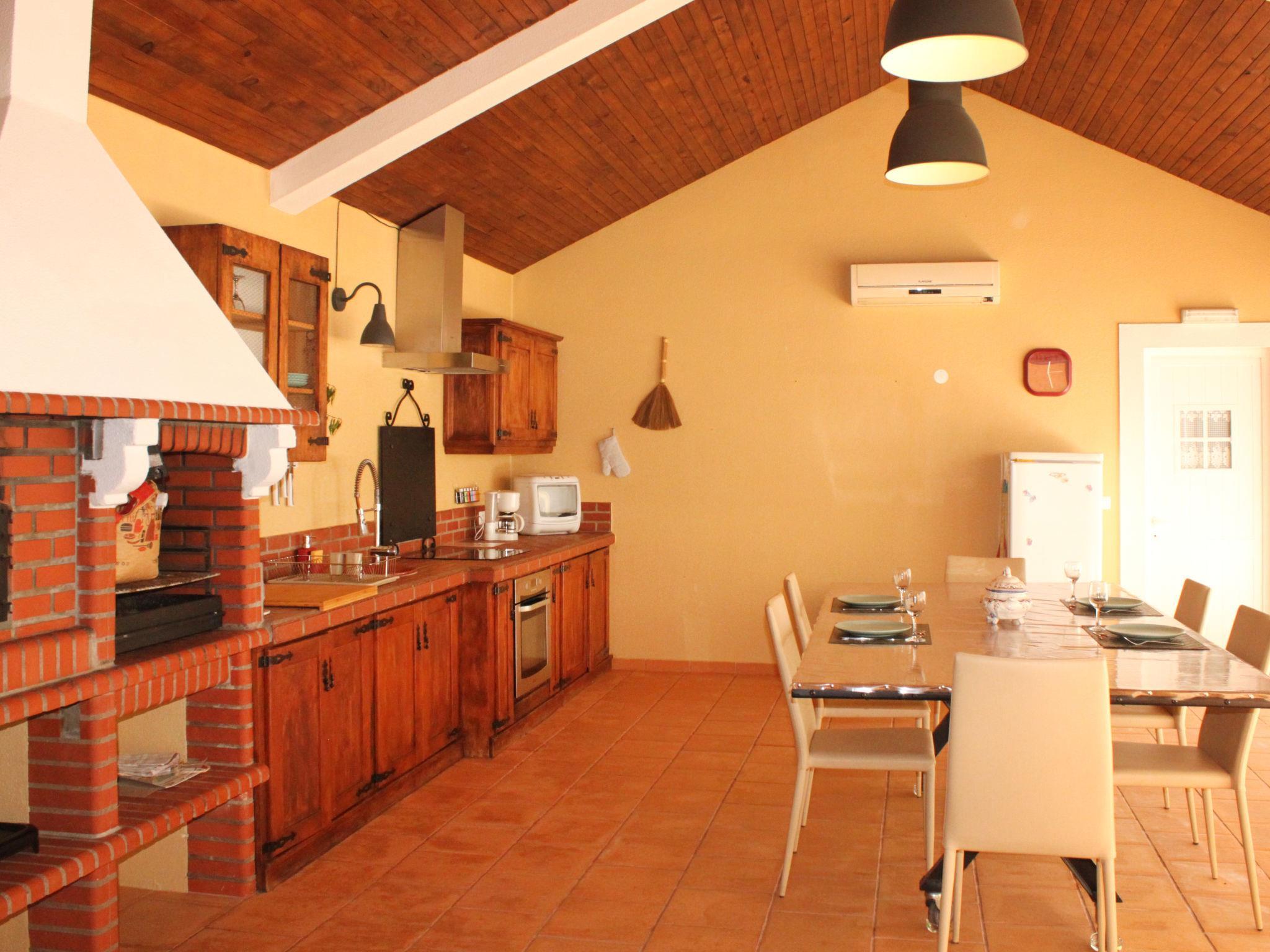 "Quinta Dahlia", 3-room semi-detached house 110 m2. Practical and rustic furnishings: walk-through room with 1 french bed (140 cm, length 200 cm). Small gallery with sloping ceilings with 2 beds (90 cm, length 195 cm). 1 room with 1 french bed (2 x 90 cm, length 200 cm). Exit to the terrace. Kitchen-/living room (oven, dishwasher, 4 ceramic glass hob hotplates, toaster, kettle, microwave, freezer, electric coffee machine, pizza oven) with Scandinavian wood stove, dining table, satellite TV and air conditioning. Exit to the terrace. Shower/WC, double hand-basin. Electric heating (extra). Heating not available in all rooms. Natural stone floors. Terrace partly roofed terrace partly roofed. Barbecue. Facilities: baby cot. Internet (WiFi, free). 132671/AL