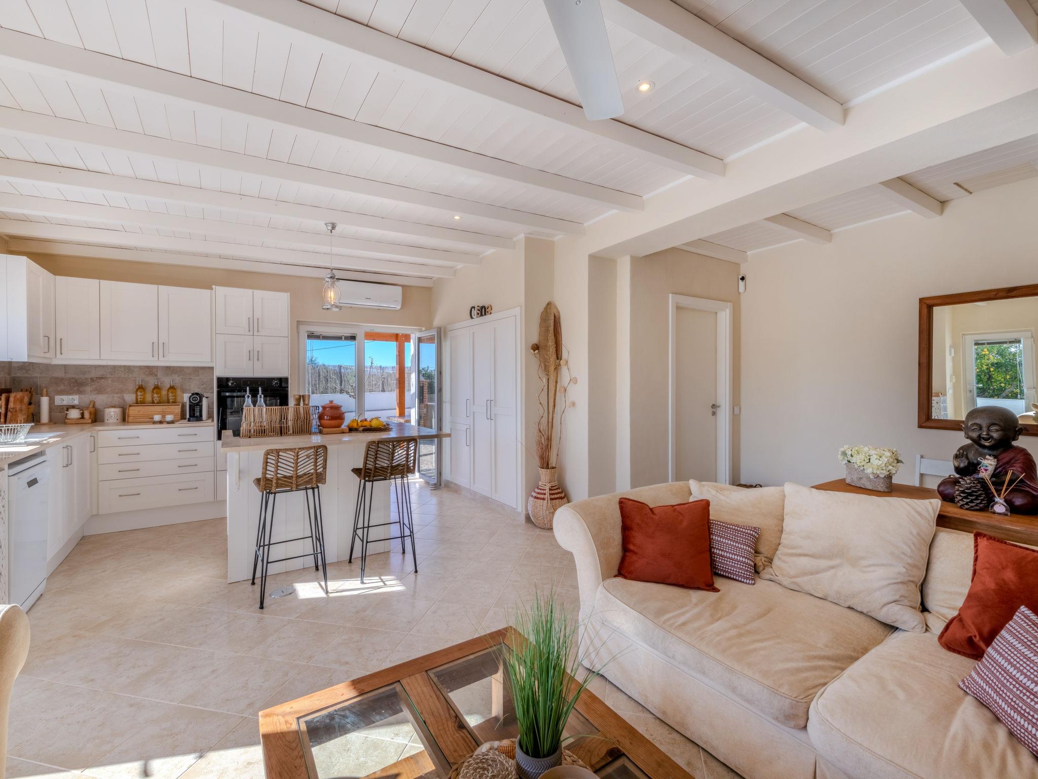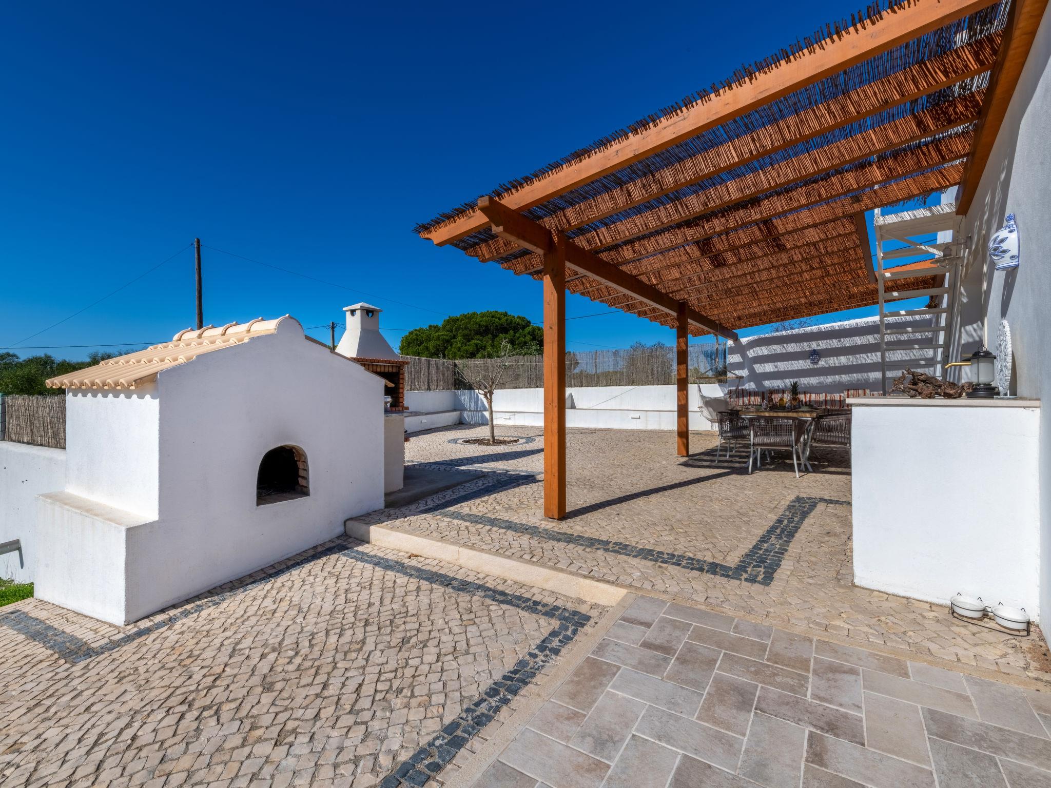 Porches: Very cosy, comfortable house "Dos Pombinhos", detached, renovated in 2024, surrounded by trees and fields. Outside the resort, 5.2 km from the centre of Armação de Pêra, in a quiet position, 4.1 km from the sea. Private: natural garden 2'532 m2, beautiful garden to relax, swimming pool angular (4 x 8 m, depth 120 - 160 cm, seasonal availability: 01.Jan. - 31.Dec.). In the house: WiFi, air conditioning, washing machine. Parking on the premises. Grocery 3 km, supermarket 3 km, shopping centre 14.3 km, restaurant 2.6 km, bar 3.9 km, bakery 3 km, café 3 km, bus stop 9.8 km, sandy beach "Praia de Nossa Senhora da Rocha" 4.1 km. Marina 15.8 km, golf course (18 hole) 11.4 km, surf school 5.7 km, tennis 3.8 km, riding stable 10.3 km, children's playground 5.1 km. Nearby attractions: Zoomarine 13.5 km, Aqualand 5.2 km, Krazy World 17 km, Slide & Splash - Waterpark 7.5 km, Carvoeiro 8 km, Farol de Alfanzina, Carvoeiro 7 km. Hiking paths: Lagoa dos Salgados 10.9 km. Please note: car recommended. Suitable for families. Loading and unloading of baggage is possible at the holiday house. fibre optics in the wifi system.