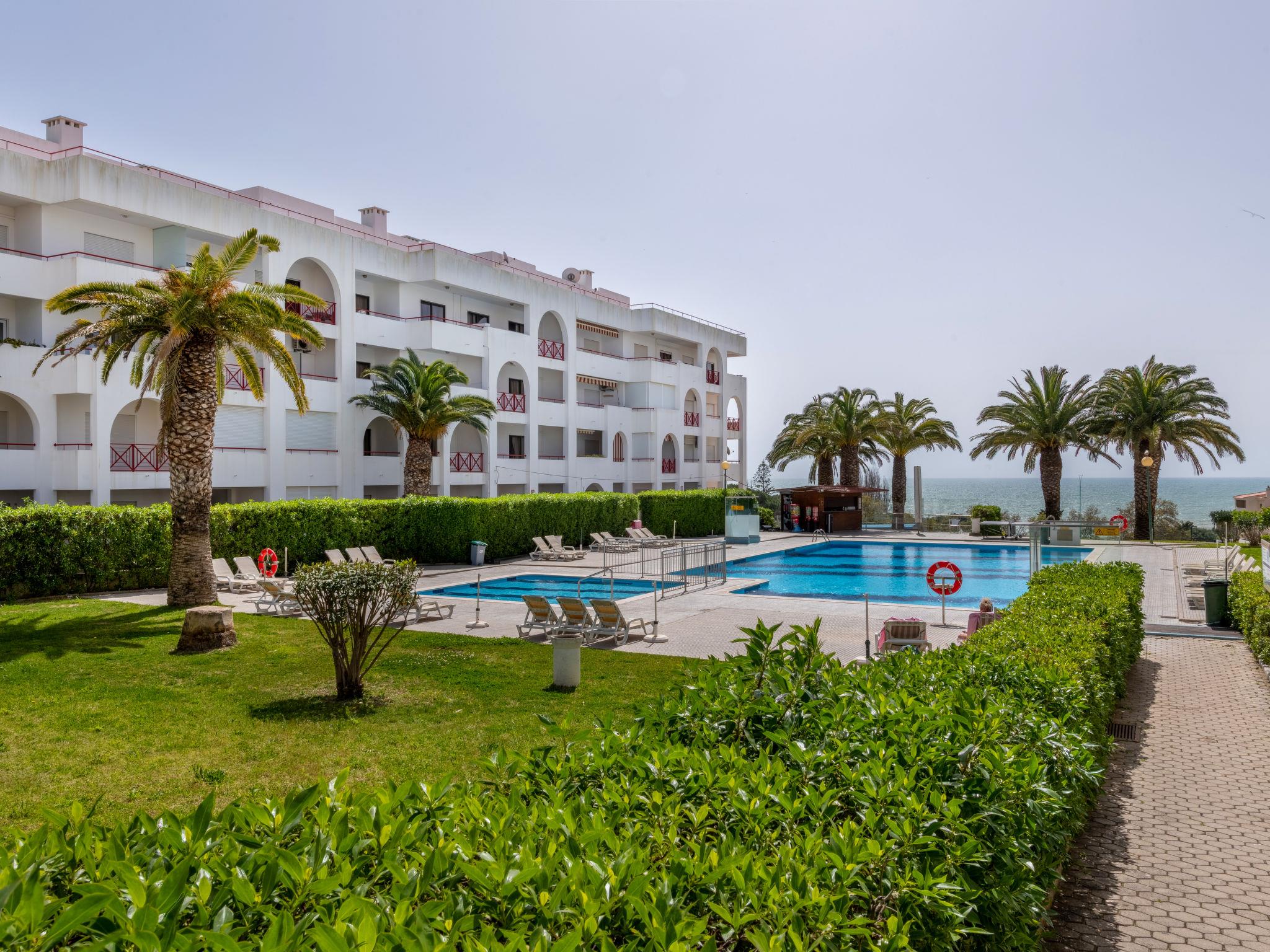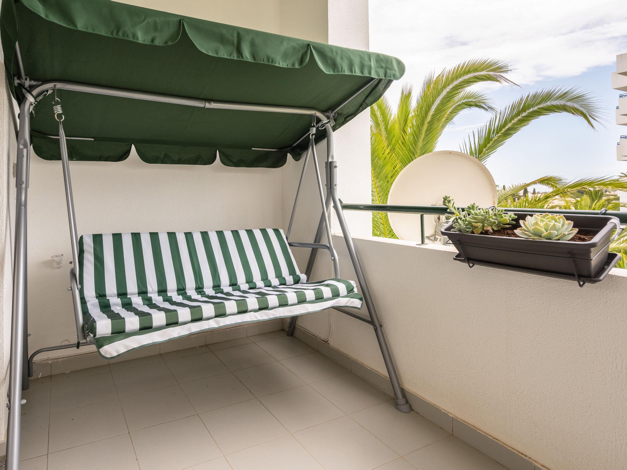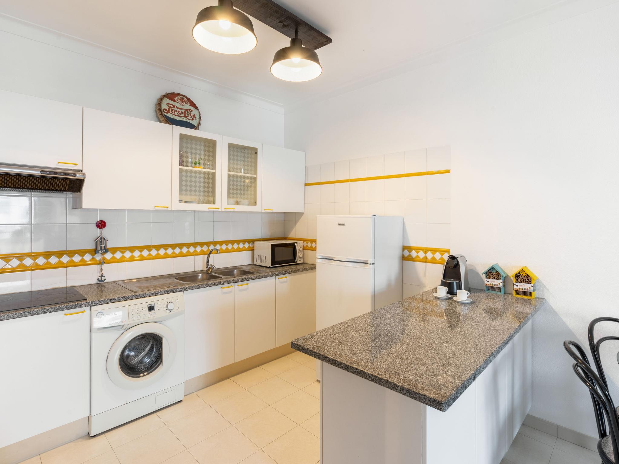 "Algarve Treasure", 2-room apartment 54 m2. Very comfortable and cosy furnishings: living/sleeping room with cable TV, flat screen, air conditioning and forced-air heating. 1 room with 1 bed (160 cm, length 200 cm), air conditioning and forced-air heating. Kitchenette (4 induction hot plates, toaster, microwave, freezer, electric coffee machine, Capsules for coffee machine (Nespresso not incl)) with dining table, 1 sofabed, TV, international TV channels and flat screen. Exit to the terrace. Shower/WC. No heating option. Terrace furniture. Side view of the sea. Facilities: washing machine, iron, children's high chair, baby cot for up to 2 year olds, hair dryer. Internet (WiFi). Please note: suitable for families. Non-smokers only. Fire extinguisher, no lift. 125216/AL