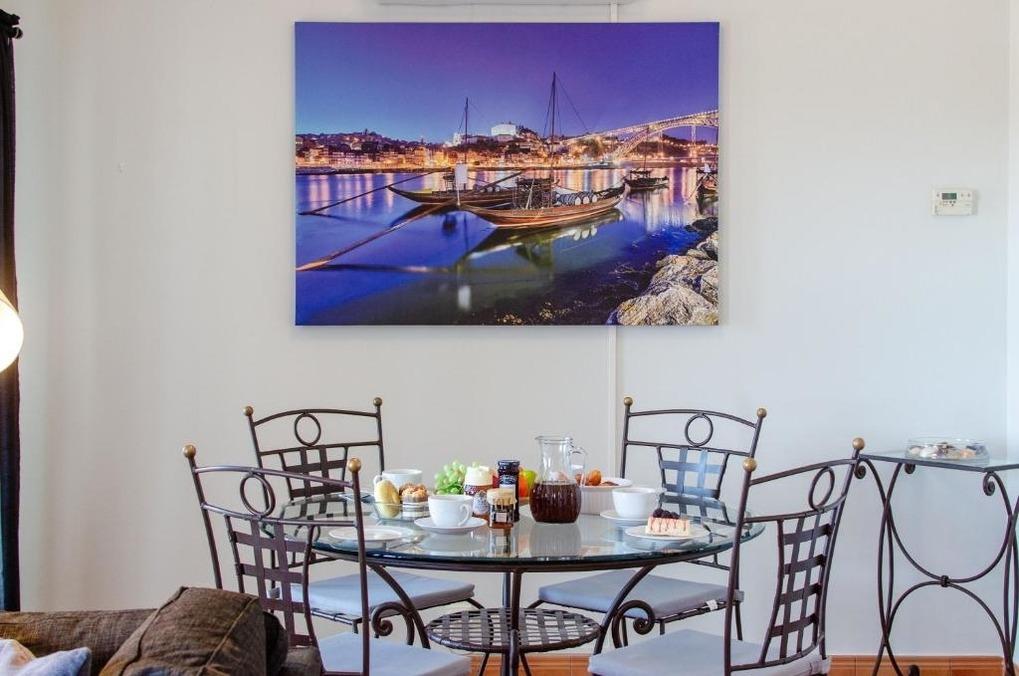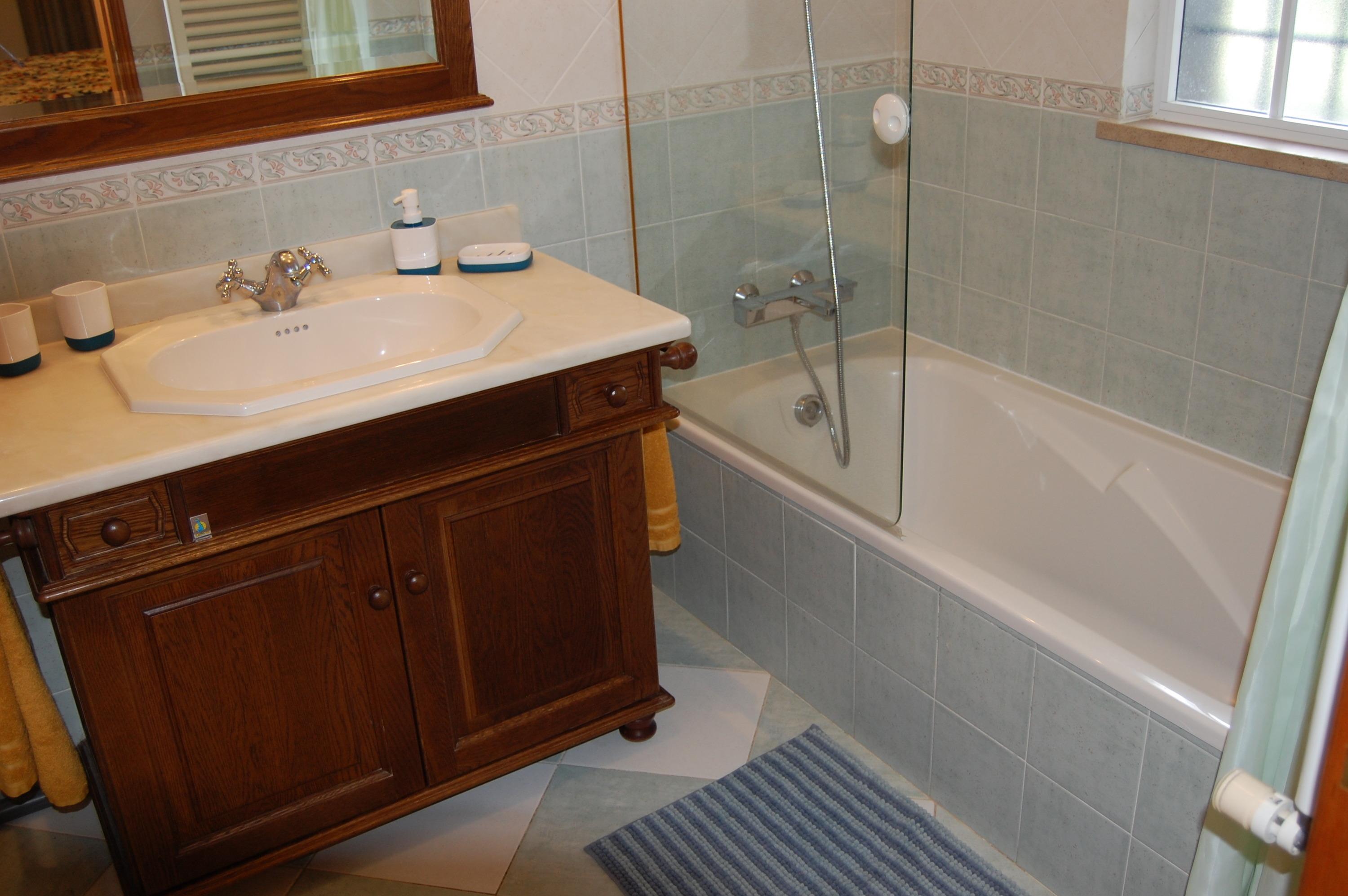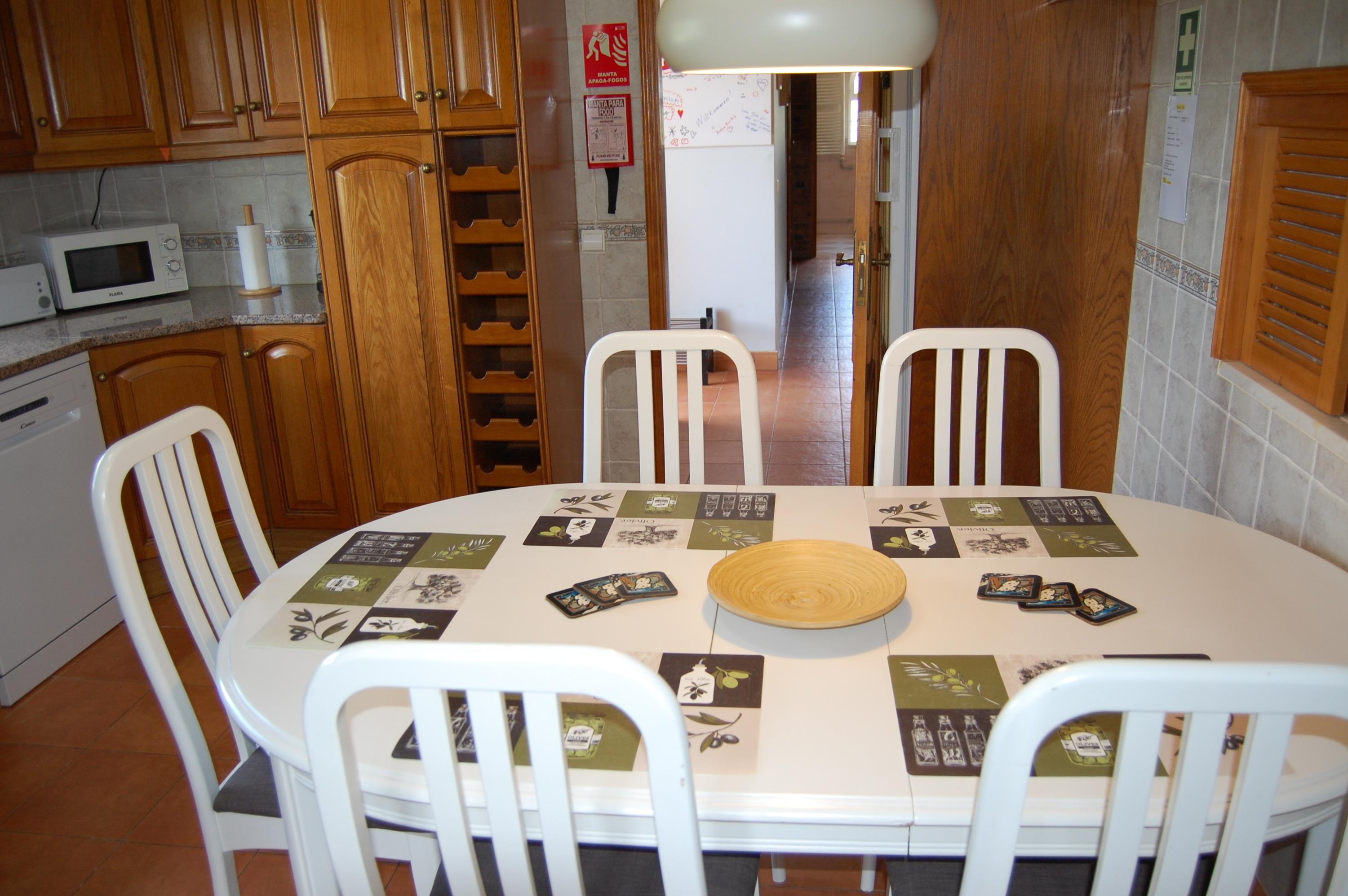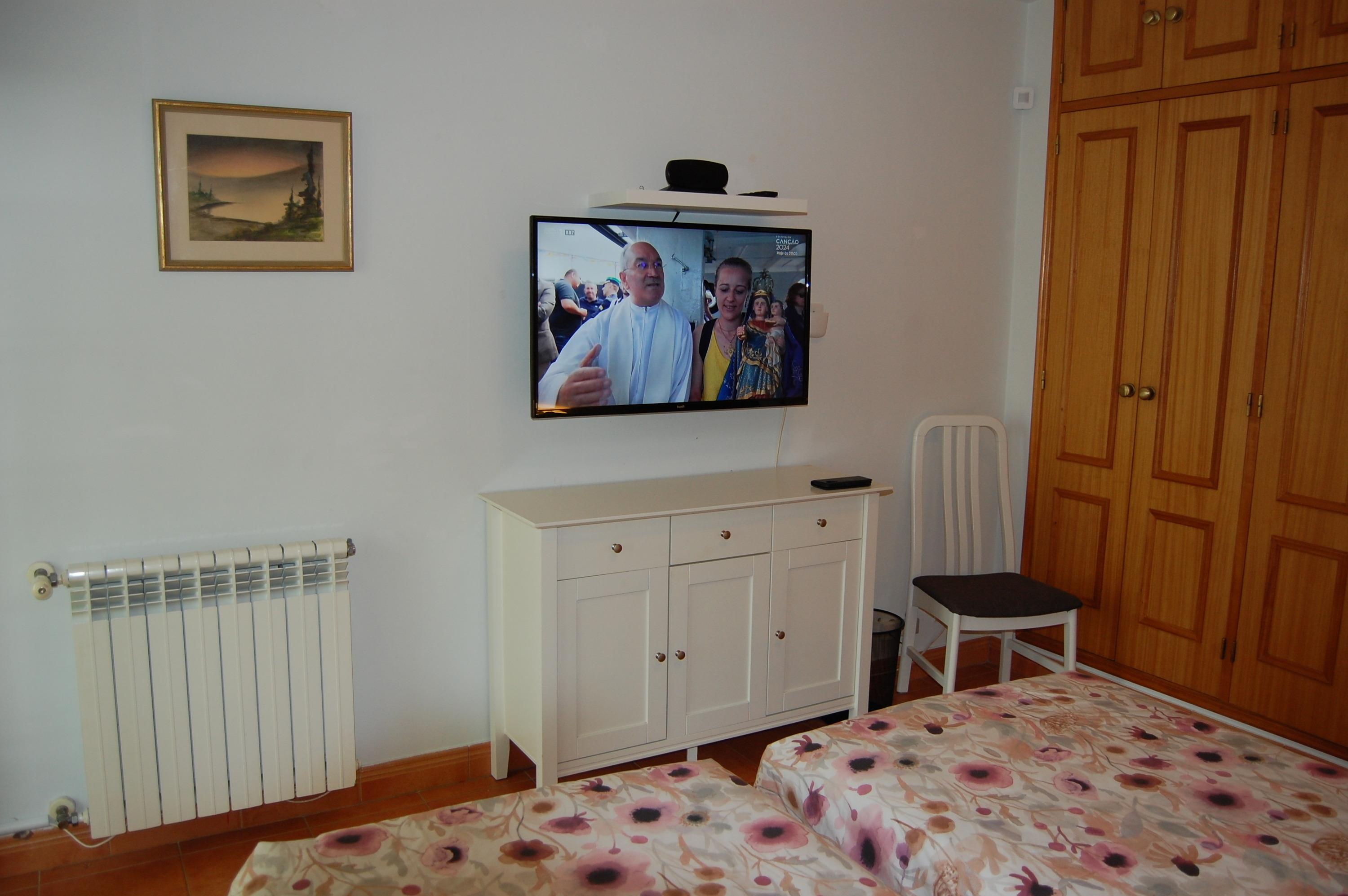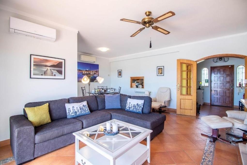 Das große Wohnzimmer ist ausgestattet mit einer Couch, einem großen Glastisch mit 4 Stühlen, ein Flachbildfernseher mit SAT-TV, WLAN , DVD-Player, portugiesisches-TV und einen Kamin. Das Wohnzimmer und die Schlafzimmer