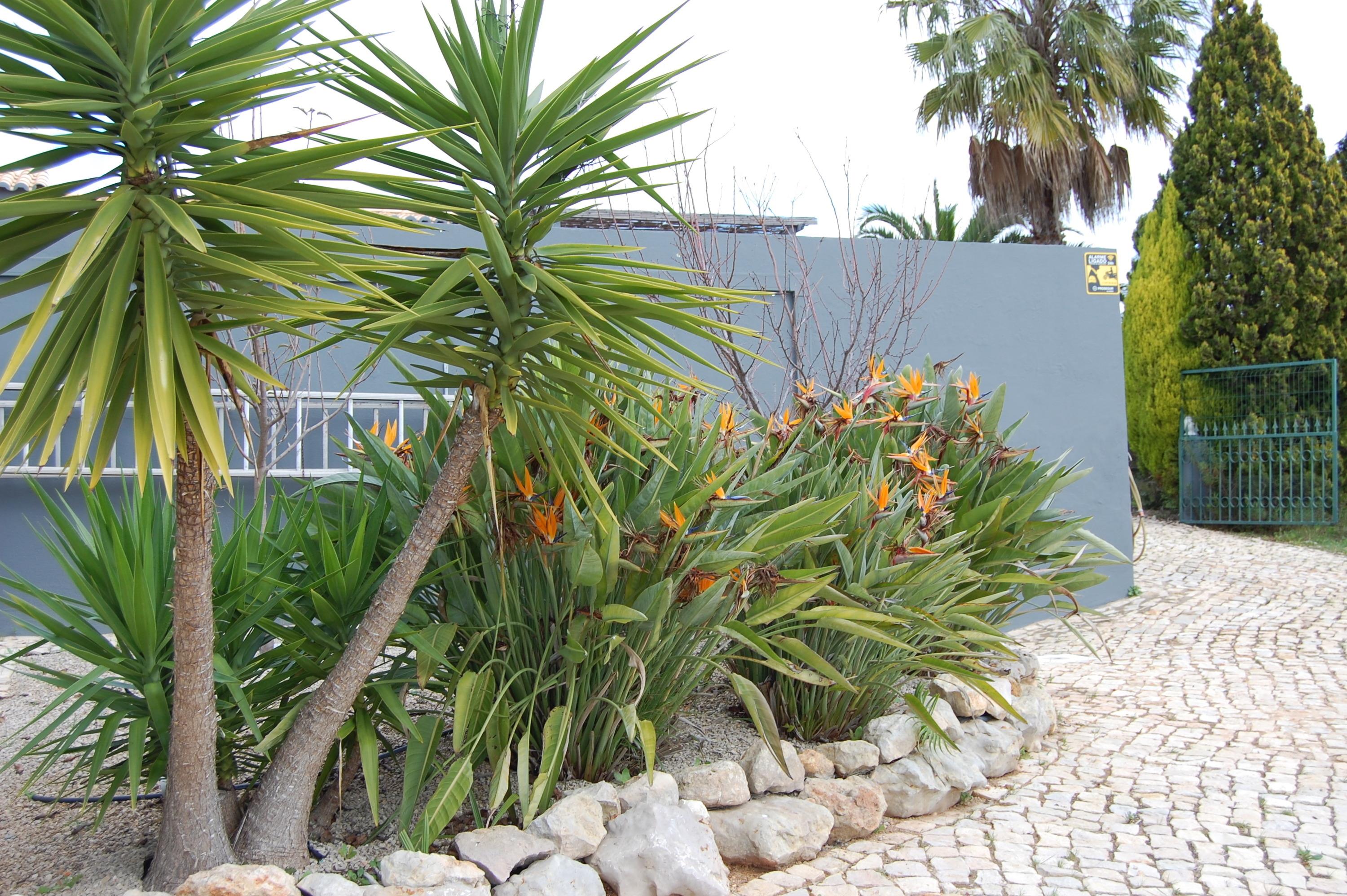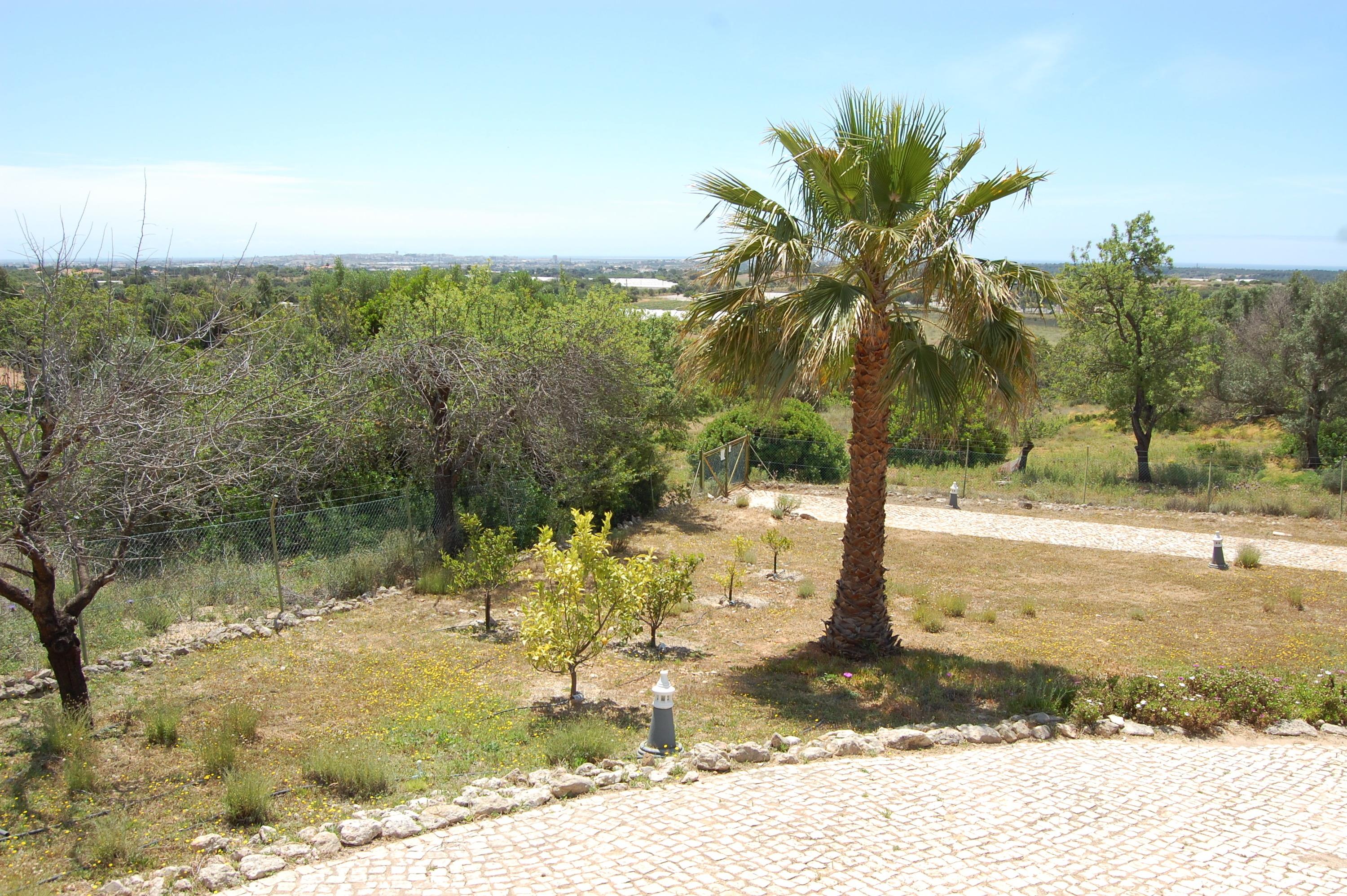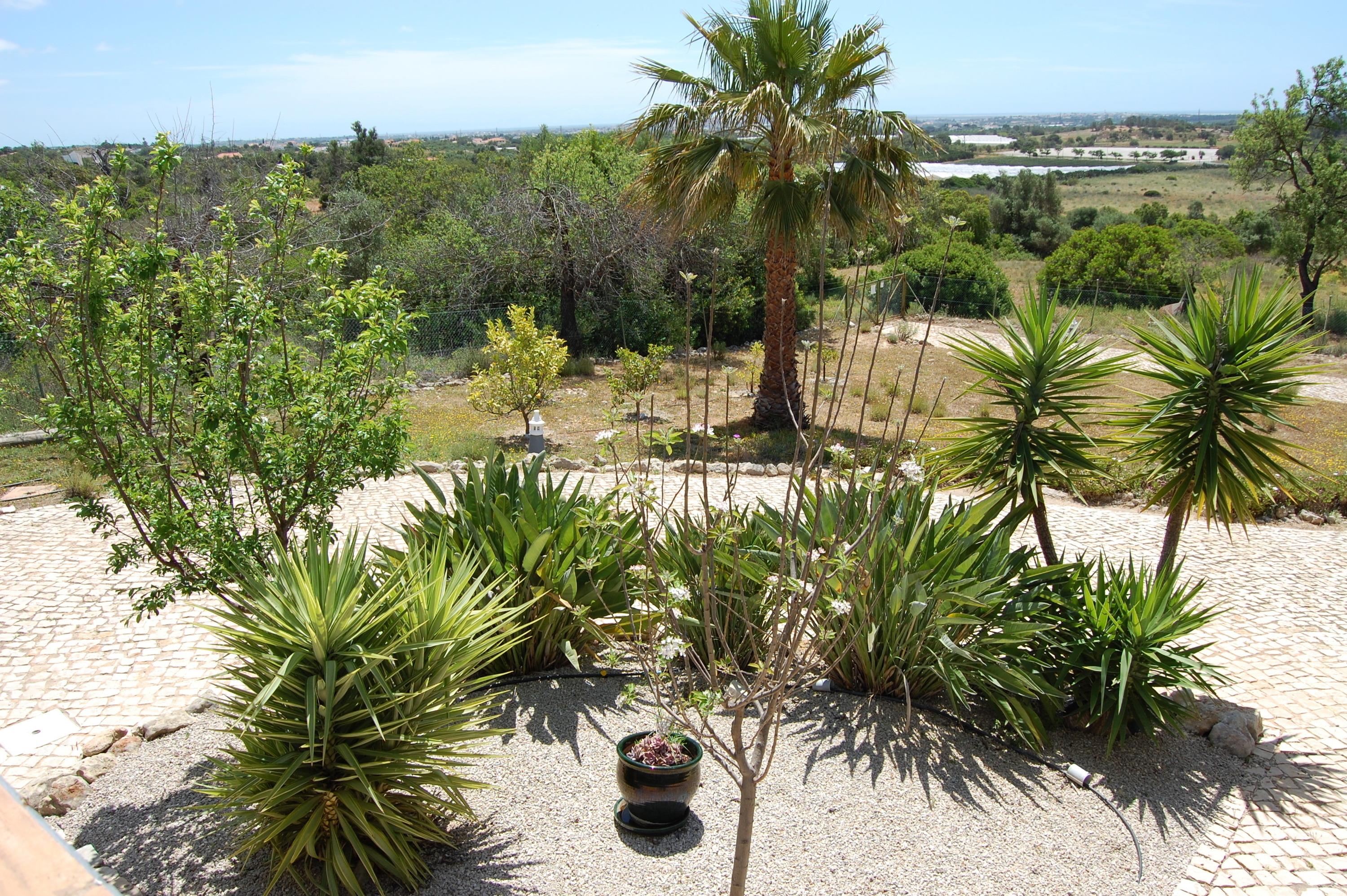 Im Außenbereich befindet sich der Pool (10 x 5 m und 2 m tief) , eine Solardusche, Sonnenliegen für 6 Personen mit Sonnenschirme. Man kann auf der Terrasse und am Pool den wunderschönen Ausblick auf das Meer und der Stadt Faro genießen und den Alltag ein wenig vergessen. Abgerundet wird das ganze durch einen Grillplatz mit einem Holzkohlegrill und einen zusätzlichen Gasgrill. Auf der Terrasse befindet sich ein großer Tisch der für 6 Personen und ein Tisch für 4 Personen Platz bietet. Über eine Außentreppe erreichen wir eine Dachterrasse mit Panoramablick zum Atlantischen Meer und der Stadt Faro. Das Grundstück ist komplett umzäunt, hat ein Automatiktor und Stellplätze für 3 PKW.