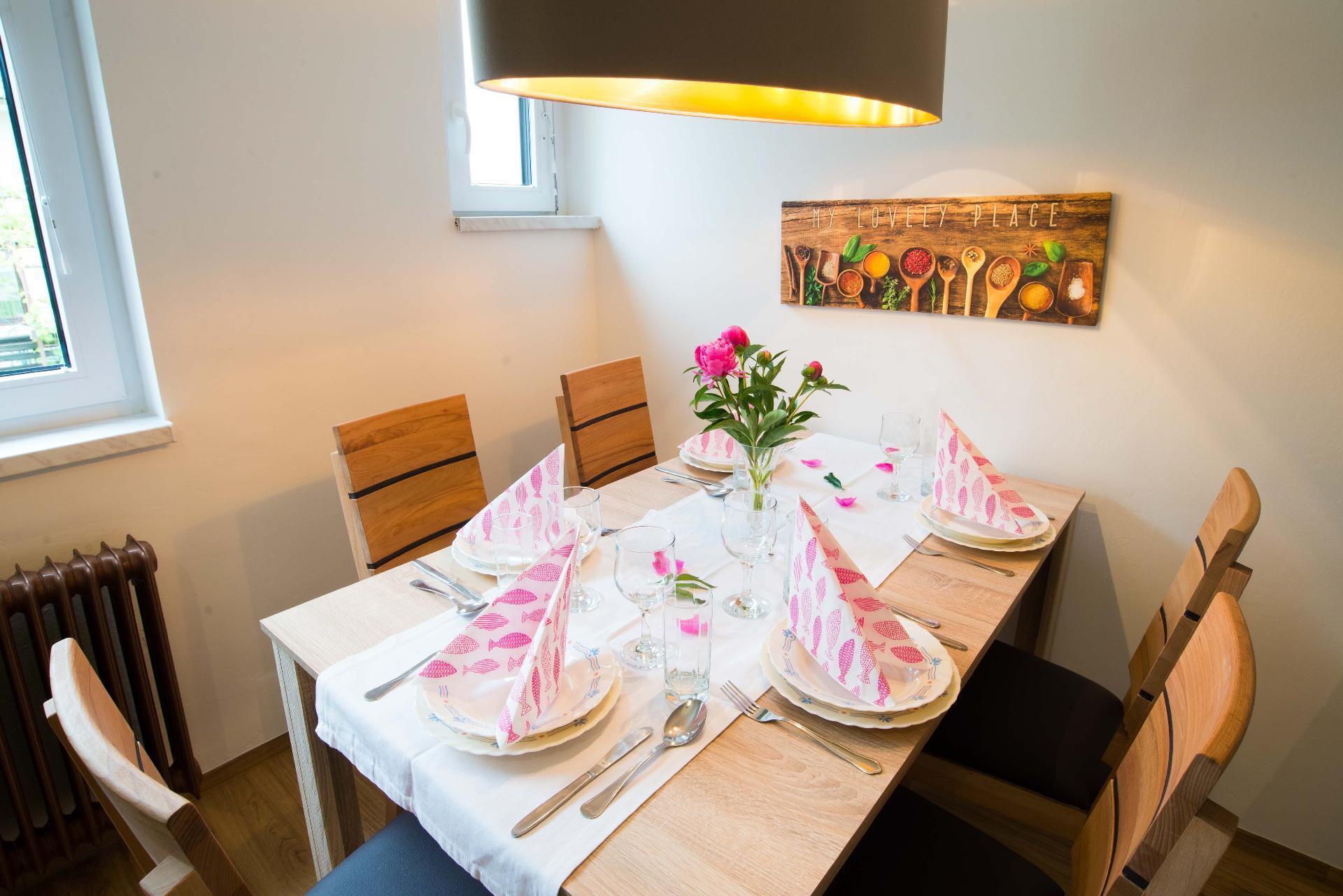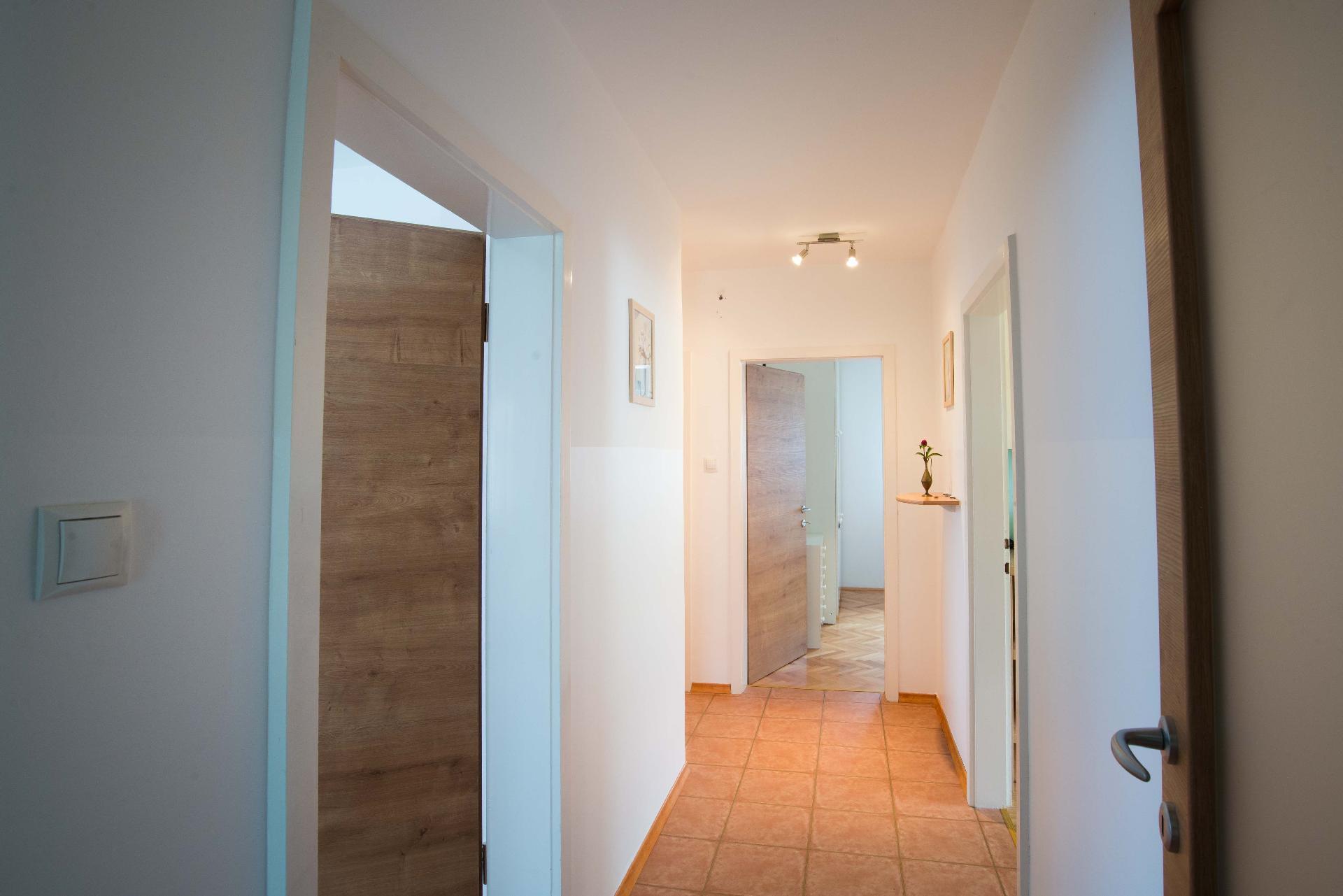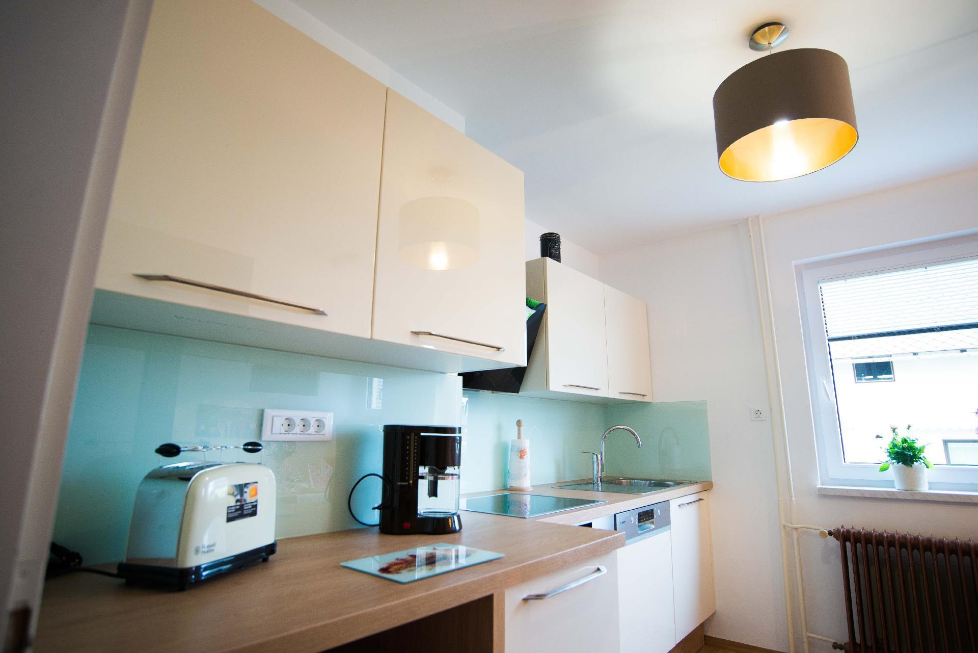The well-equipped and cosy apartment provides two bedrooms each with a double bed. One measures 180 x 200cm and the other measures 160 x 200cm. There are two extra beds for children which can be set up in the large living room or in the bedroom. The living room also has cable TV. The apartment includes a modern kitchen with a dining corner. The kitchen unit is equipped with an oven, hob, fridge with freezer compartment, coffee machine, microwave and dishwasher. The bathroom has a bathtub, WC, washbasin and cupboard with a mirror. Wi-Fi Internet is available.