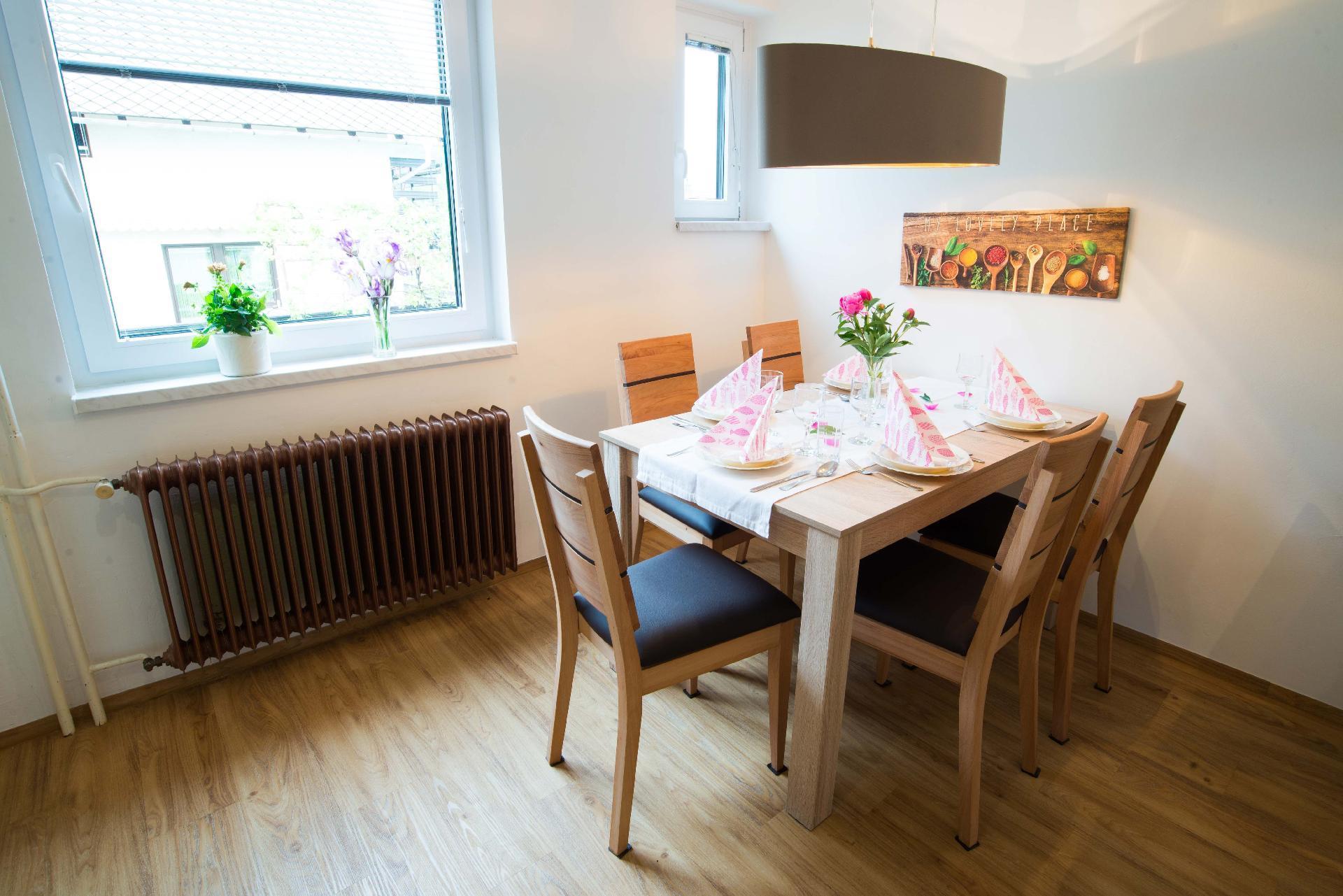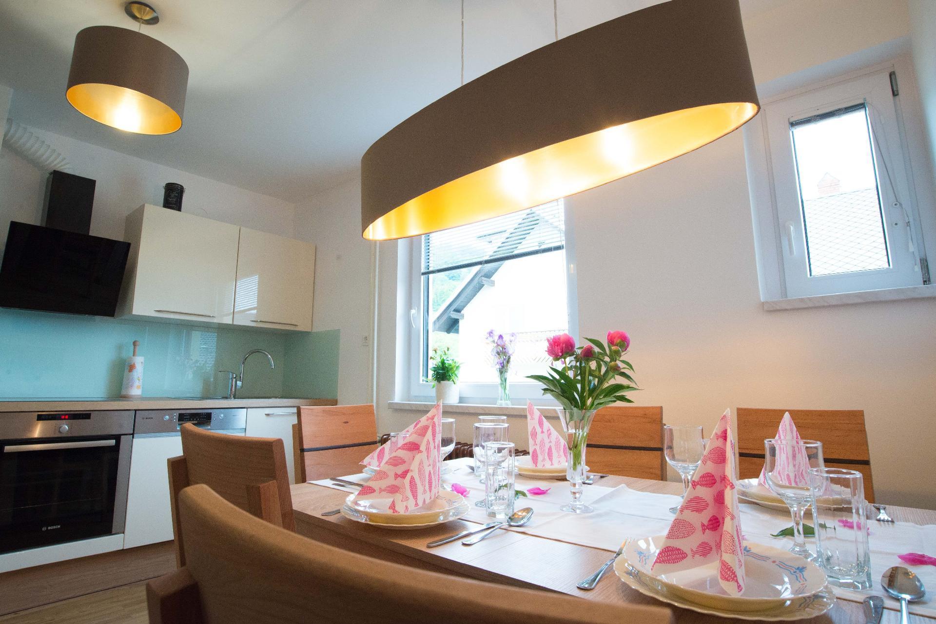 There are many restaurants nearby in Bled offering culinary delicacies. The surrounding nature has a lot to offer active holiday-makers: mountain climbing, cycling, fishing, rafting etc. During the cold winter months you can relax in modern wellness centres. The largest golf course in Slovenia is about 2km from Bled, on a plateau 60 metres above the Sava gorge. There are also facilities for horse-riding enthusiasts in Bled and in the area. In winter you can ski on the Straza mountain (3km from the apartment) and in the Bohinj (20km) and Kranjska Gora (35km) ski resorts. Pokljuka (about a 20-minute drive away) has well-prepared cross-country skiing trails, and is a good starting point for ski tourers. Radovljica is 6km, Krain is 26km and Bled-Bovec is 43km above Vršic from Bled. Ljubljana is 55km away and Bled-Ljubljana-Bovec is 85km away. The sea at Koper can be reached in about 109km. The airport is 37km away. In the apartment you can find many brochures for planning recreational activities.