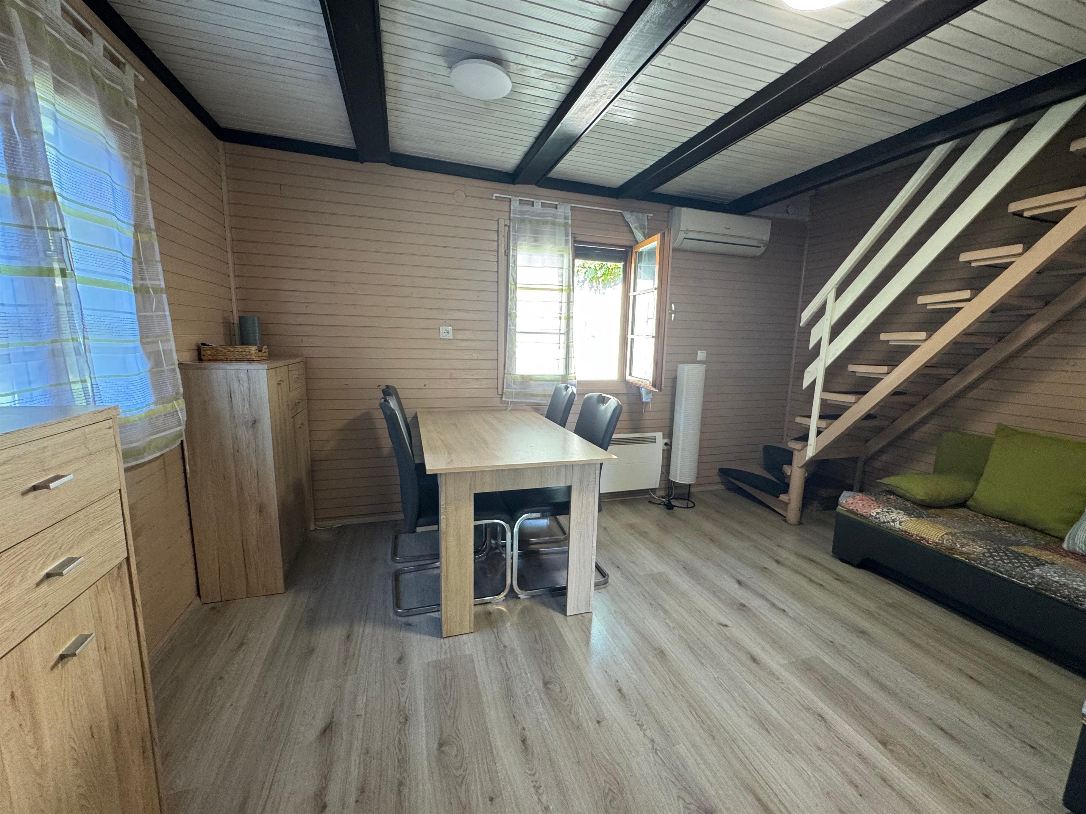 Im Erdgeschoss erwarten Sie ein gemütliches Wohnzimmer und eine kleine, gut ausgestattete Küche - perfekt, um sich nach einem Tag voller Entspannung und Spaß in der Therme zu Hause zu fühlen.
