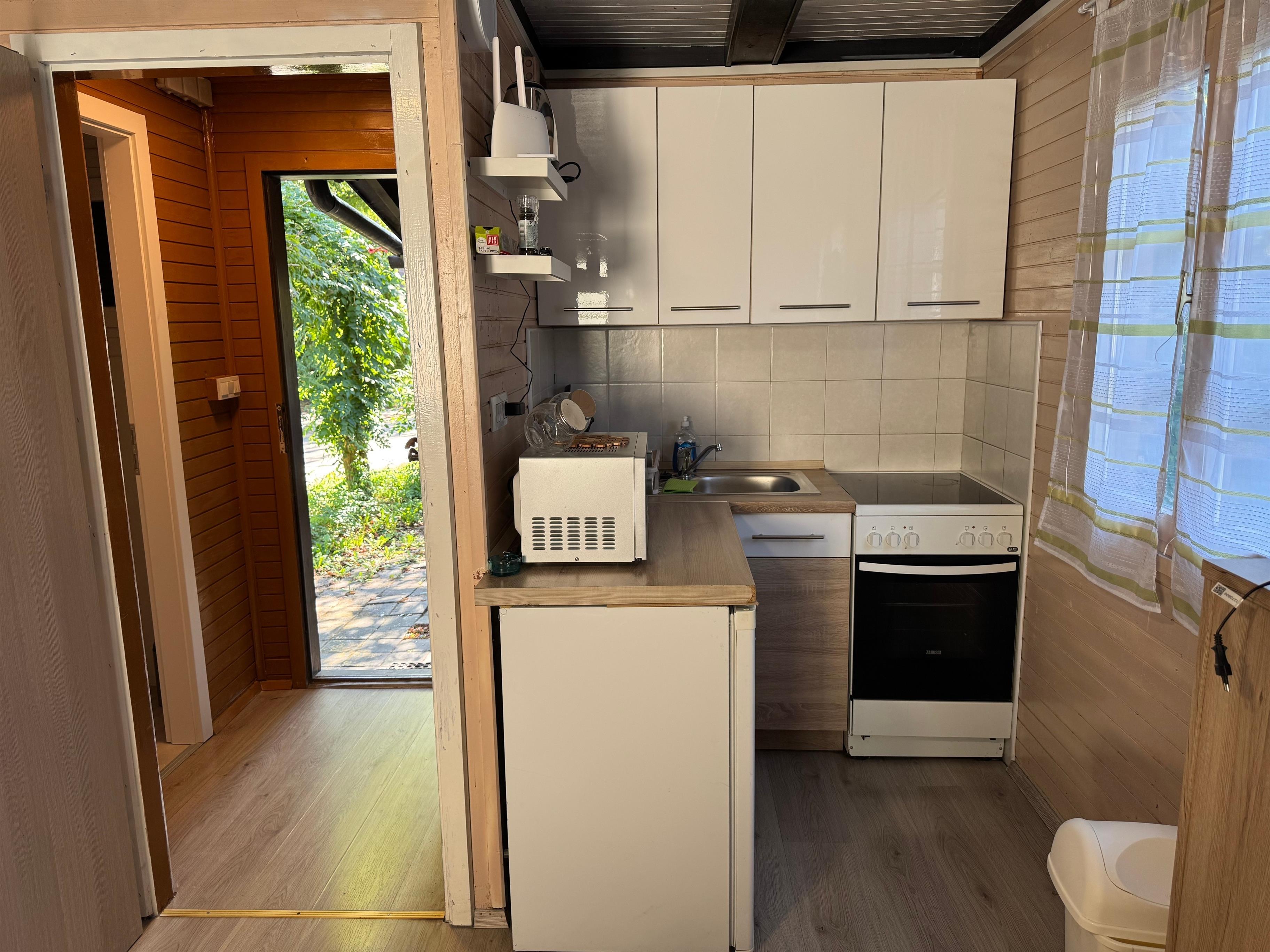 Im Erdgeschoss erwarten Sie ein gemütliches Wohnzimmer und eine kleine, gut ausgestattete Küche - perfekt, um sich nach einem Tag voller Entspannung und Spaß in der Therme zu Hause zu fühlen.