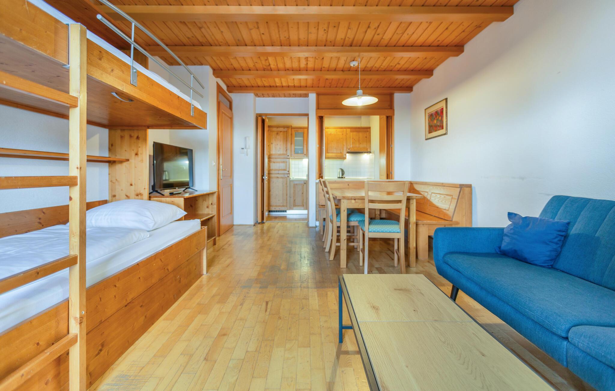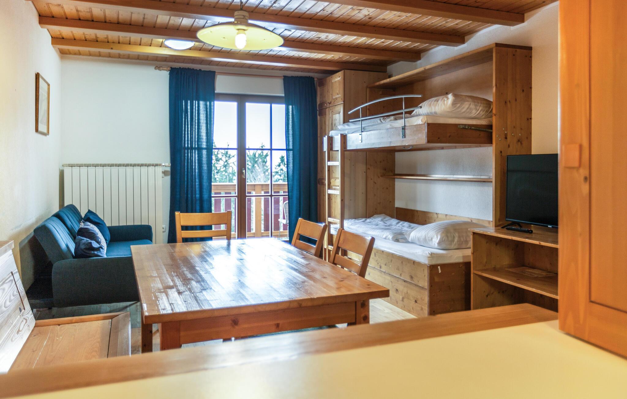 Lassen Sie sich in den ansprechenden Räumen häuslich nieder, mit der wohnlichen Einrichtung, die durch viel Holz einen warmen Ausdruck erhält, ist die Wohnung der ideale Ort für eine schöne Auszeit und eignet sich gut für einen Urlaub mit Kindern. Schwimmen Sie bei jedem Wetter im mit anderen Gästen geteilten Pool und machen Sie es sich nach Ihren Unternehmungen im Wohnzimmer gemütlich.