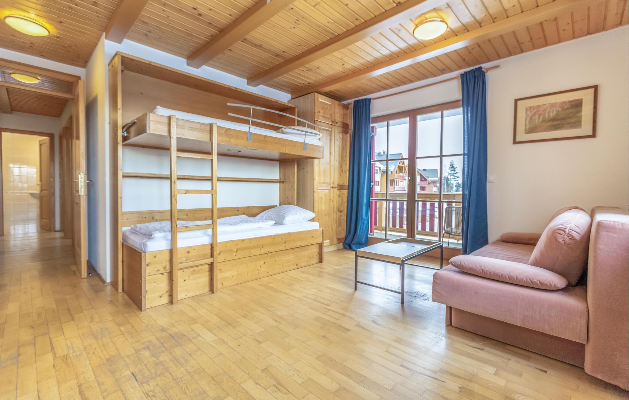 Lassen Sie sich in den ansprechenden Räumen häuslich nieder, mit der wohnlichen Einrichtung, die durch viel Holz einen warmen Ausdruck erhält, ist die Wohnung der ideale Ort für eine schöne Auszeit und eignet sich gut für einen Urlaub mit Kindern. Schwimmen Sie bei jedem Wetter im mit anderen Gästen geteilten Pool und machen Sie es sich nach Ihren Unternehmungen im Wohnzimmer gemütlich.