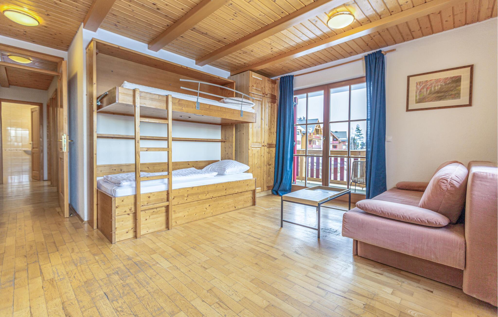 Lassen Sie sich in den ansprechenden Räumen häuslich nieder, mit der wohnlichen Einrichtung, die durch viel Holz einen warmen Ausdruck erhält, ist die Wohnung der ideale Ort für eine schöne Auszeit und eignet sich gut für einen Urlaub mit Kindern. Schwimmen Sie bei jedem Wetter im mit anderen Gästen geteilten Pool und machen Sie es sich nach Ihren Unternehmungen im Wohnzimmer gemütlich.