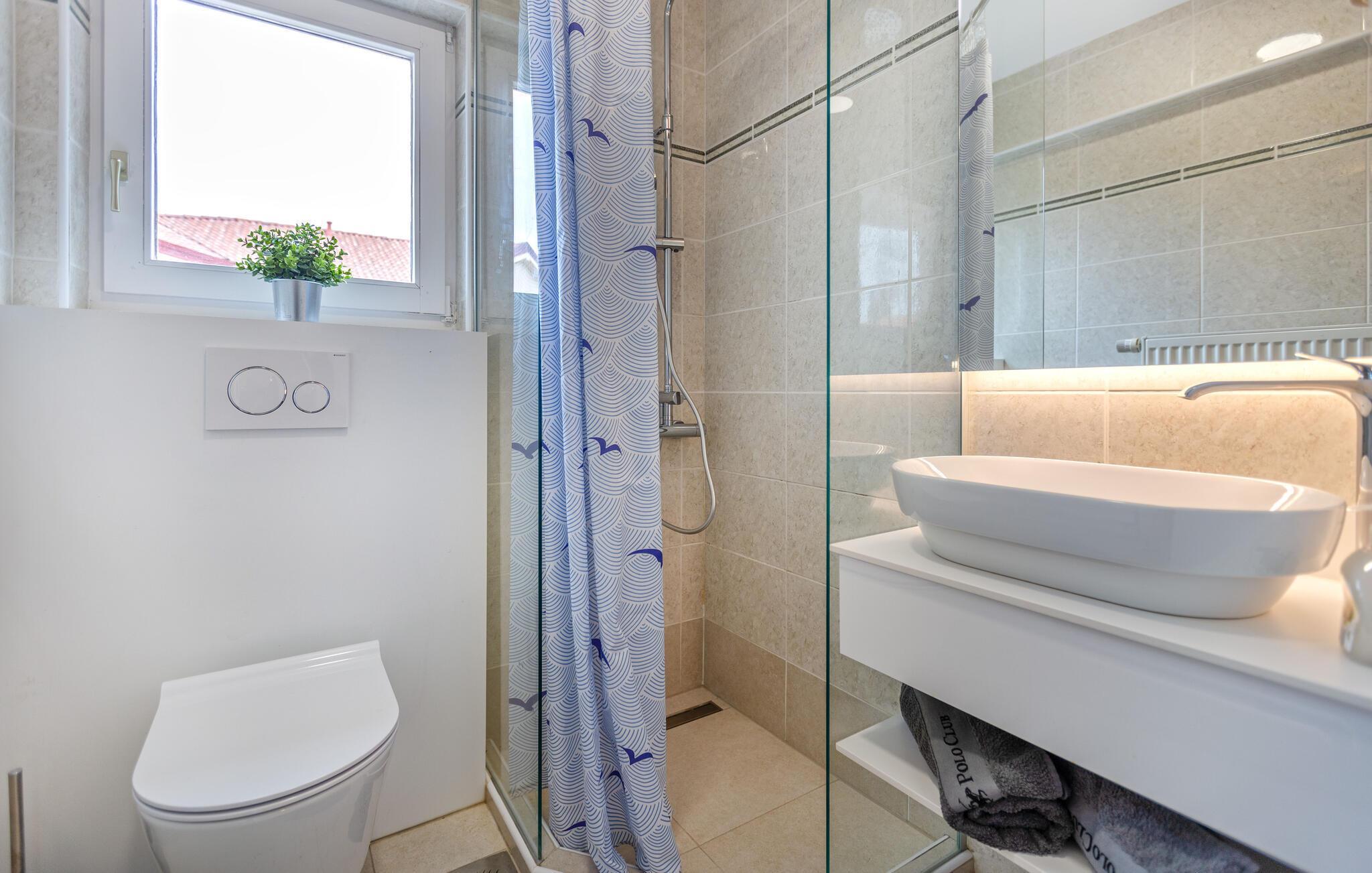 Badezimmer (nr. 1) - WC. Warmes und kaltes Wasser. Dusche