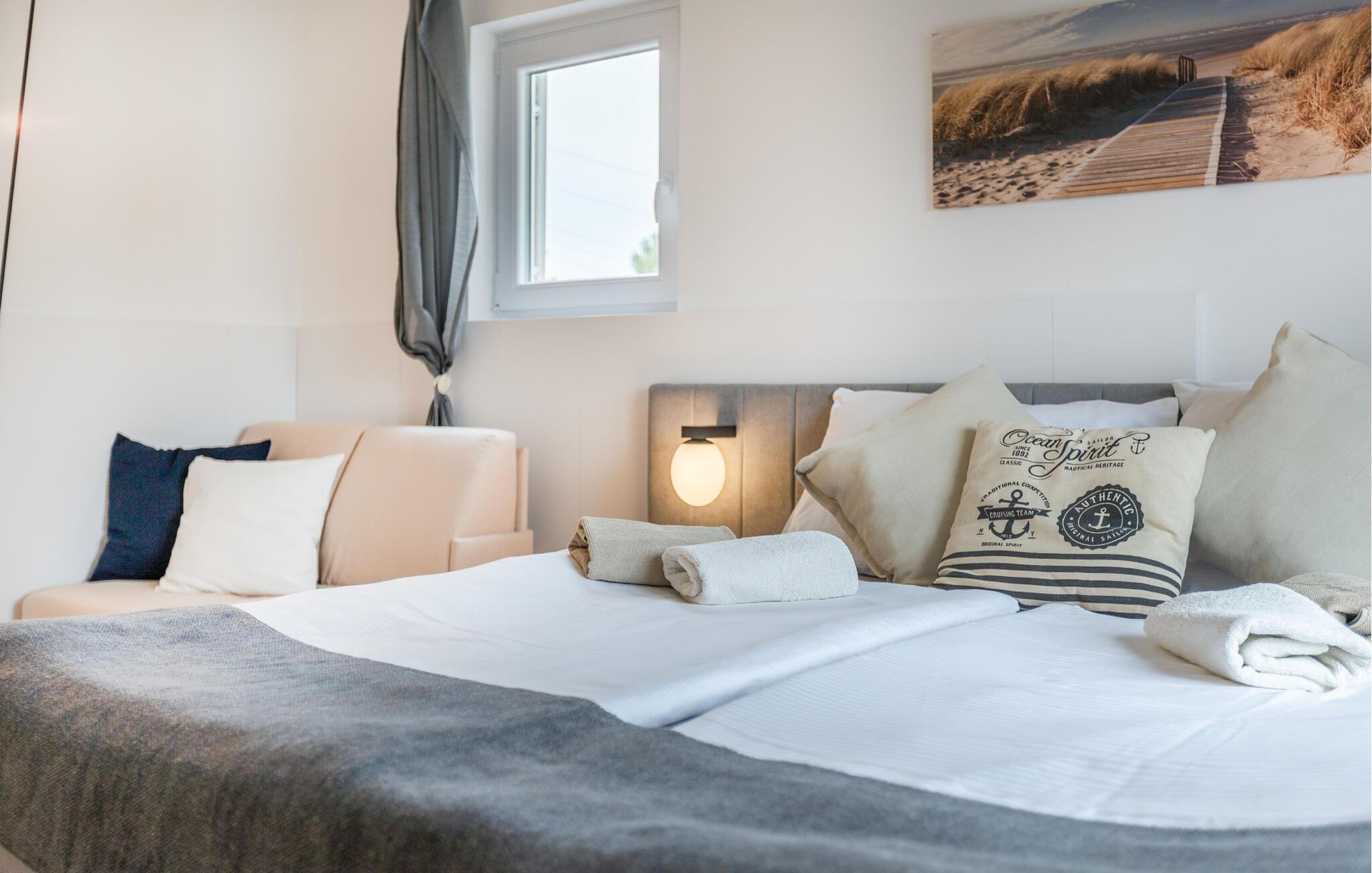 Schlafzimmer (nr. 1) - 2 Schlafmöglichkeiten. (Doppelbett(en)). 1 Schlafmöglichkeit. (Schlafsofa,Matratze,Sonstiges).