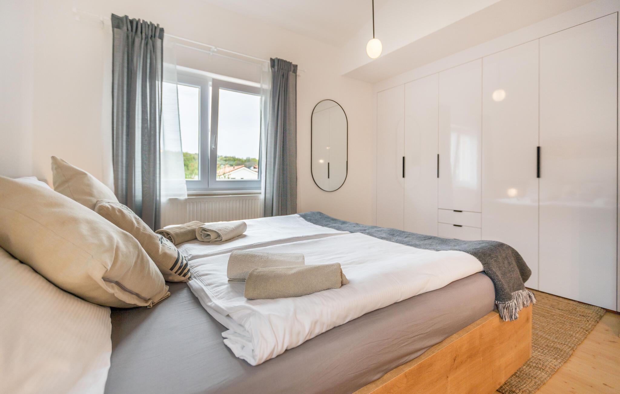 Diese geschmackvoll und liebevoll eingerichteten Ferienwohnungen im 1. Stock sind bei gleichzeitiger Buchung ideal für Pärchen oder kleinere Familien, die zusammen Urlaub machen und dennoch ihre eigene Privatsphäre haben möchten. Jede Wohnung verfügt über eine Veranda und eine Terrasse mit seitlichem Blick auf den Ort und das Meer. Hier können Sie die Ruhe des kleinen Dorfes Mala Seca genießen und in den warmen Sommermonaten Erfrischung im Gemeinschaftspool finden. Allen Gästen steht ein Grillraum zur Verfügung.
