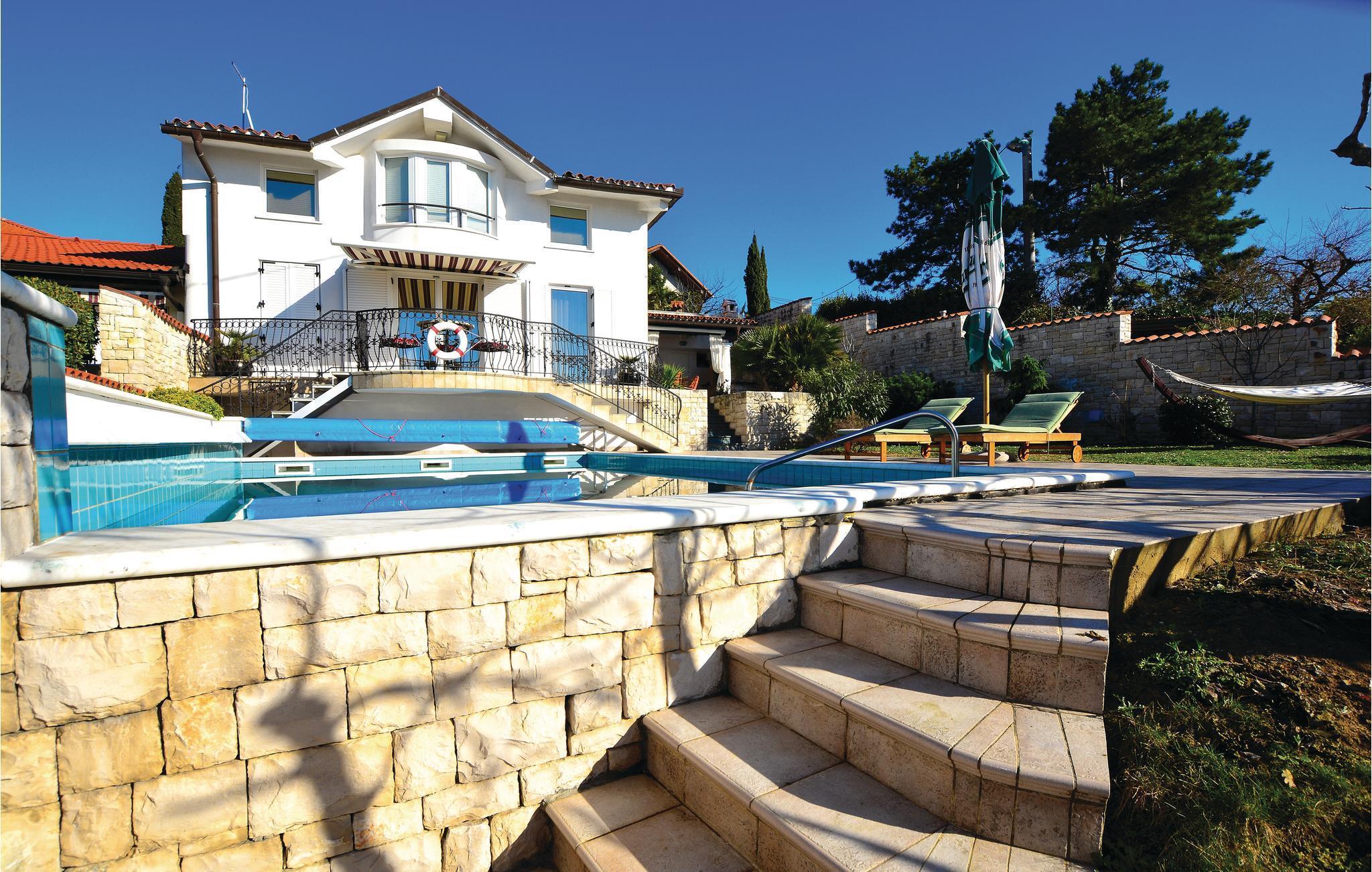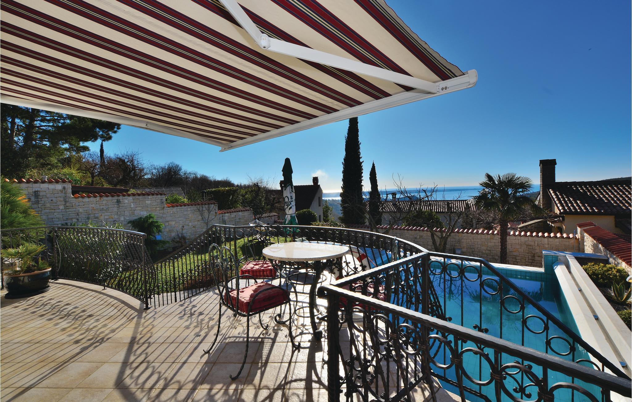 Dieses schöne Ferienhaus mit Pool liegt auf einem Hügel oberhalb von Izola und hat einen spektakulären Blick auf das Meer. Es wurde im klassischen mediterranen Stil gebaut und eingerichtet und besteht aus zwei Etagen, die über eine Außentreppe miteinander verbunden sind. Im Erdgeschoss befindet sich ein Apartment mit zwei Schlafzimmern mit Balkon und im 1. Stock ist ein Apartment mit einem Schlafzimmer. Im Vorgarten gibt es eine schöne überdachte Terrasse mit hochwertigen Gartenmöbeln und einem Steingrill. In den umliegenden Küstenstädten finden Sie viele Restaurants, Bars und Strände.