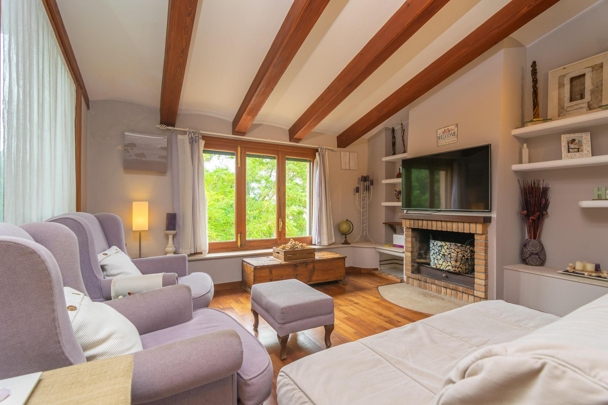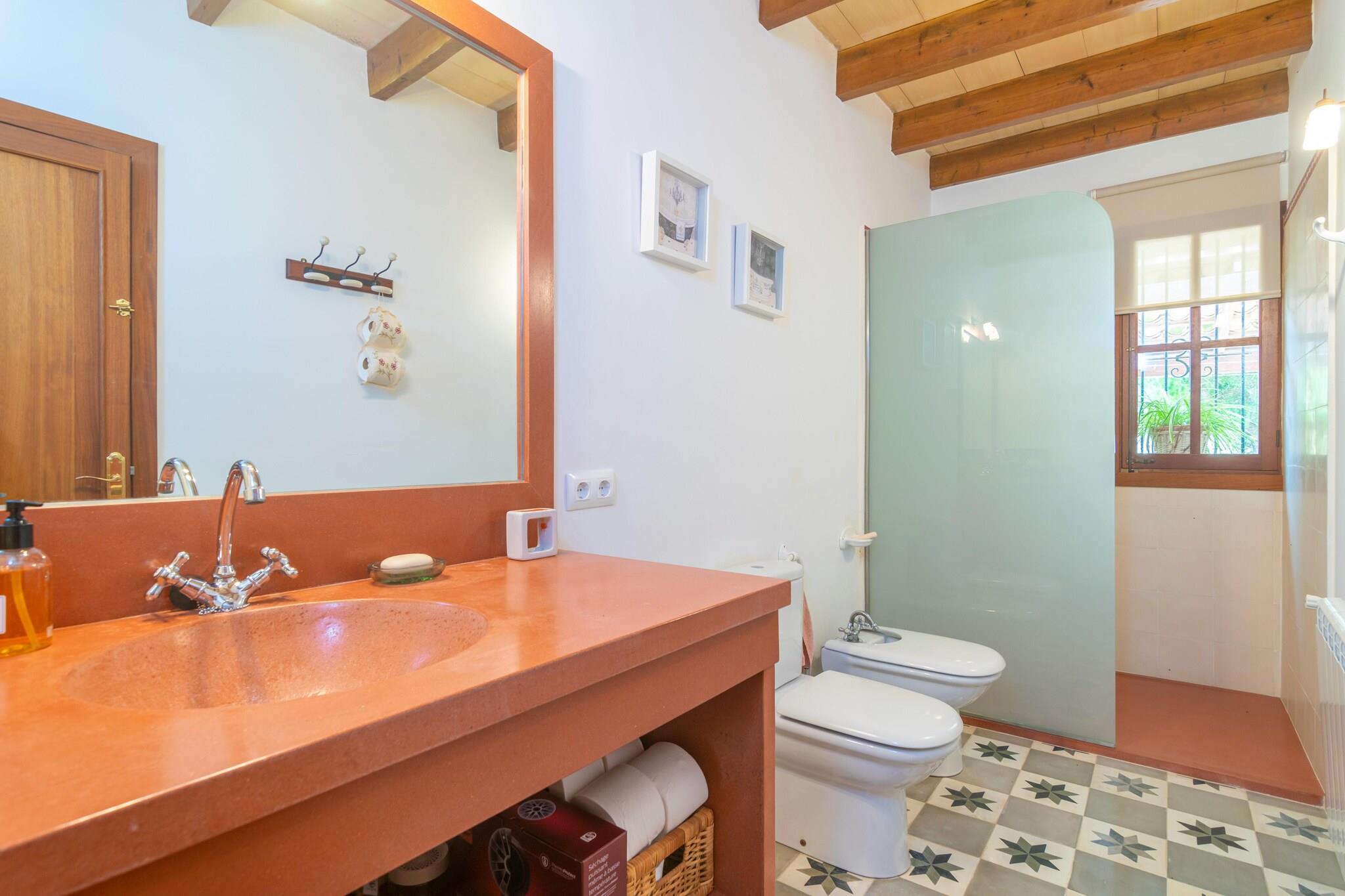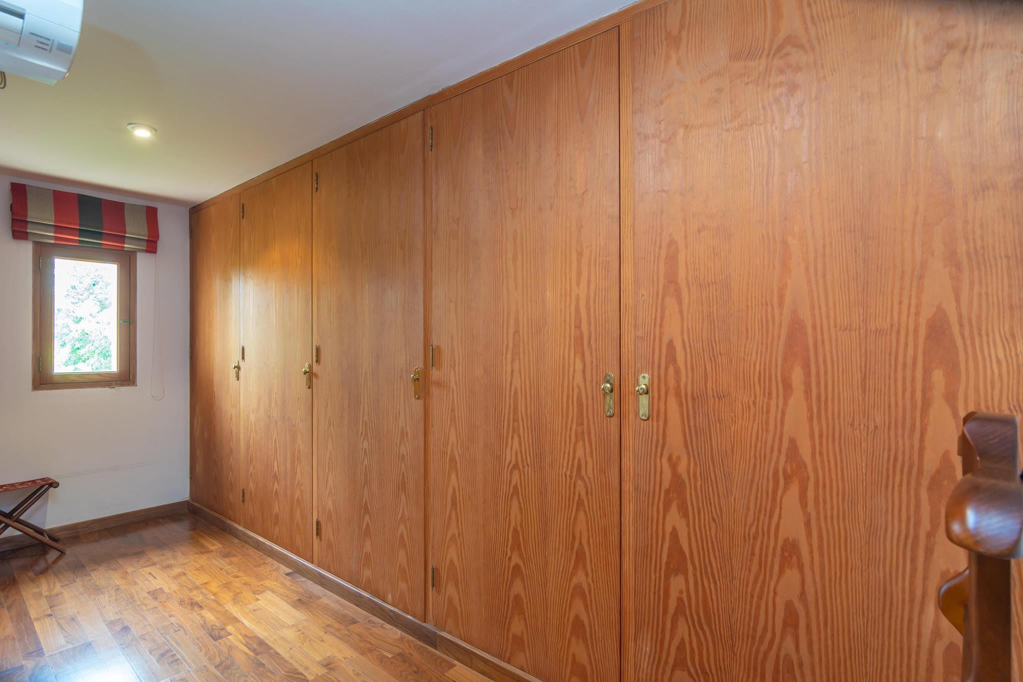 The exteriors of this picturesque house are ideal to enjoy the Mediterranean climate. Surrounded by a beautiful garden area, you will find a private chlorine swimming pool of 10 m x 5 m and a depth ranging between 1.10 m and 2.10 m. Around the pool there are sun loungers where you can relax while sunbathing, a porch, a barbecue and several corners where you can enjoy eating or having a drink with your companions. The property is fenced and the privacy is total. The interior of the two-storey house is designed to offer you the rest you deserve. On the ground floor you will find a small living room and a gas kitchen with all the necessary utensils to cook your favourite dishes, which you can enjoy at the table there or in the separate dining room. On the same floor there is a double bedroom with AC, heating and access to the garden, a separate bathroom with shower and a toilet. A staircase leads to the upper floor, where there is a second living room with AC and Smart TV and the rest of the bedrooms, all of them with double bed, AC and heating. In addition, two of them have en-suite bathrooms, one with hydro-massage shower and the other with normal shower and dressing room. Another independent bathroom with shower and bathtub complete this floor, which also has a gym area. If you are travelling with your baby, we can provide a cot and high chair. The accommodation is located less than a kilometre from the centre of Algaida, a very welcoming inland village with traditional customs. Here you will find all the indispensable services such as bars, restaurants, supermarkets, etc. In addition to this, it has the advantage of being close to communication routes that will allow you to access any point of the island. The nearest beach is the Arenal beach, although being quite central on the island, you can go to many beaches in any direction. Palma, the island's capital, is only 25 minutes away by car. The AC only emits cold air, but oil heating is available. Note: This accommodation is intended for families and guests over 28 years old who are looking for a peaceful stay. Bookings for parties or celebrations are not accepted. A copy of the identification document of all guests will be required to confirm the reservation. Consult the advertiser for possible charges. Pets are not allowed. The holding of events is forbidden. There is exterior parking for 5 cars. Distances Beach: 20.9 km - El Arenal Airport: 21.9 km - Palma de Mallorca Golf course: 11.6 km - Golf Son Gual Town: 0.75 km - Algaida Train station: 23.6 km - Palma Bus stop: 1.9 km - Algaida Ferry: 24 km - Palma Hospital: 18.8 km - Son Llàtzer Guests are kindly required to dispose of all rubbish and ensure the property is properly tidied before departure. Should this not be the case, a charge of EURO90 will be deducted from the security deposit. Tourist license: ETV/12383Single Rental Registry: ESFCTU0000070250003190300000000000000000000ETV/123831There's a mandatory tourist tax in Balearic Islands, called Ecotasa. All guests, except people under 16 years, have to pay this tax. The amount varies between 0.55EURO/night and guest during the low season and 2.2EURO/night and guest during the high season .The tax is reduced by half from the 9th day for your stay. Homerti - Central de Reservas CR/33