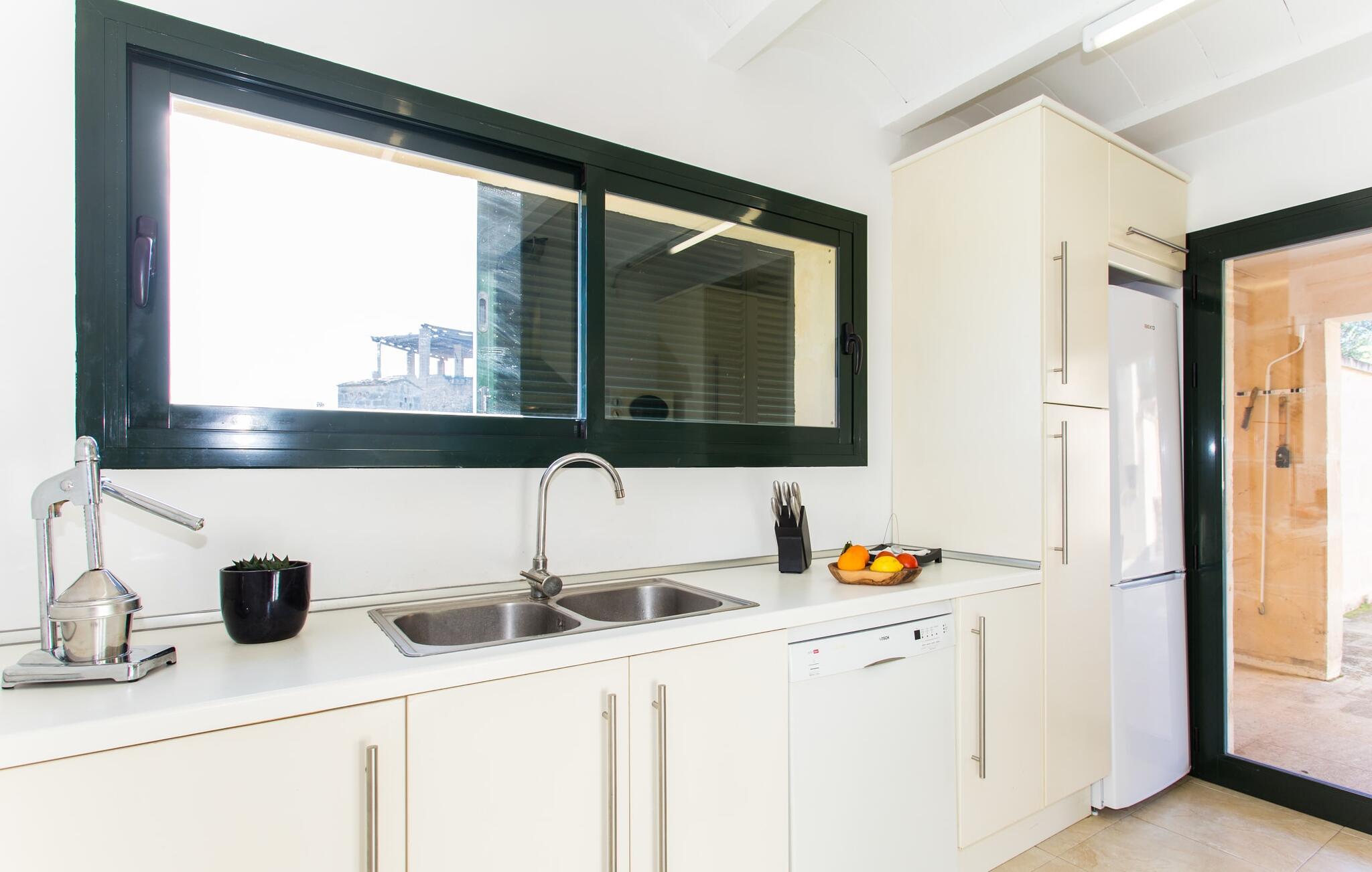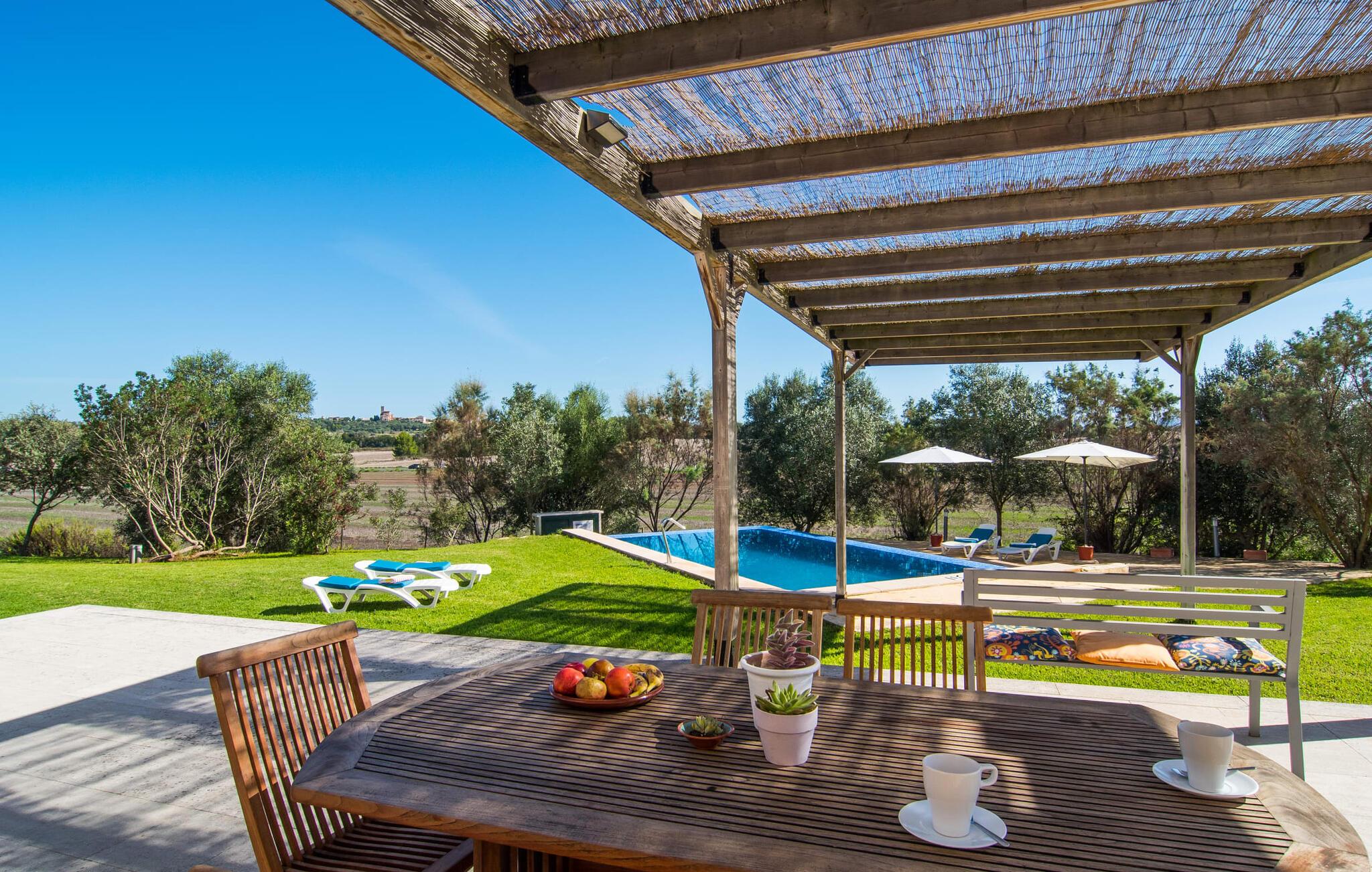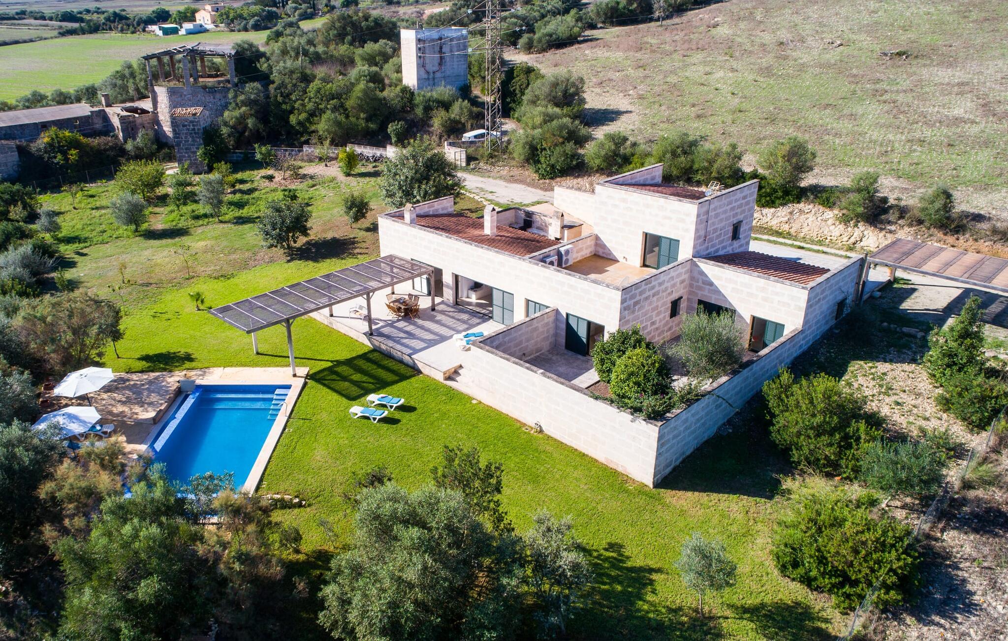Die moderne Villa "Baix des Pujol“ liegt in der Mitte der Insel zwischen den beiden ländlichen Städten Petra und Ariany und bietet einen herrlichen Blick auf die umliegende Landschaft und Richtung Ariany. Es ist ein ausgezeichneter Ausgangspunkt für Reisen an die Nord-, Ost- oder Westküste sowie nach Manacor, in die Bucht von Alcúdia und zu zahlreichen Stränden wie San Baulo und Can Picafort.